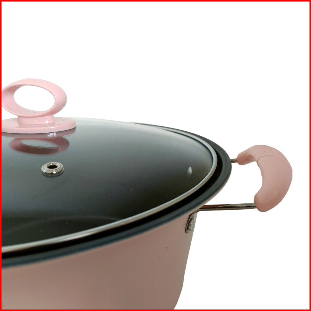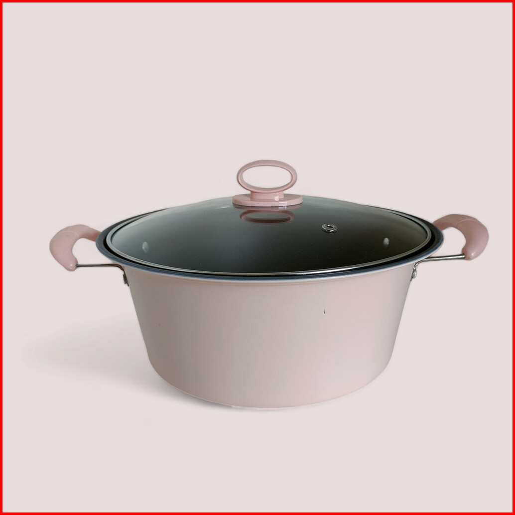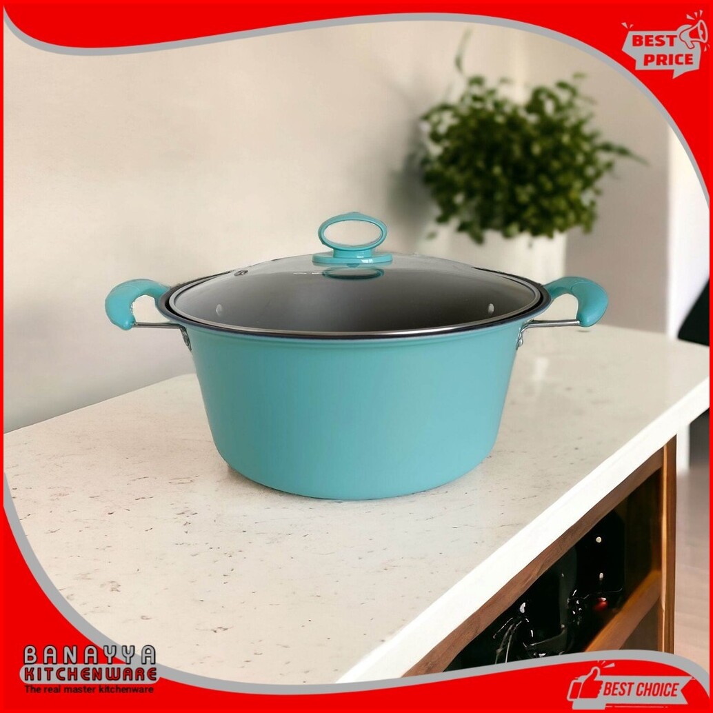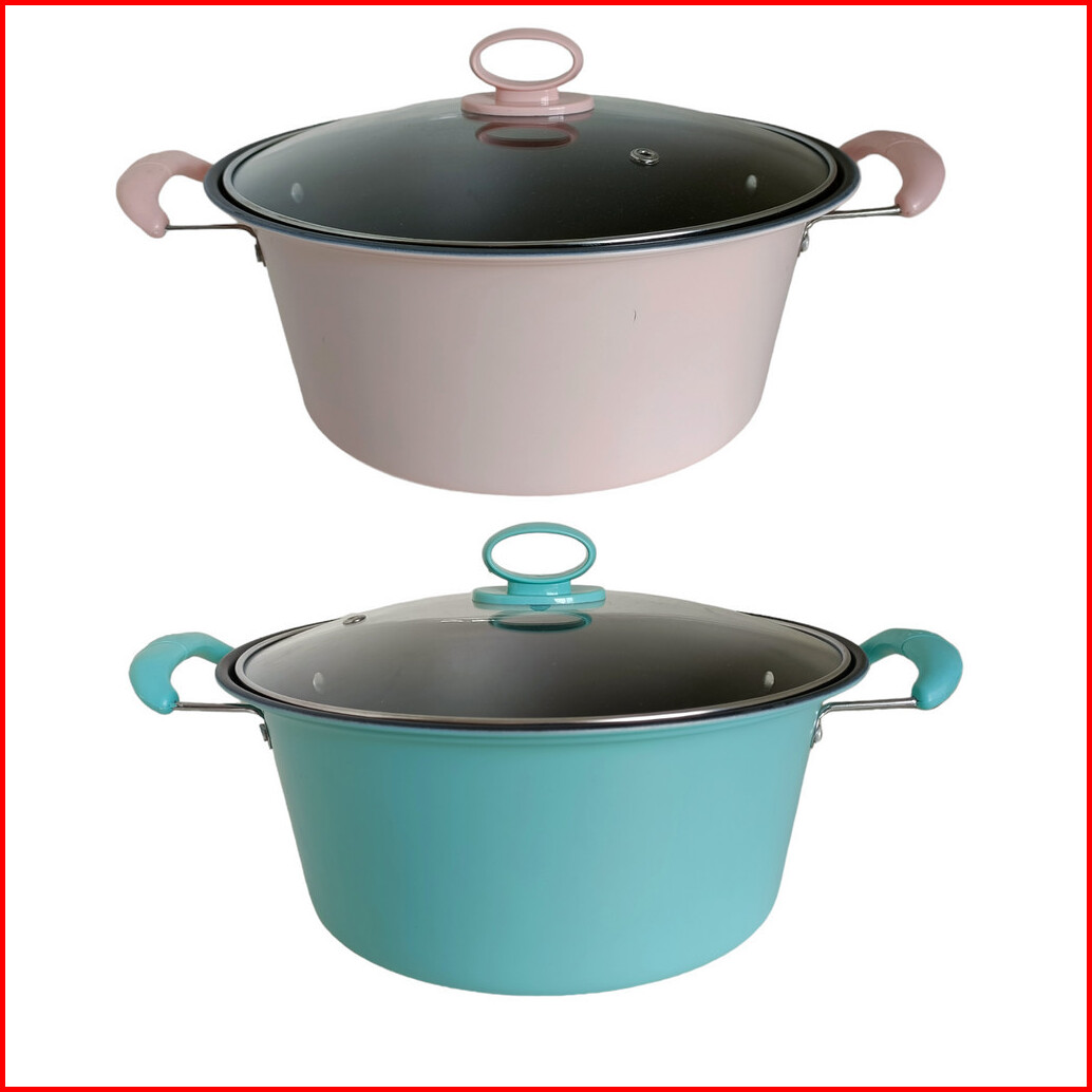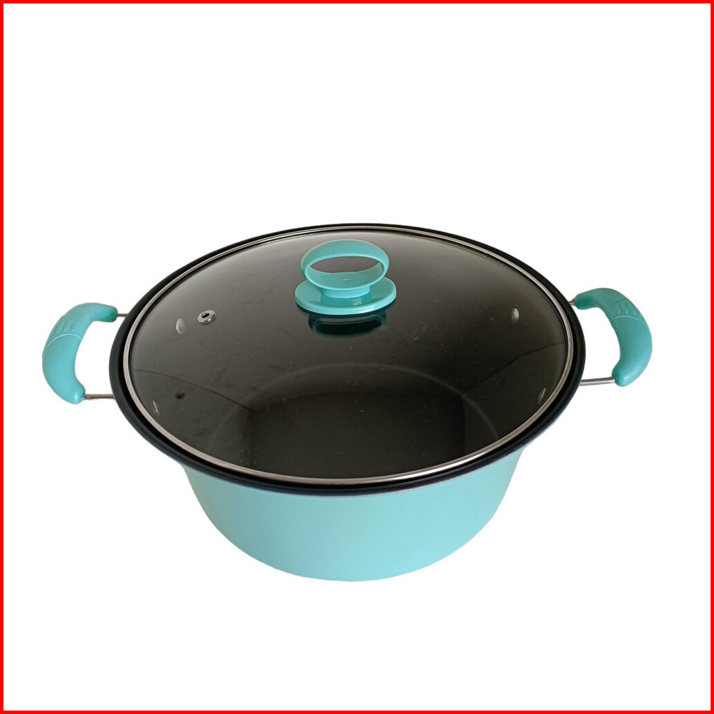 Panci Sup Kuah Enamel Warna Dengan Tutup Kaca Premium Ukuran 24 Cm Jumbo Stainless Steel