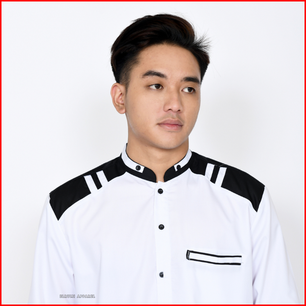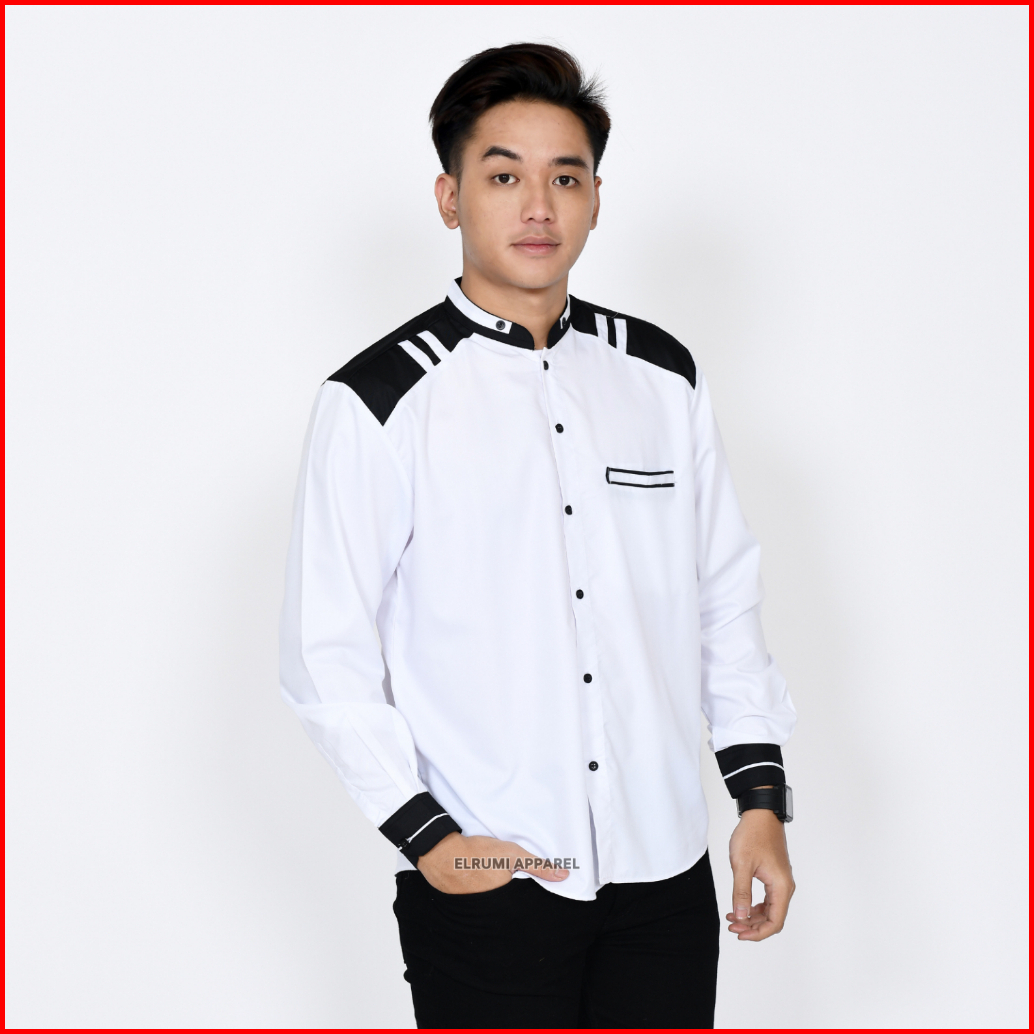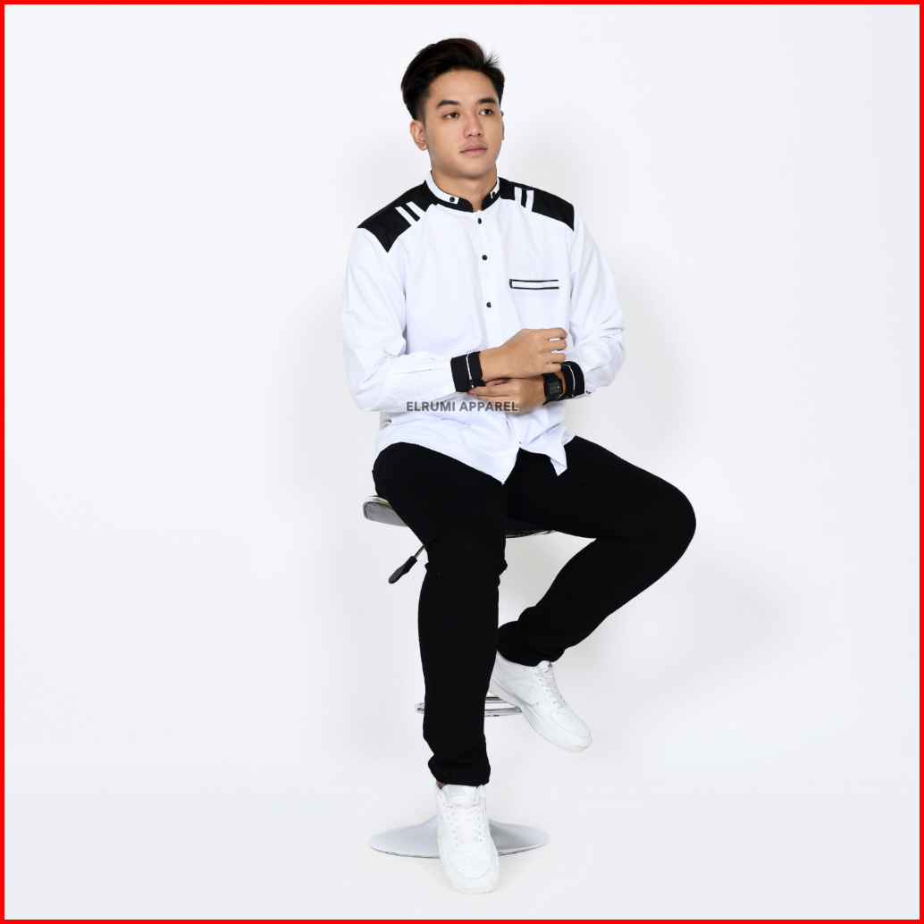 Baju Koko Pria Lengan Panjang Motif Adidis Kombinasi Original Elrumi - Baju Koko Polos