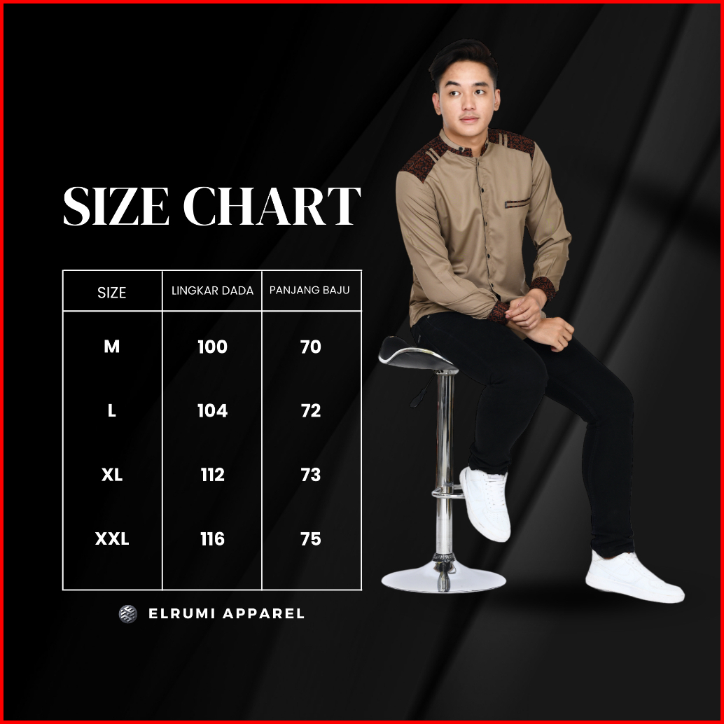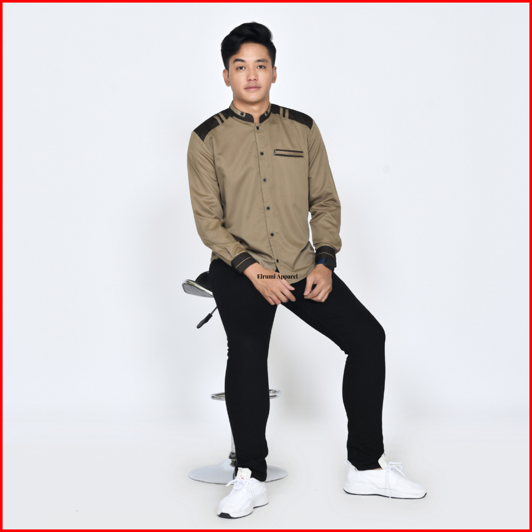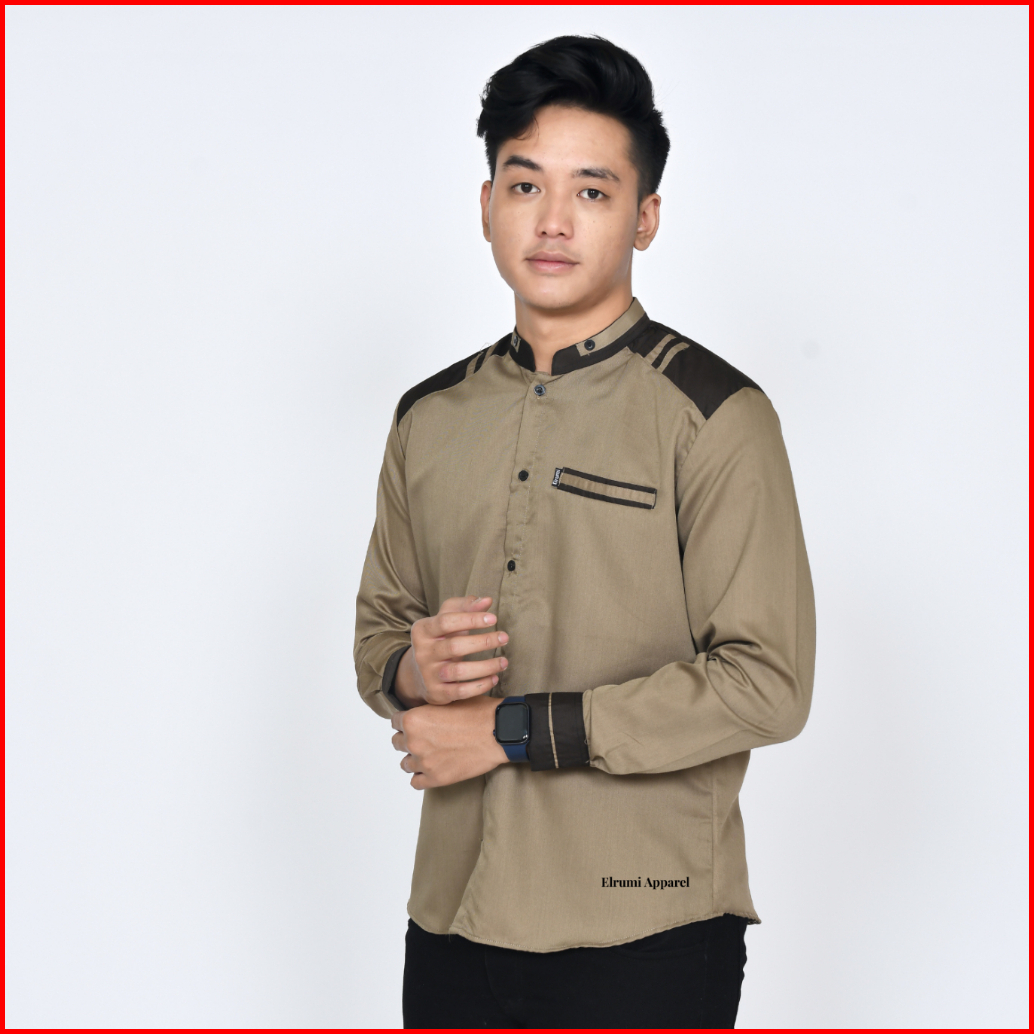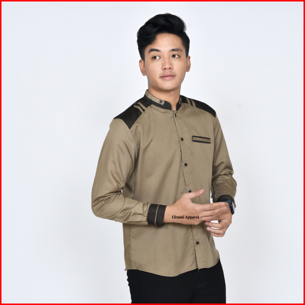 Baju Koko Pria Lengan Panjang Motif Adidis Kombinasi Original Elrumi - Baju Koko Polos
