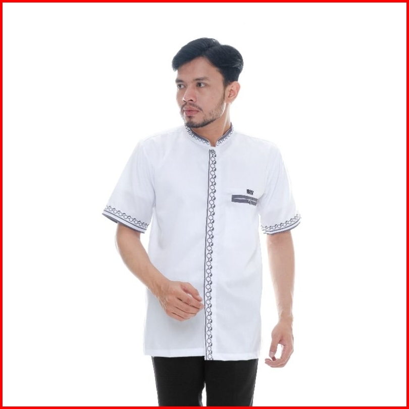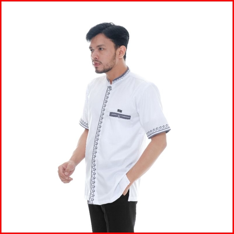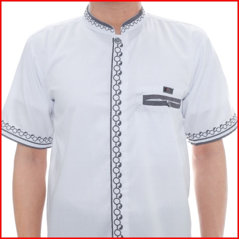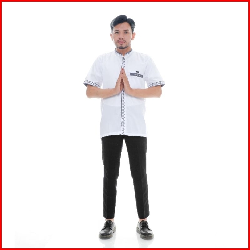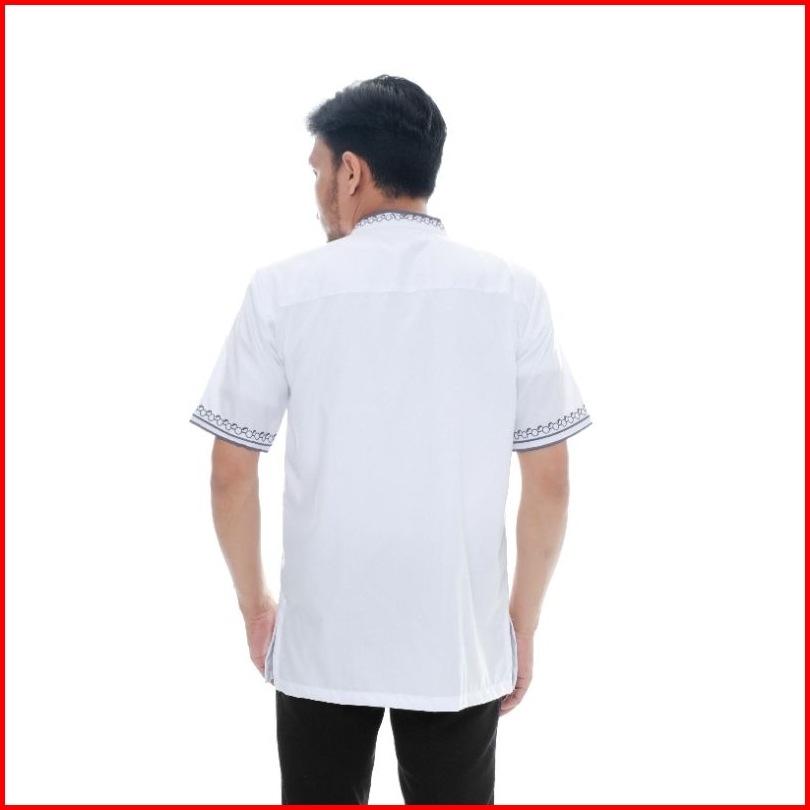 Ar Baju Koko Pria Dewasa Bordir Lengan Pendek Warna Putih