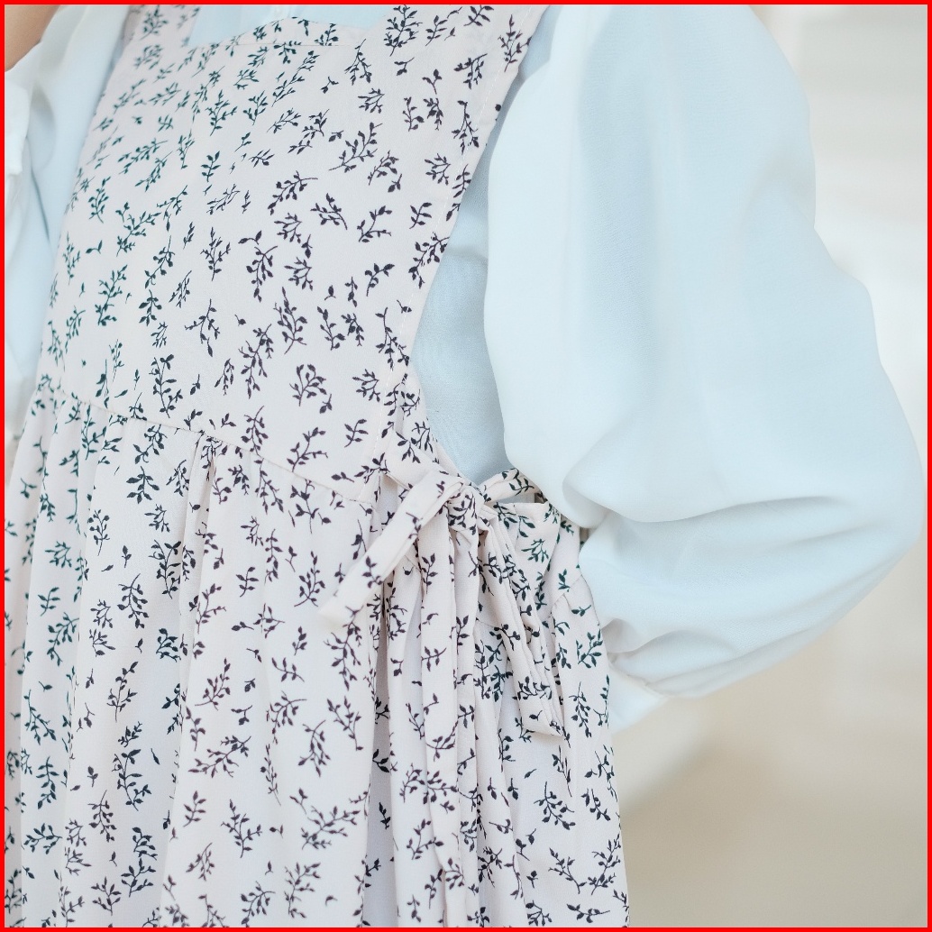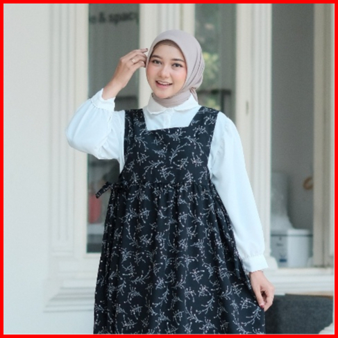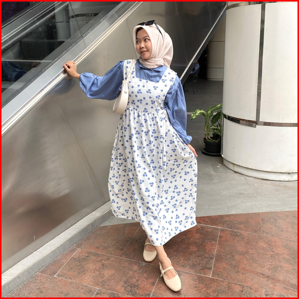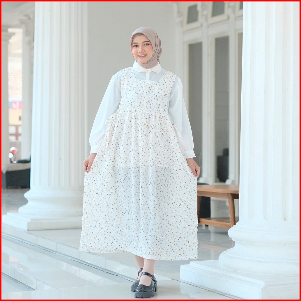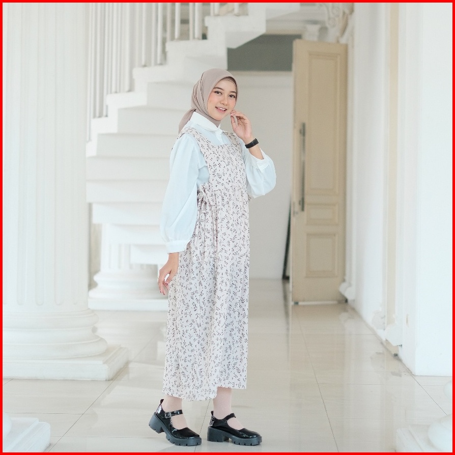 Himari Dress Camelia Overall Outer Motif Bunga Midi Korean Style Wanita