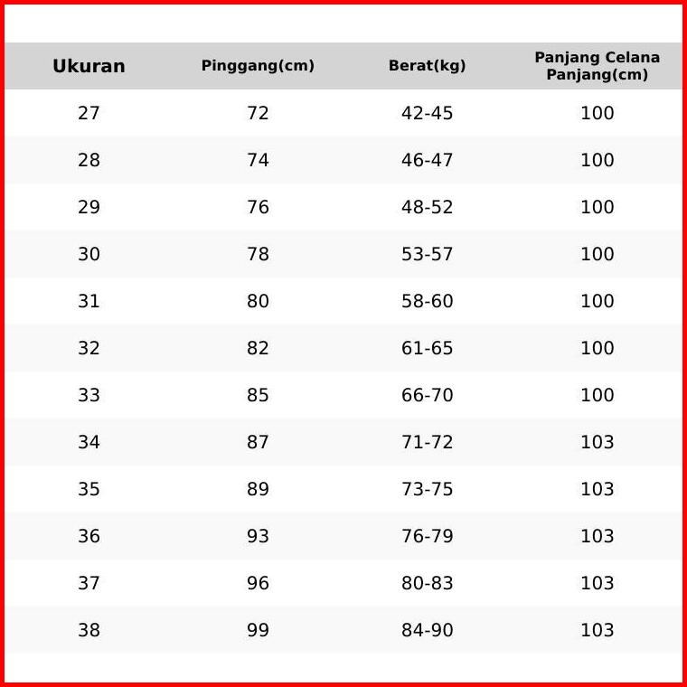 27, 29, 30, 31, 32, 33, 34, 35, 36, 37, 38, 28, Hanya Sabuk