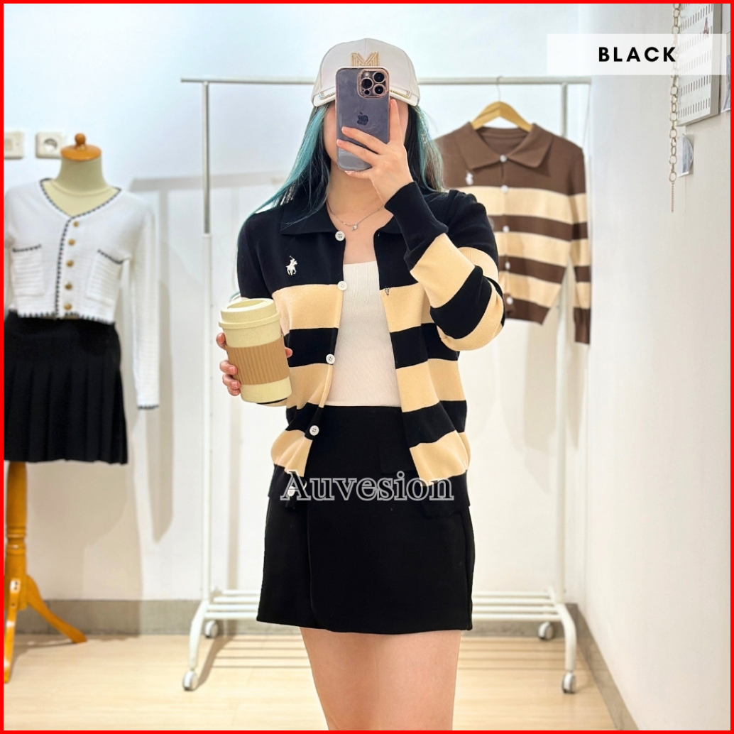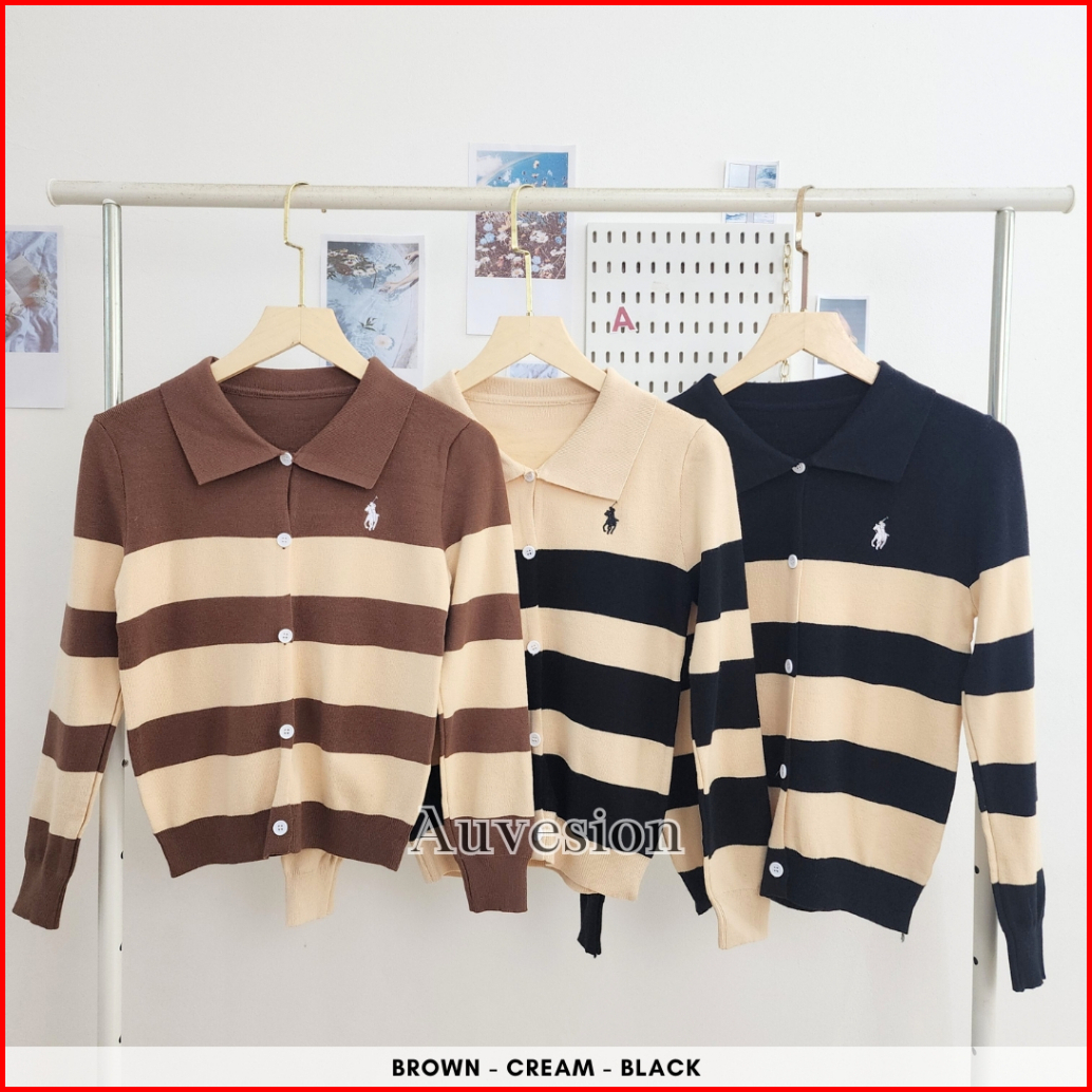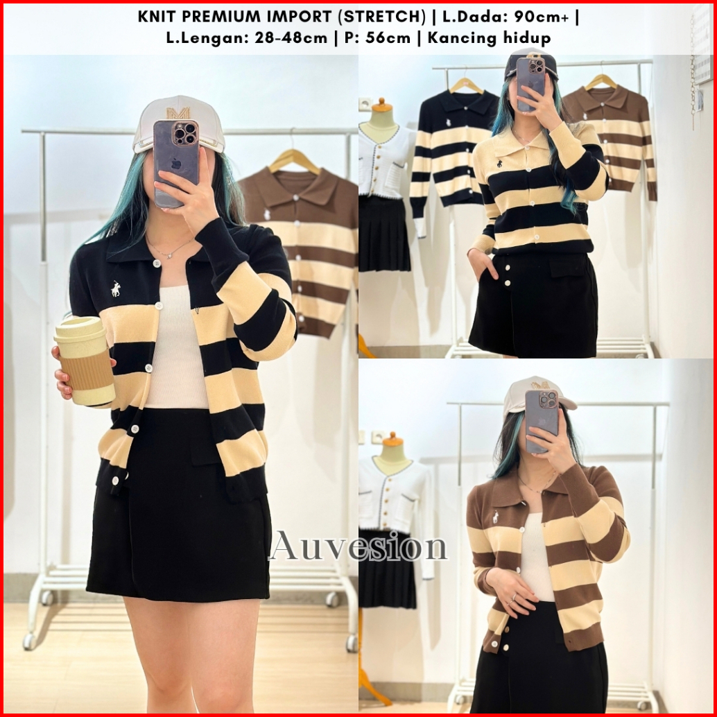Auvesion Syrenka Stripes Two Tones Long Sleeves Knit Top 6092 Atasan Wanita Knit Cardigan