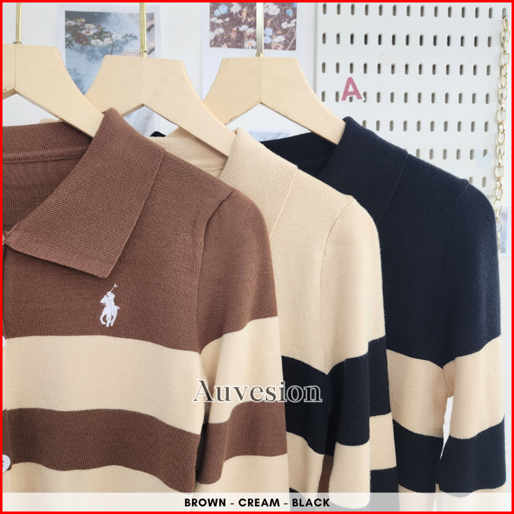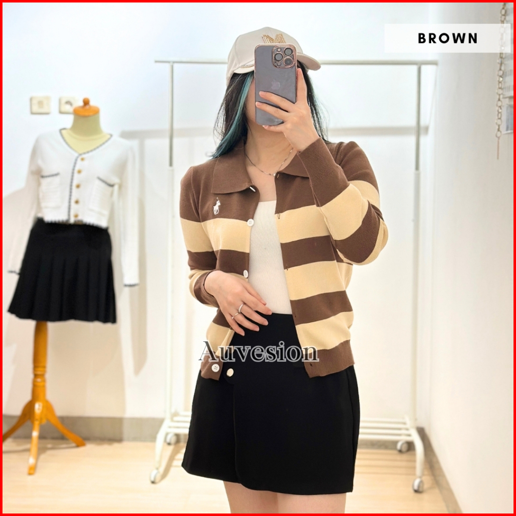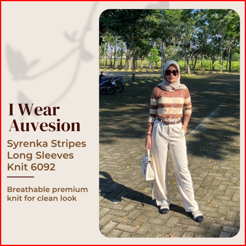 Auvesion Syrenka Stripes Two Tones Long Sleeves Knit Top 6092 Atasan Wanita Knit Cardigan