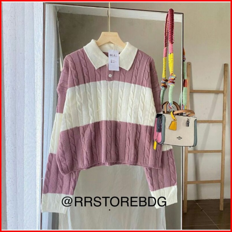 Crop Top Cable Sweater Rajut Top Premium Higt Quality