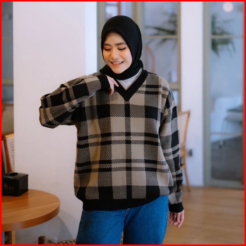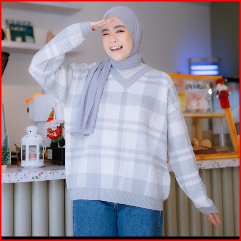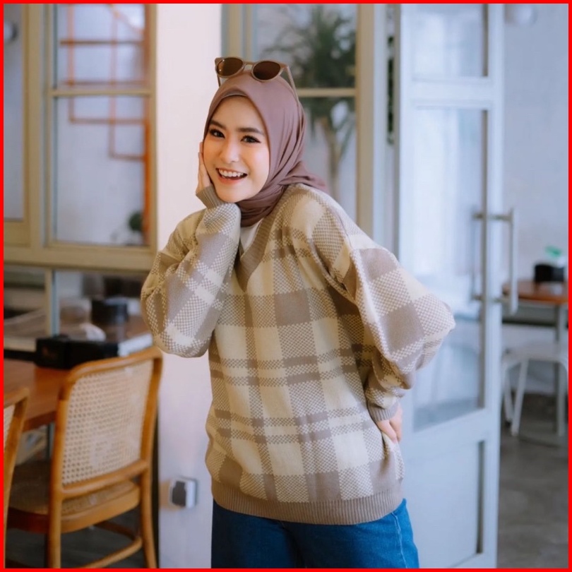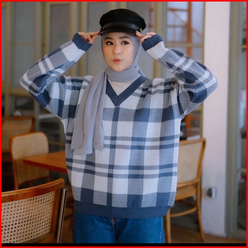 Sweater Rajut Square Garis Blouse Rajut Lidya