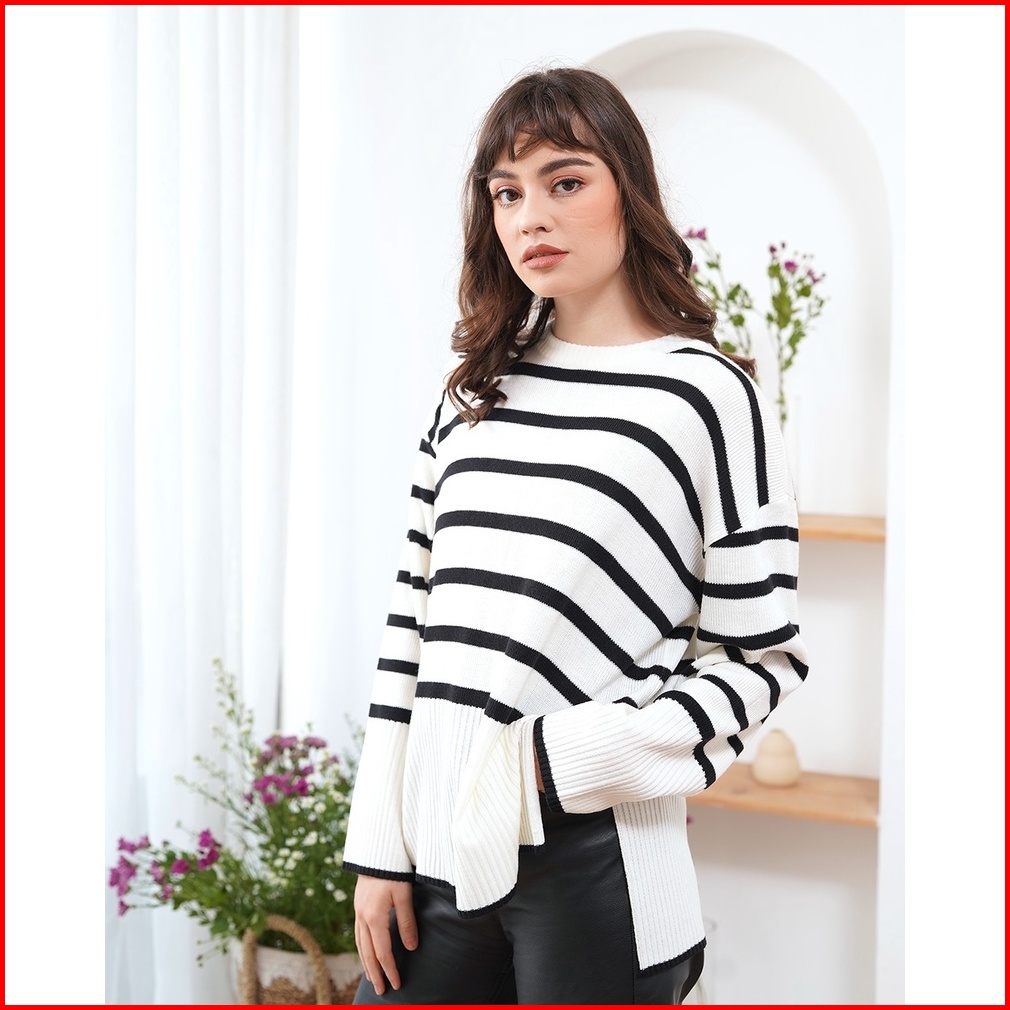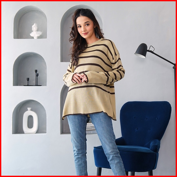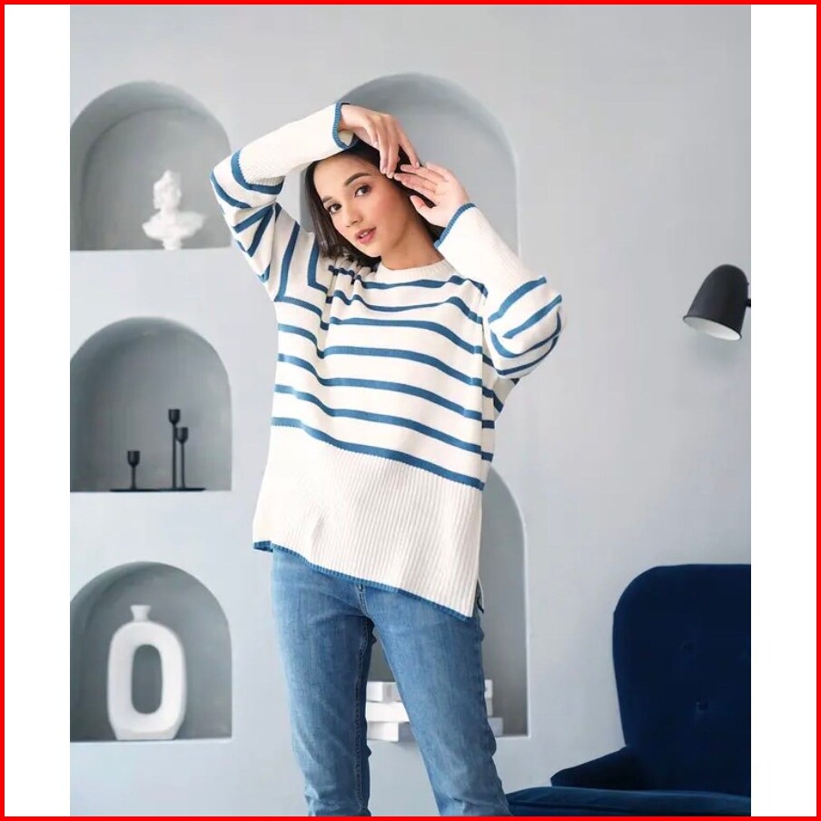 Knitter Haru Knit Oversize Sweater Striped Atasan Rajut Wanita Motif Garis 2104