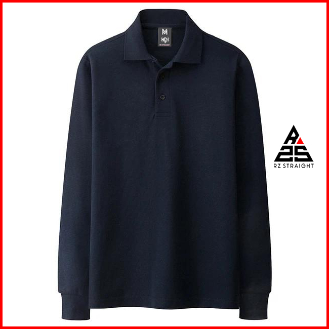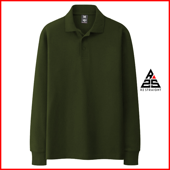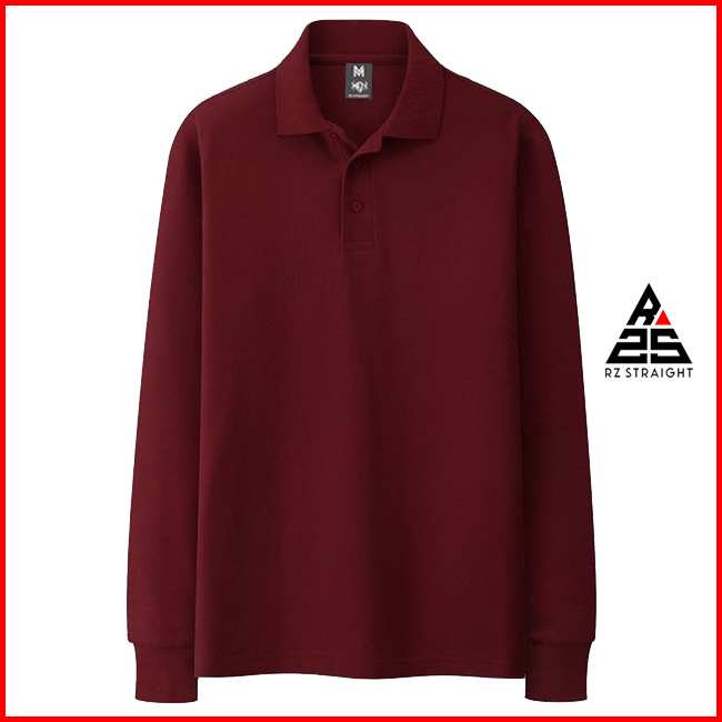 Rz Straight - Kaos Polo Lengan Panjang Polos Terkeren Pria Wanita Baju Kerah