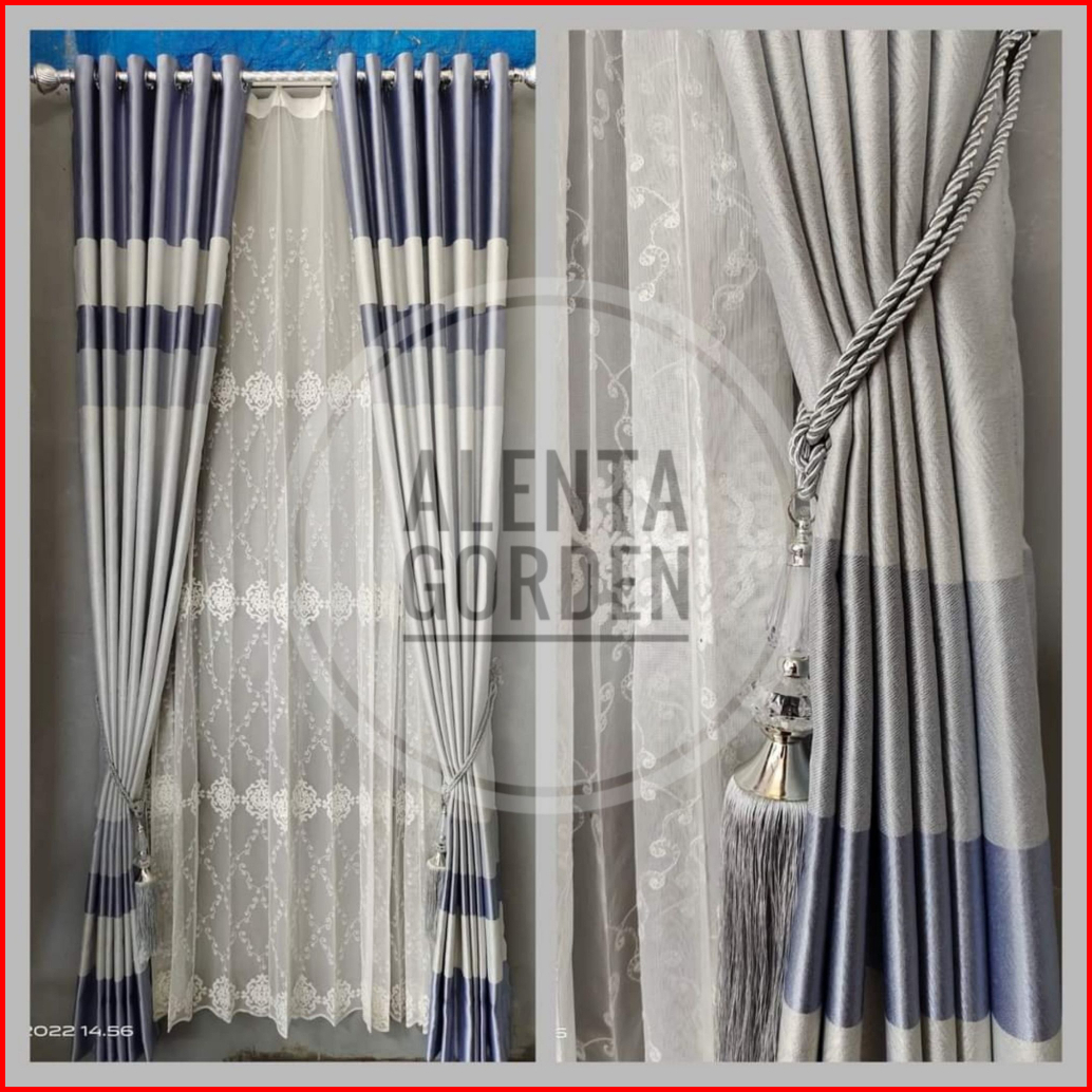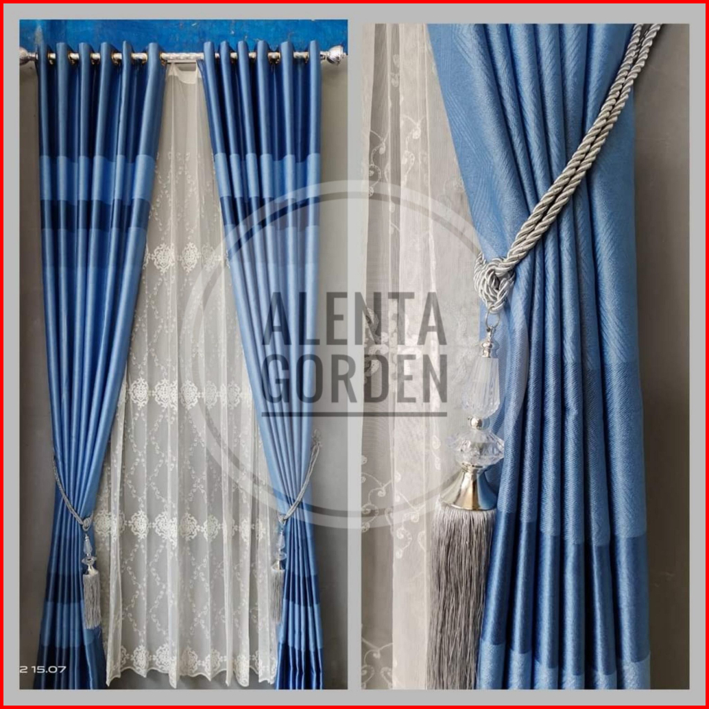 Gorden Blackout Import Warna Biru Motif Pelangi Untuk Jendela Minimalis Dan Pintu Model Smokring