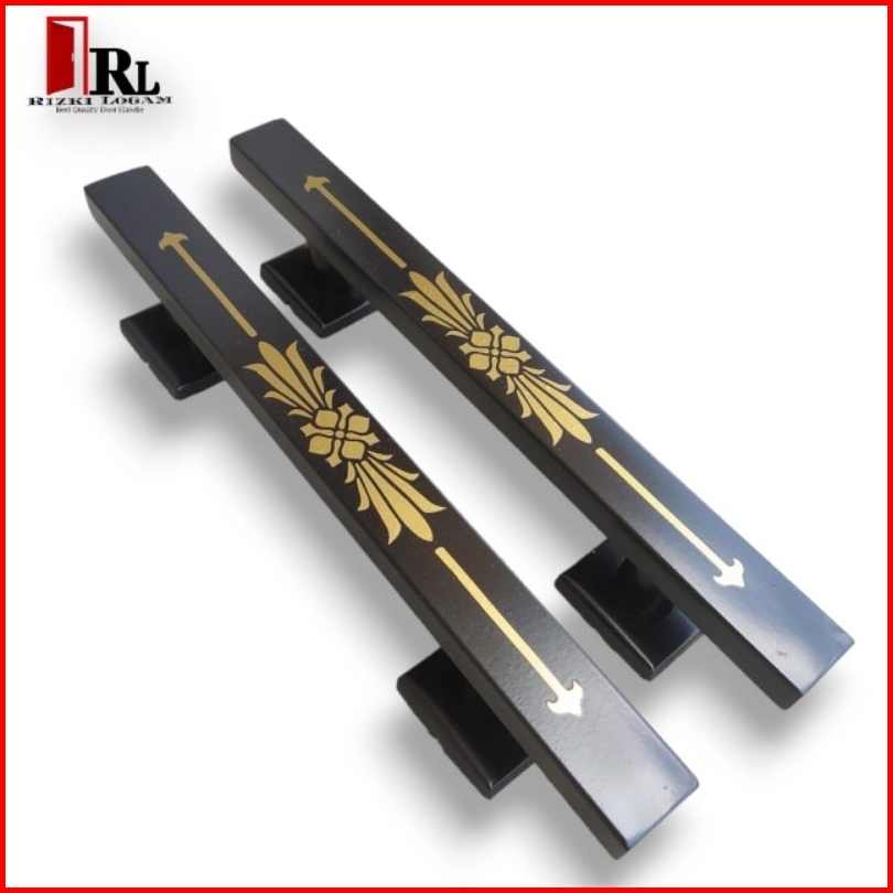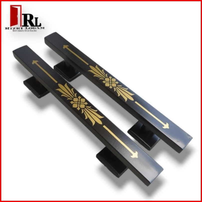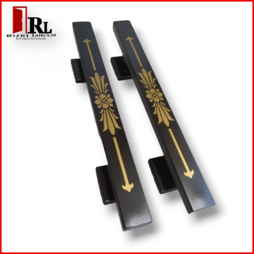 Handle Pintu Rumah Motif Bunga Teratai Full Hitam 35cm 45cm 60cm Gagang Pintu Stainless Tarikan Pintu Rumah