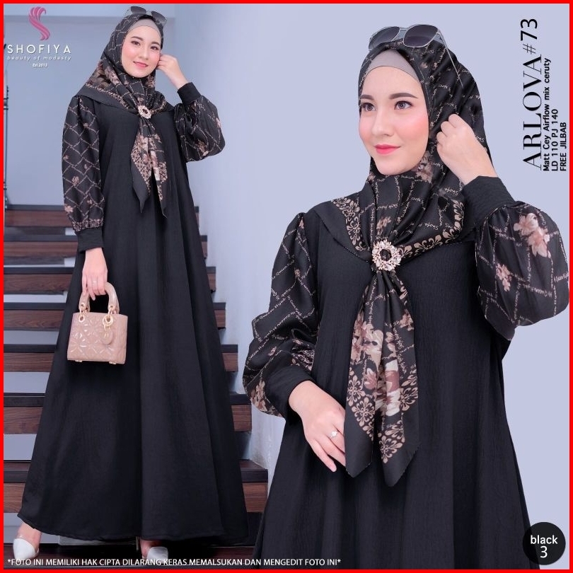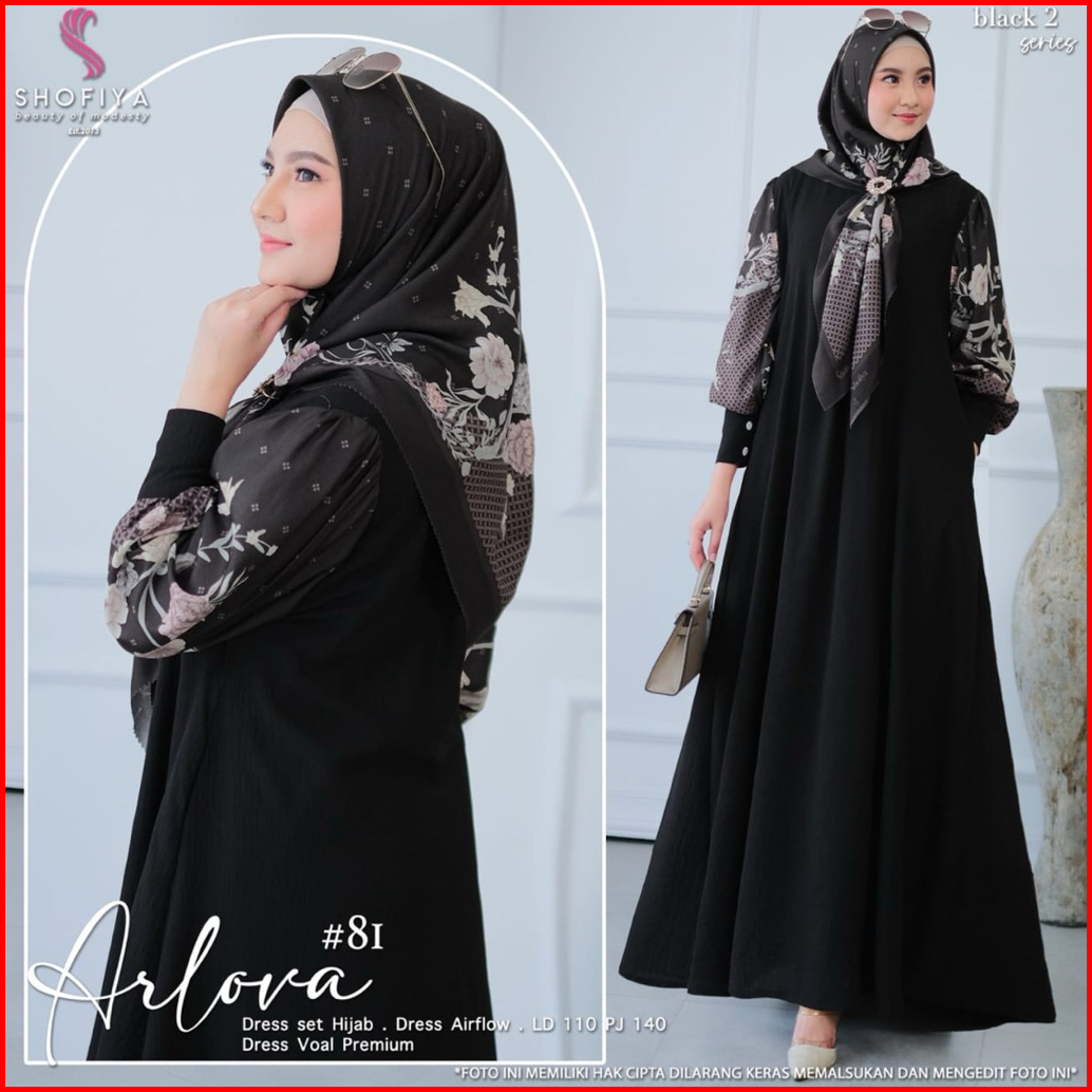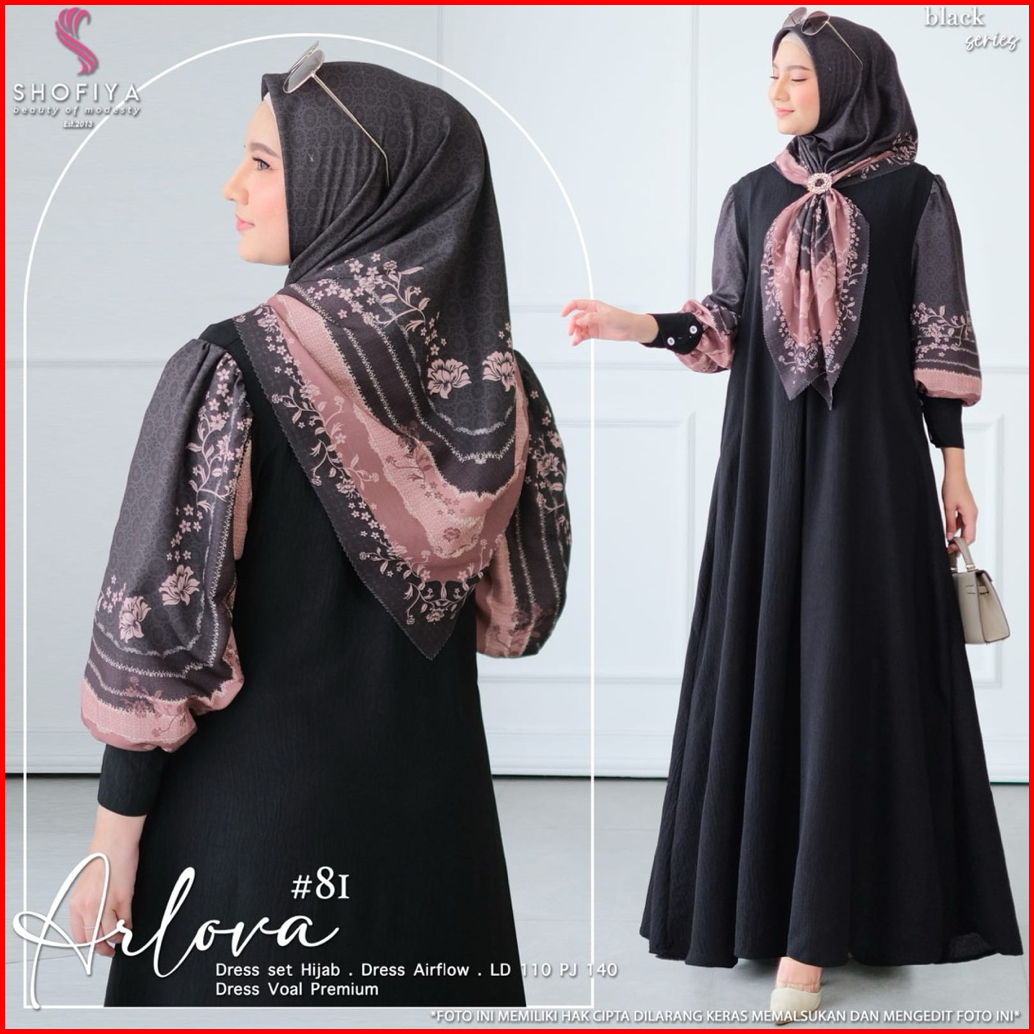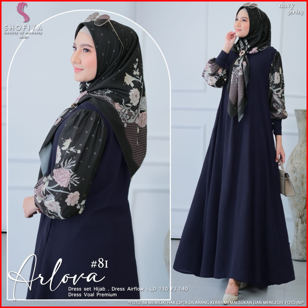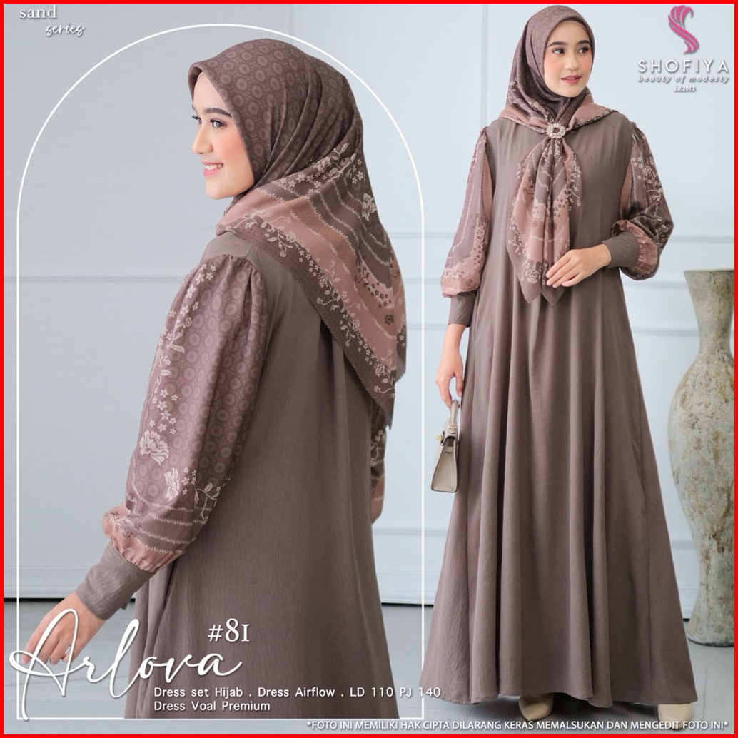 Azzaira Dress Gamis Set Hijab Terbaru Arlova Syari Cey Airlflow Adem