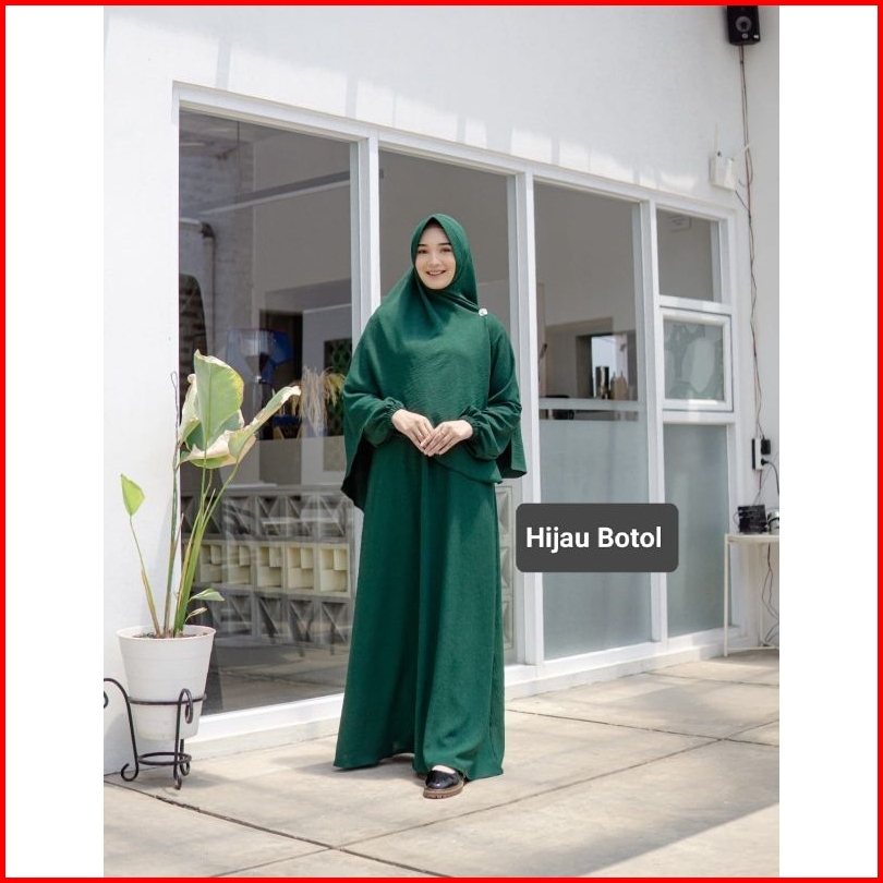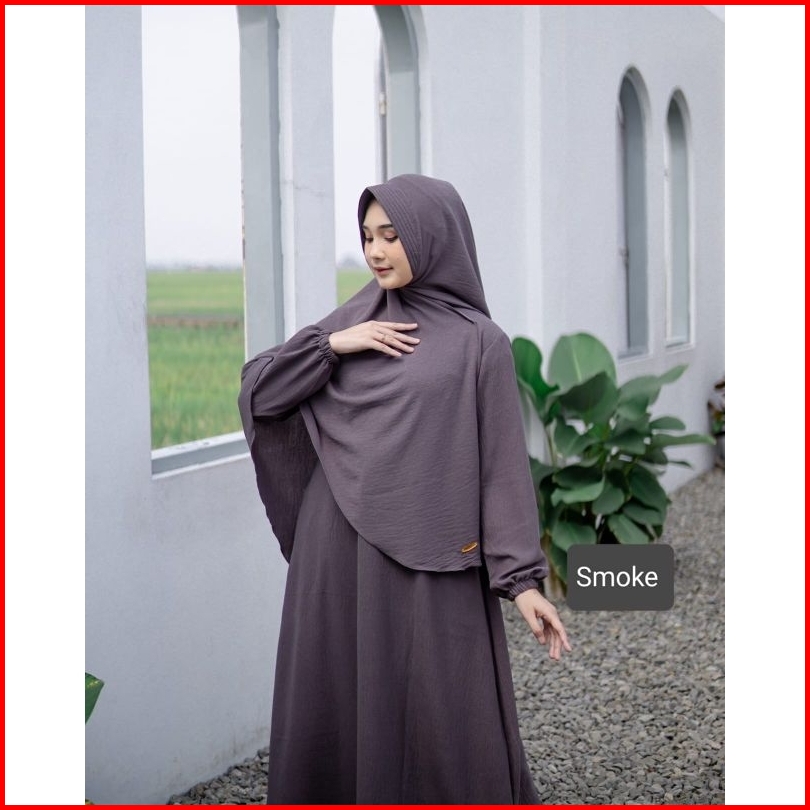 Gamis Set Hijab Belle By Denyan Mw Bahan Cringkle Airflow