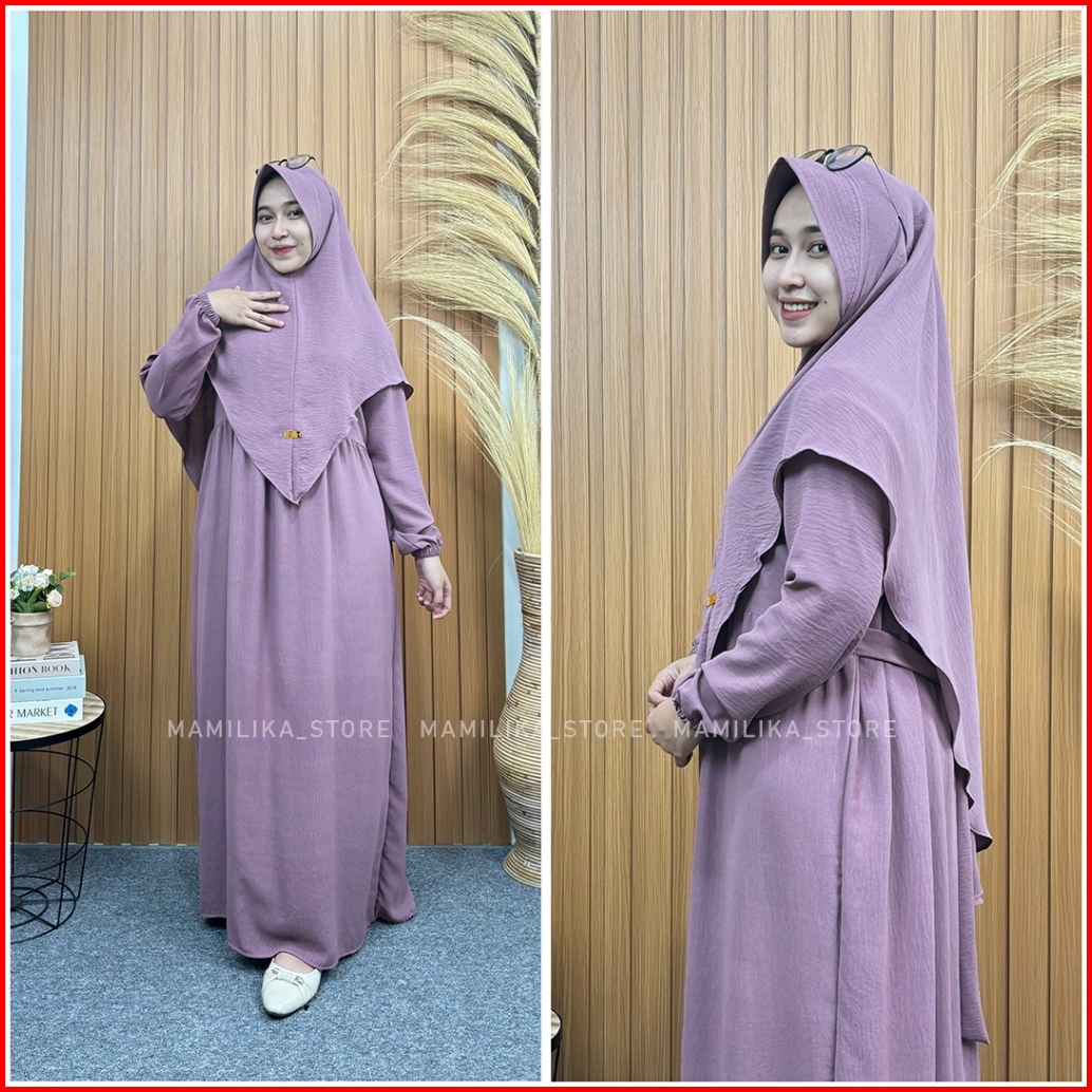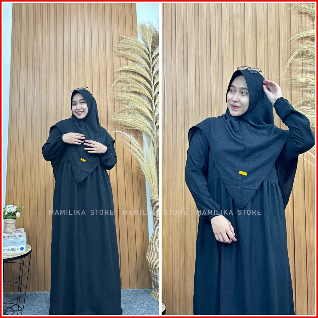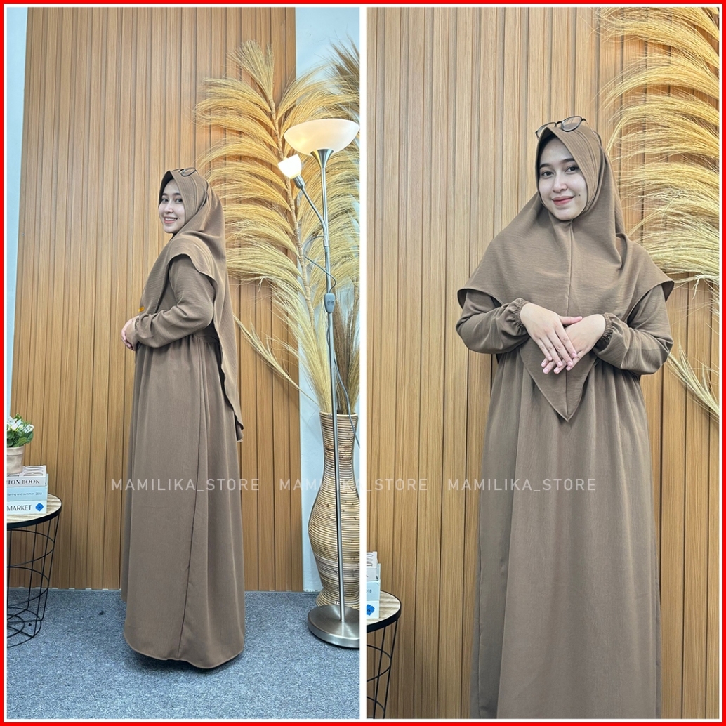 Medina Set Hijab Gamis Syari Crinkle Airflow