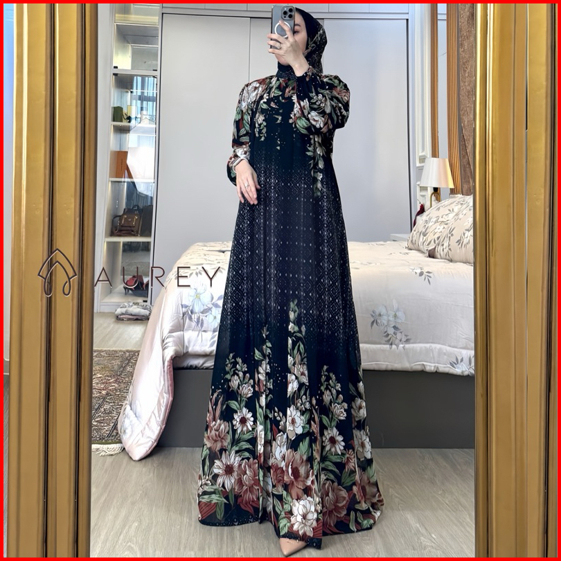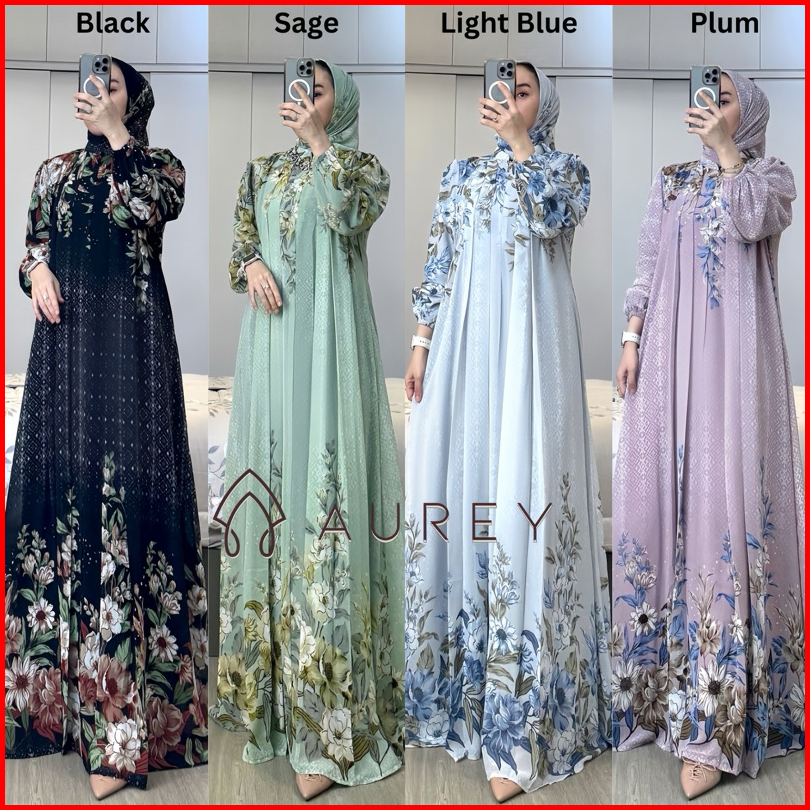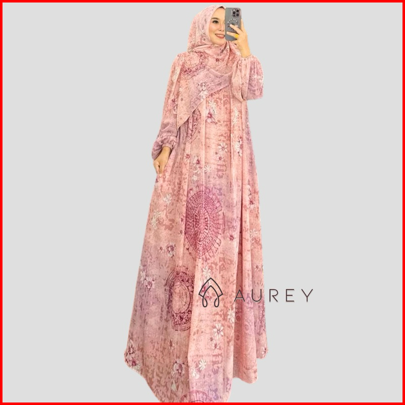 Aurey Set Hijab Gamis Wanita Ansara Dress Wanita Luxury Gamis Set Hijab Busui Setelan Hijab Gamis Wanita Premium Lengan