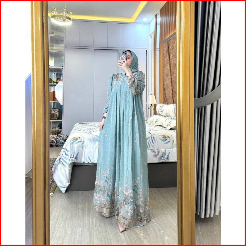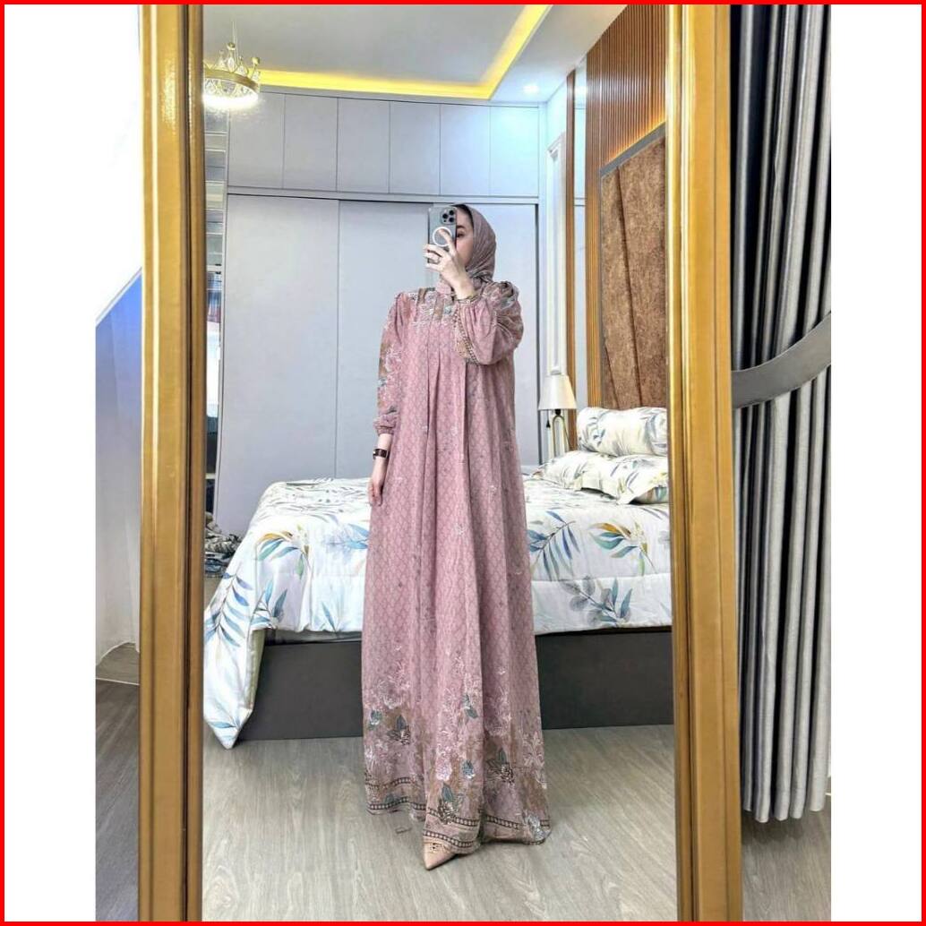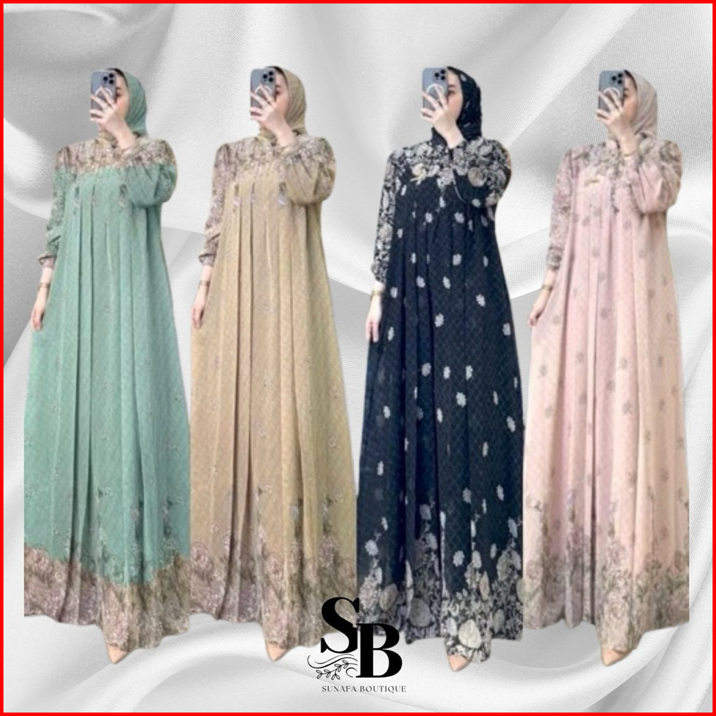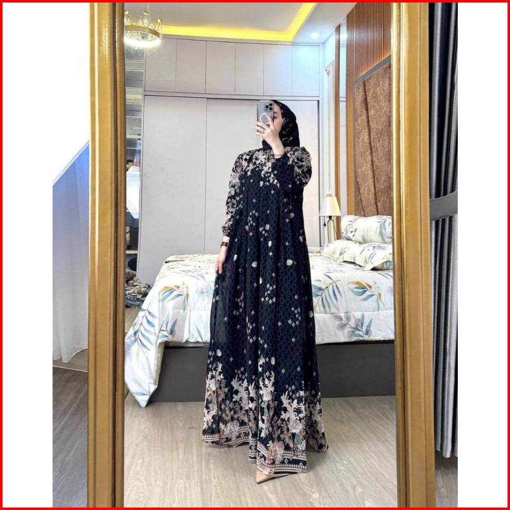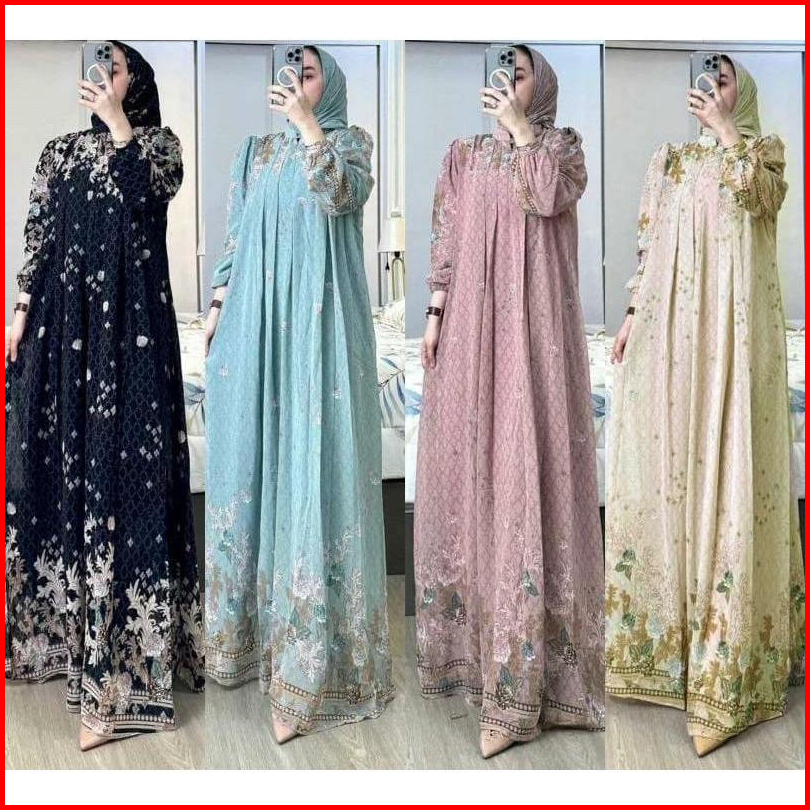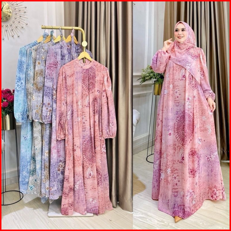 Fashion - Vilona Set Hijab Gamis Wanita Ceruty Hyget Motif Terbaru Free Hijab