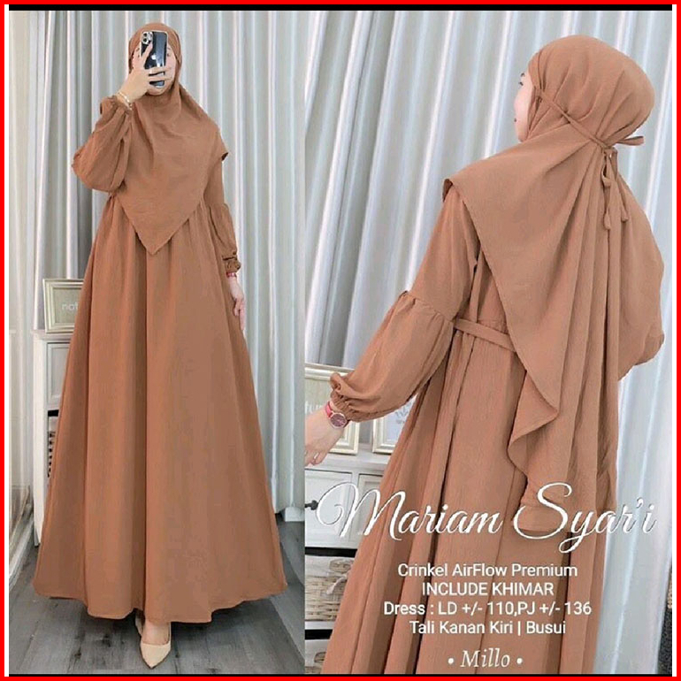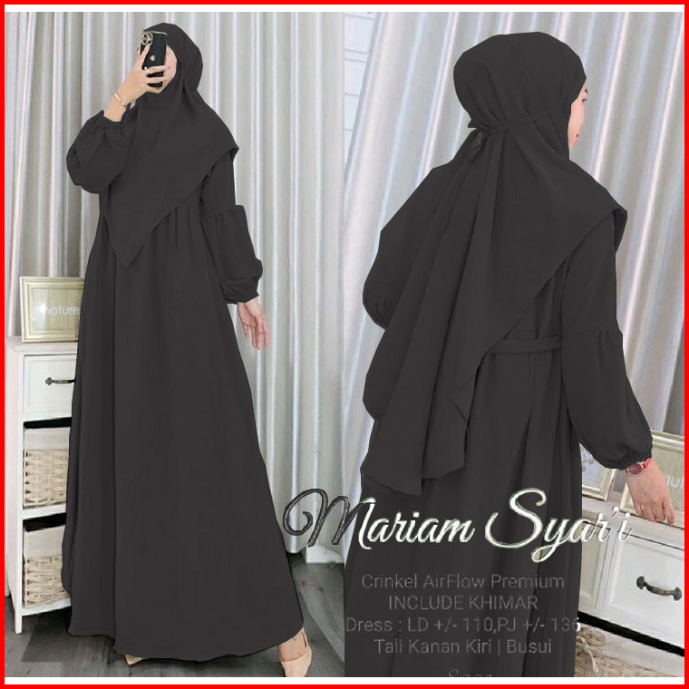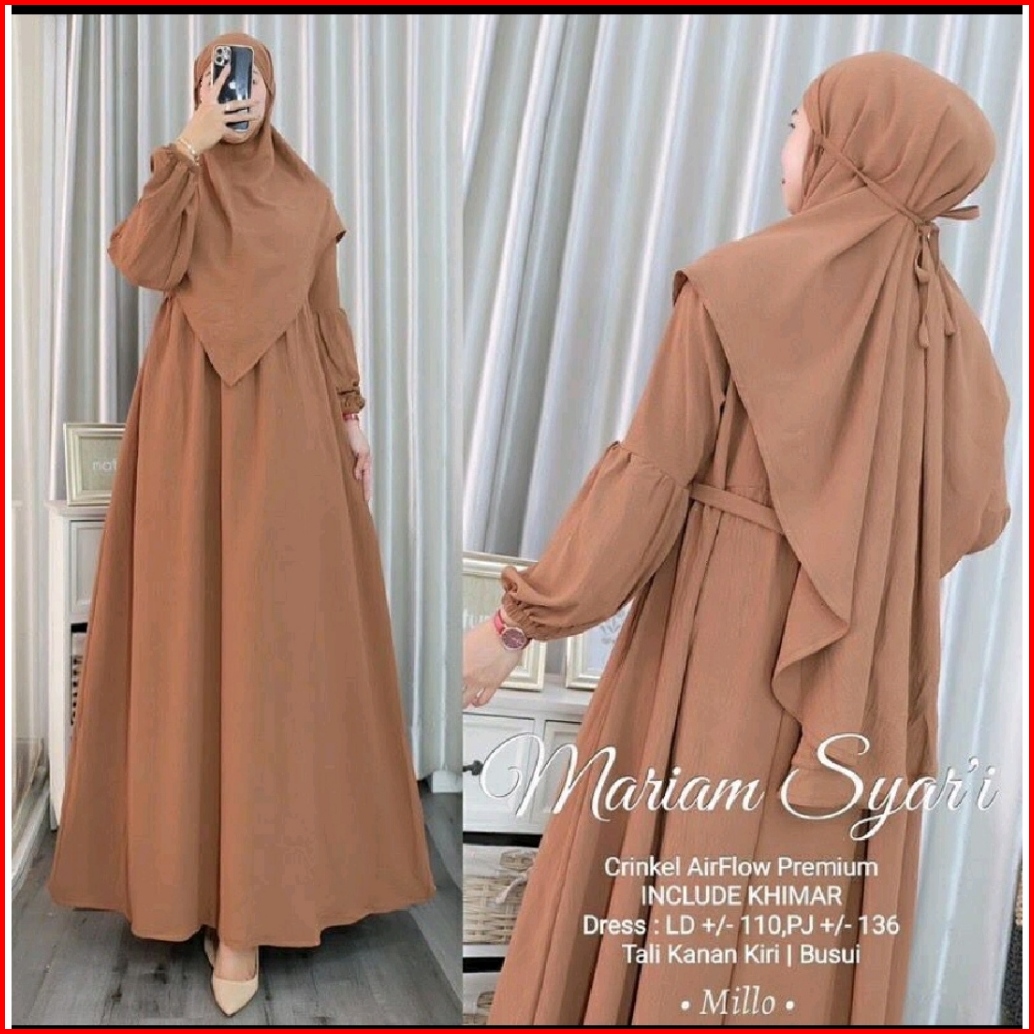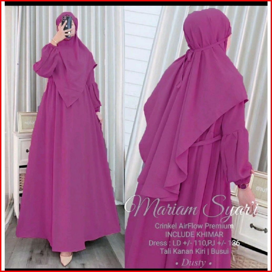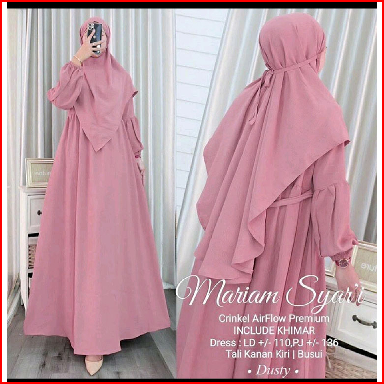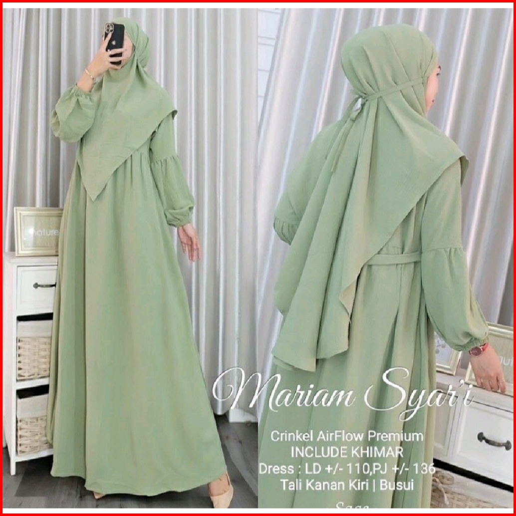 Mariam Syari Gamis Syari Viral Set Hijab Cringkle Air Flow L-xl-xxl