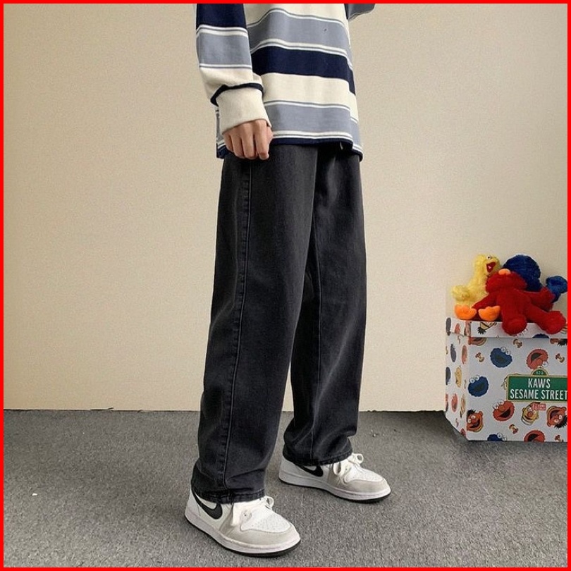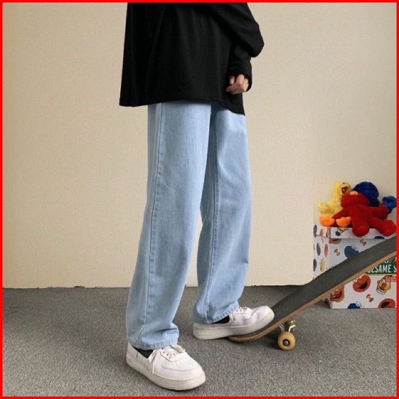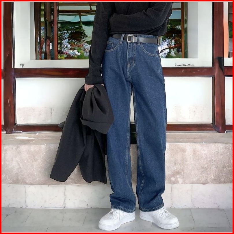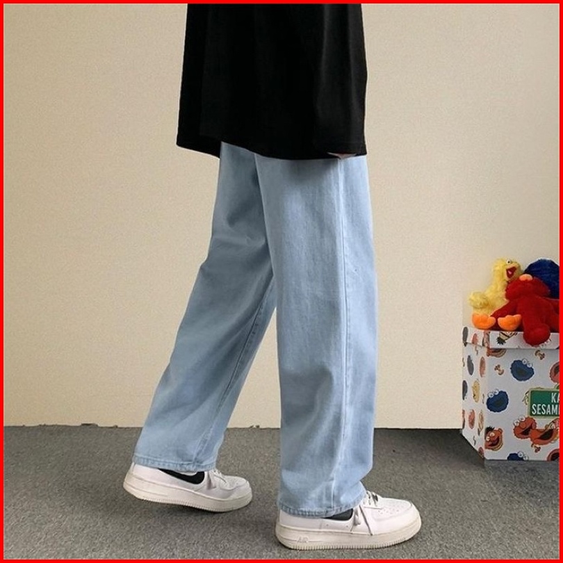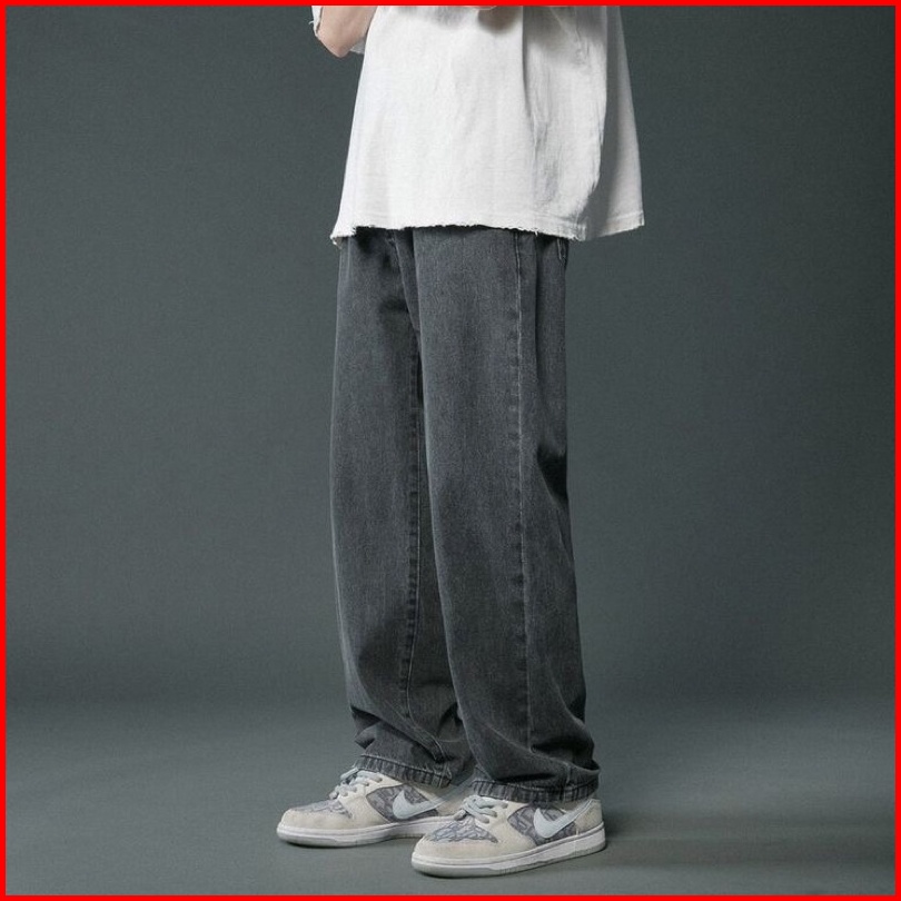 Haztore - Celana Jeans Pria Loose Pants Import Jumbo Longgar Kekinian Baggy Jeans Korean Style