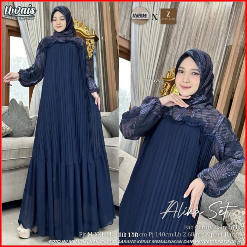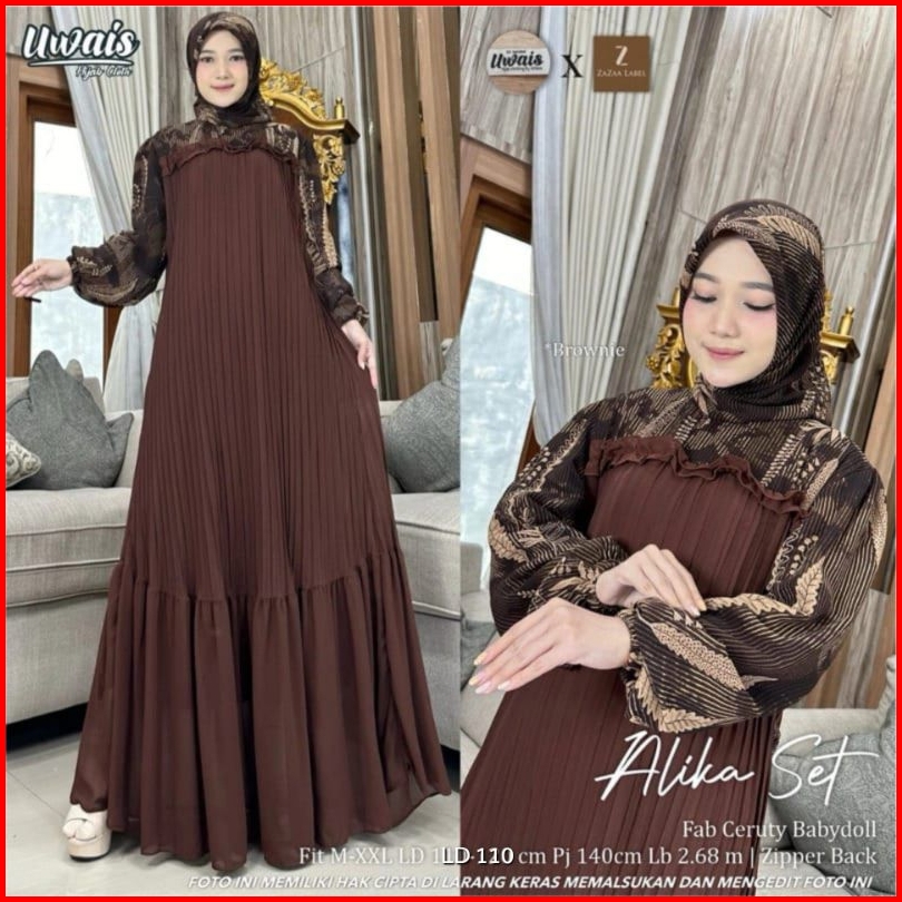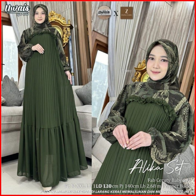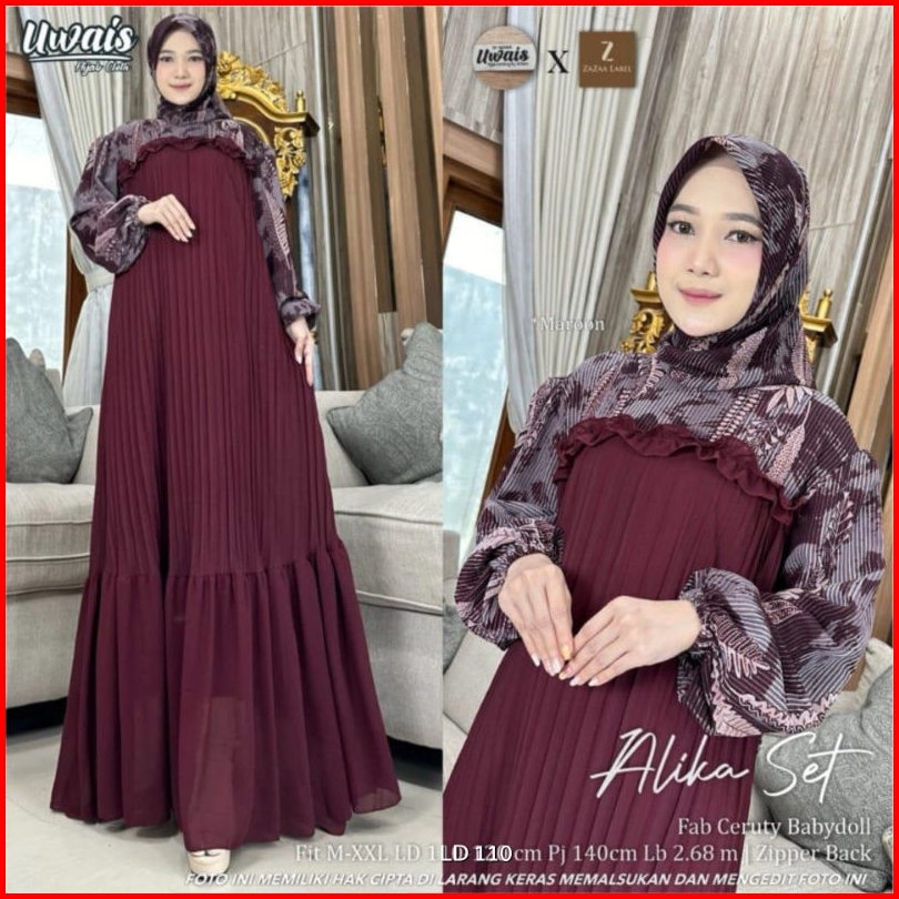 Alika Set Label Savna Gamis Plisket Set Hijab Lebaran Terlaris