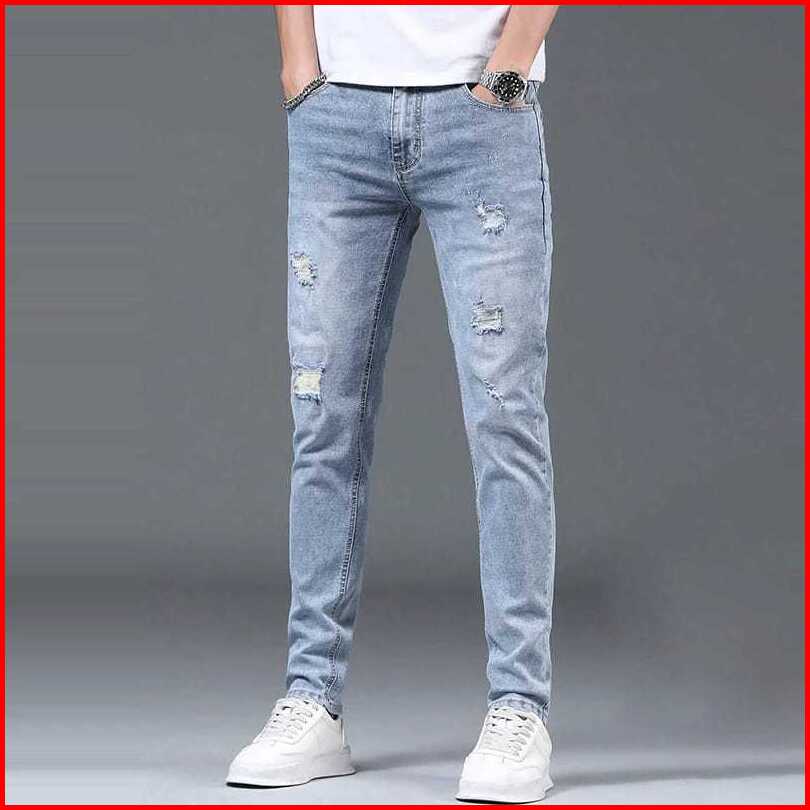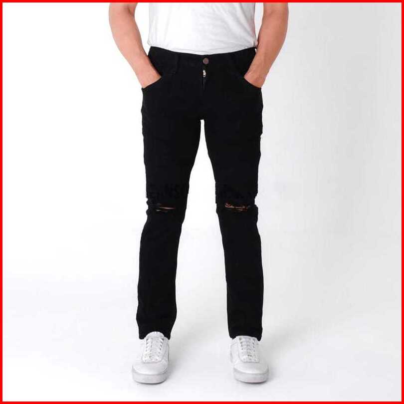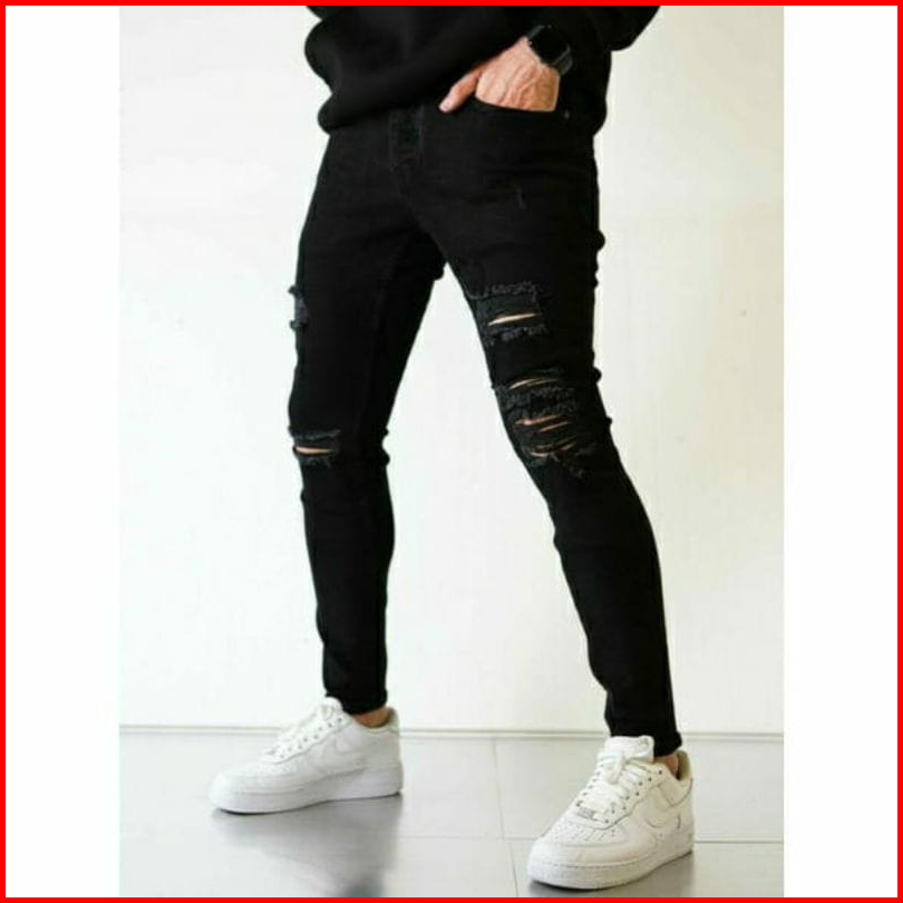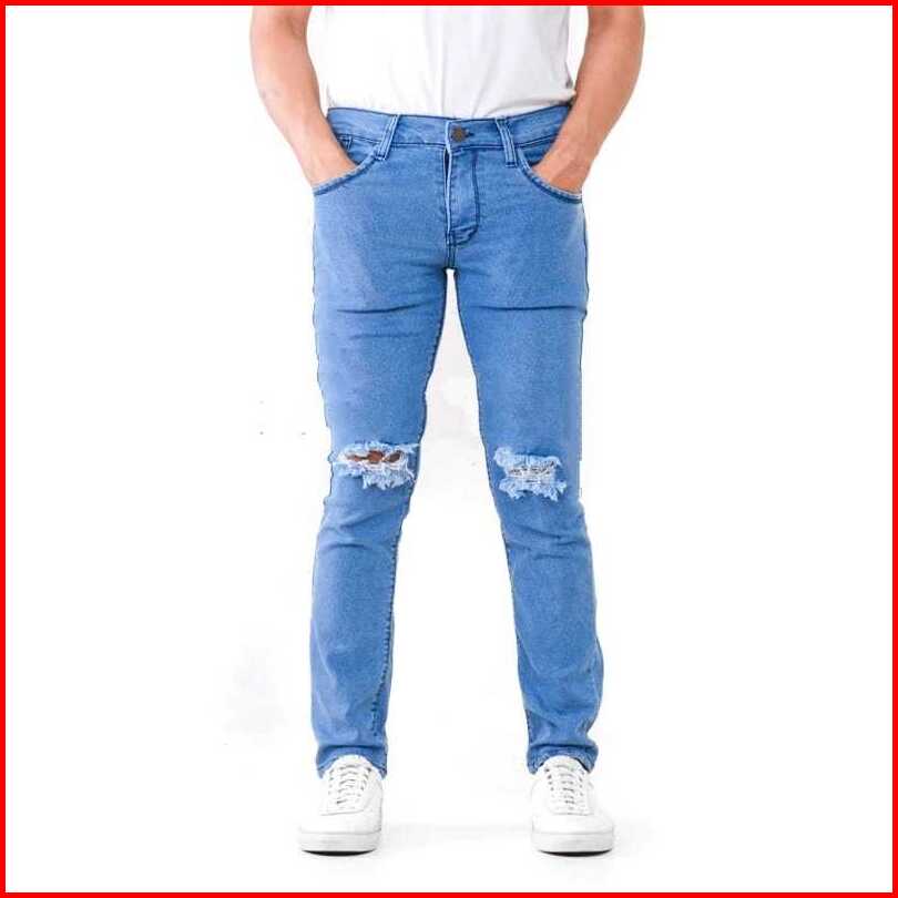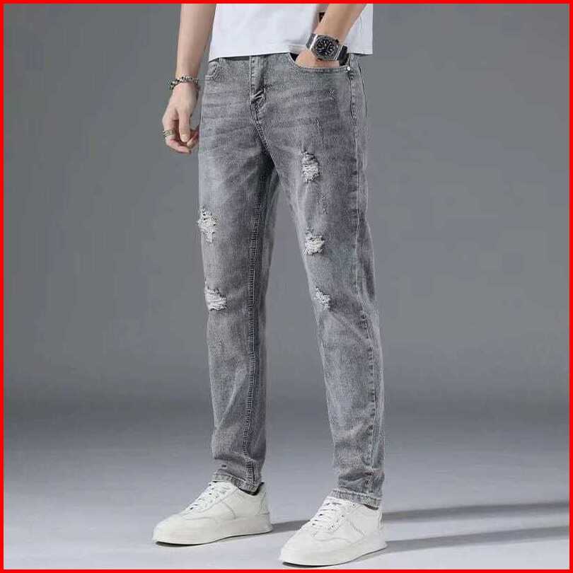Barbarrstore Celana Jeans Pria Sobek Abu Grey Slimfit Stretch Panjang Cowok Ripped Celana Denim Dewasa Robek Skinny Pens
