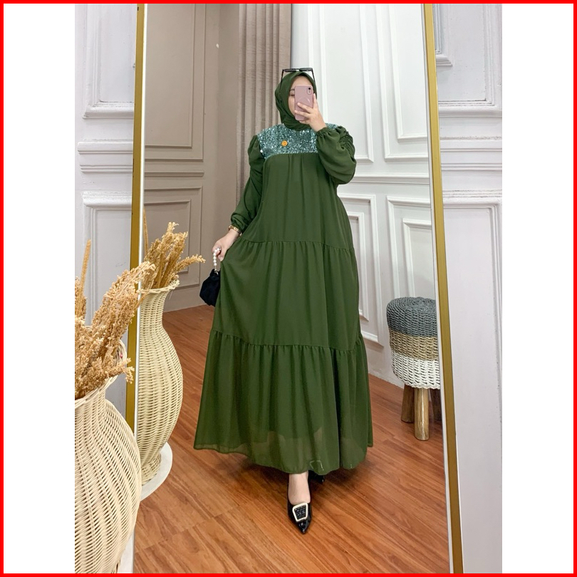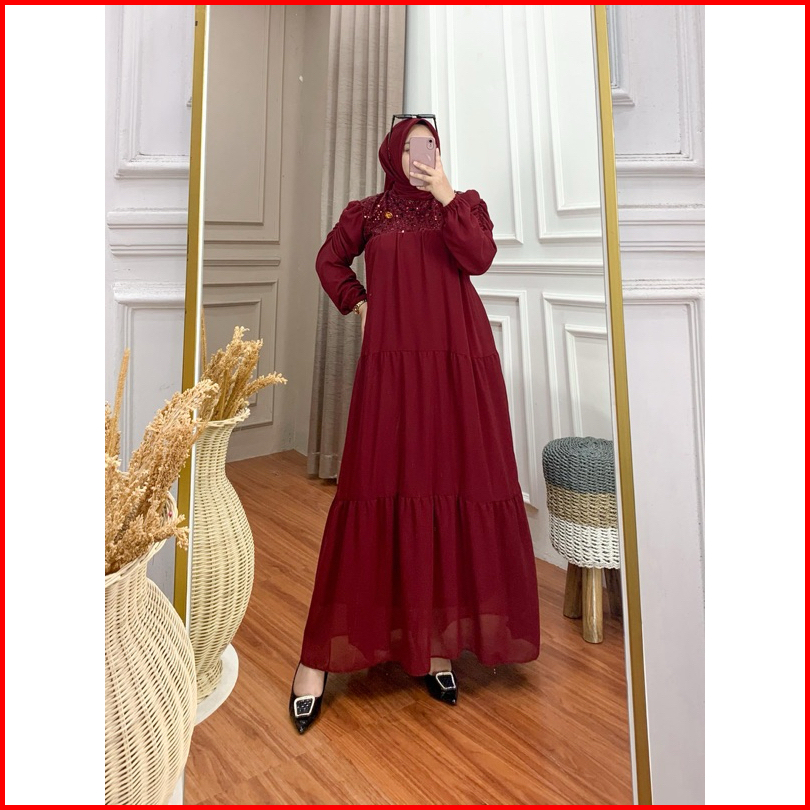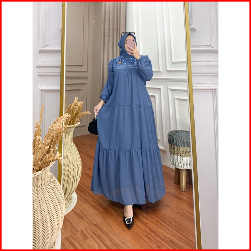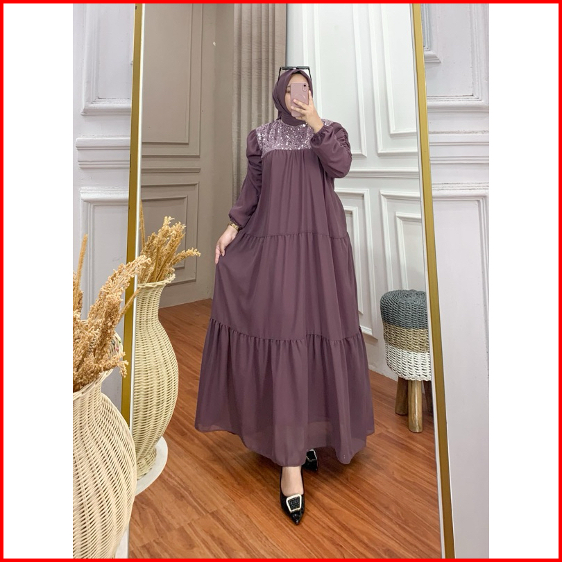 Gamis Amara Set Hijab Ceruty Mix Brokat Spangel