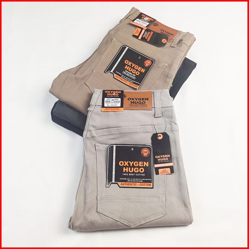 Oxygen Hugo Stretch Jeans Smart Casual Pants Pria Slim Fit Bahan 100 Original Baby Canvas