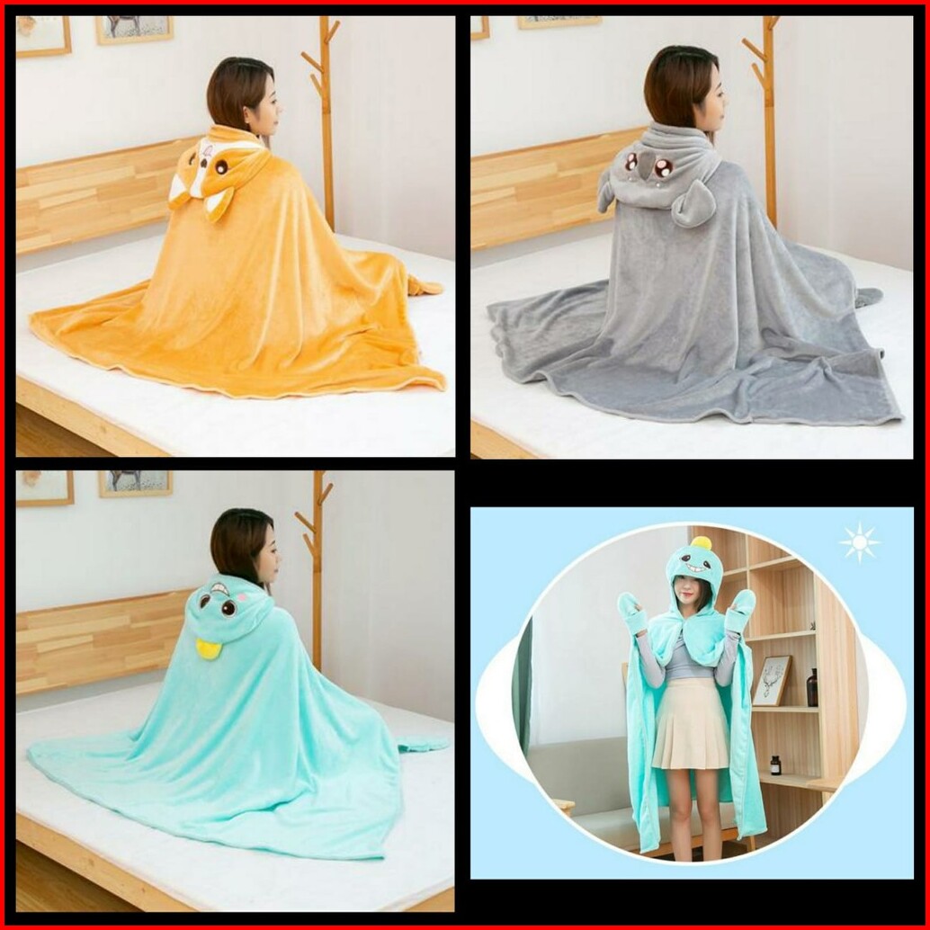 Selimut Hoodie Karakter Dino Koala Dan Shiba Inu