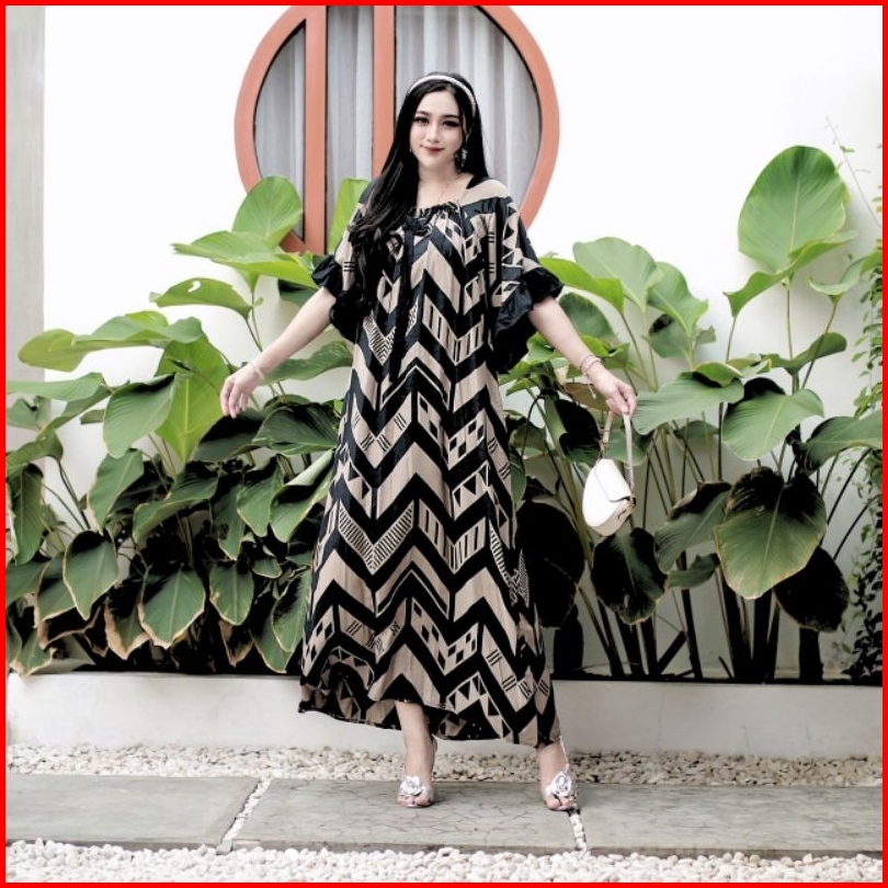 Daster Andin Arab Fuji Songket Zigzag Rayon Super Grade A Ori Model Leher Kerut Ld 130 Jumbo