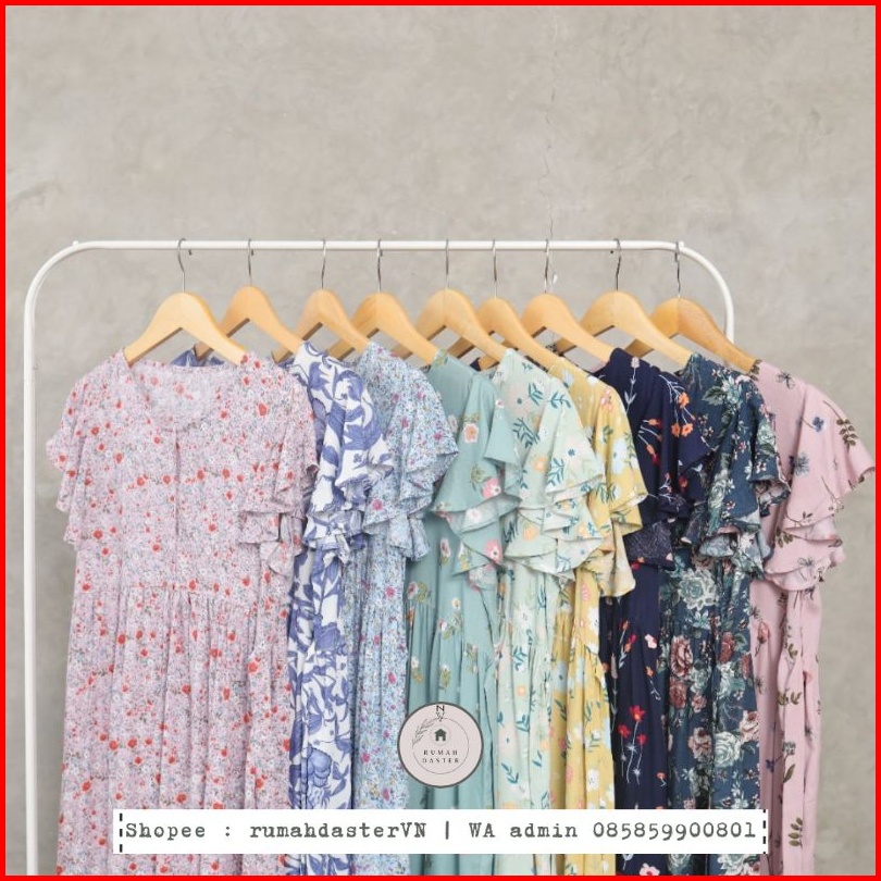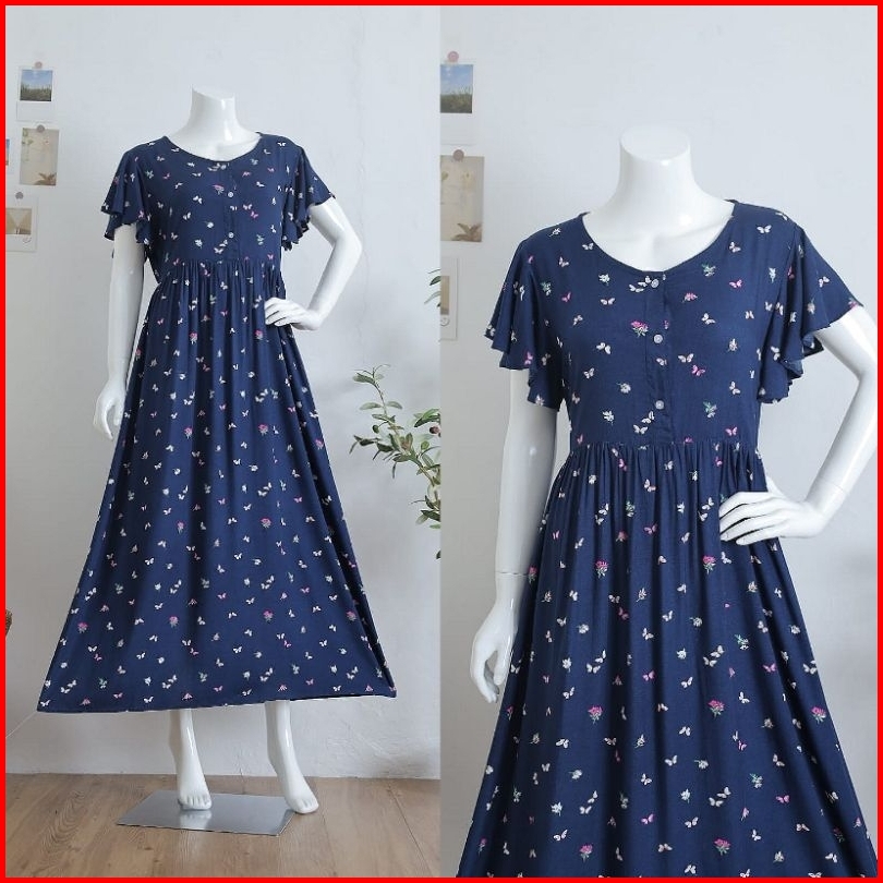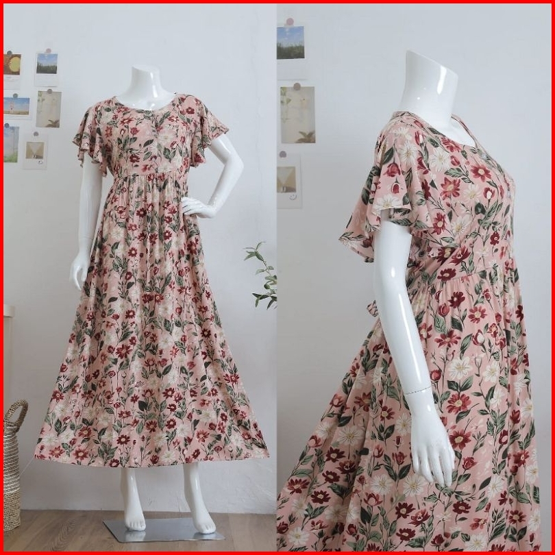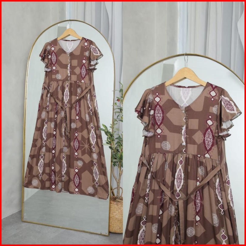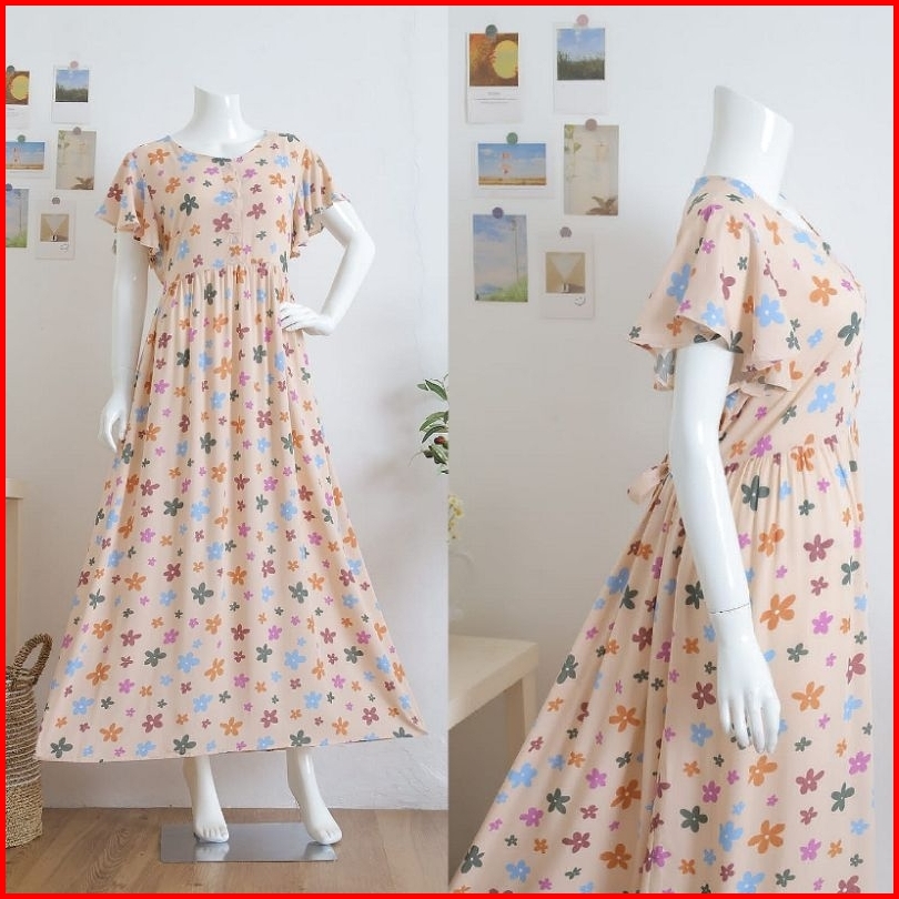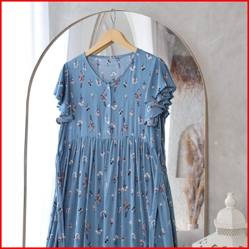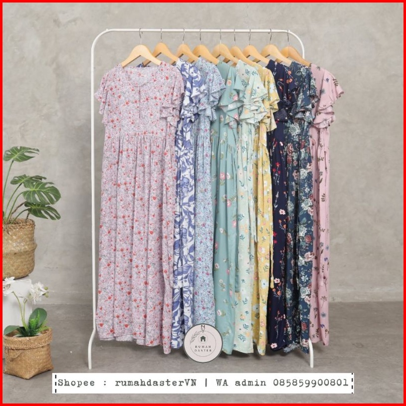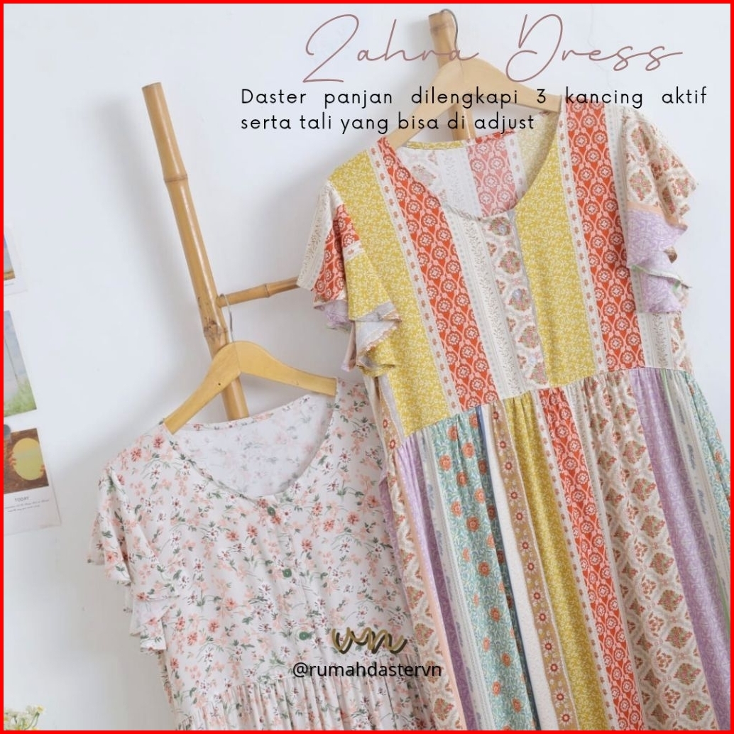 Zahra Dress Daster Panjang Semata Kaki Murah Busui Friendly Lengan Kriwil