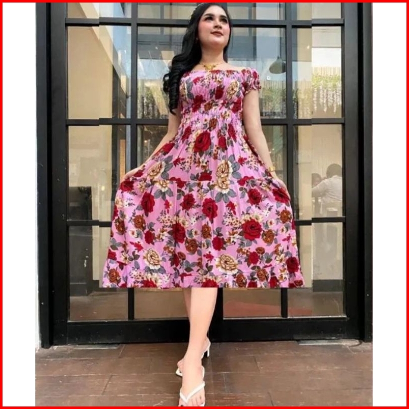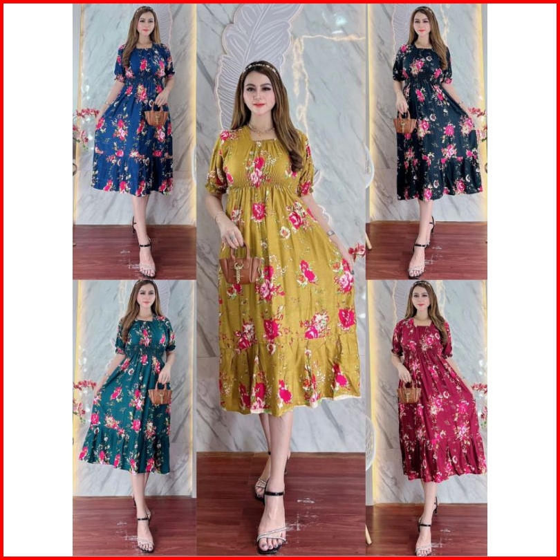 Daster Dress Canda Mawar Jumbo Rayon Kerut