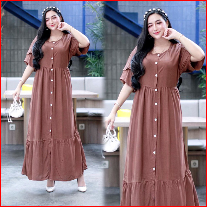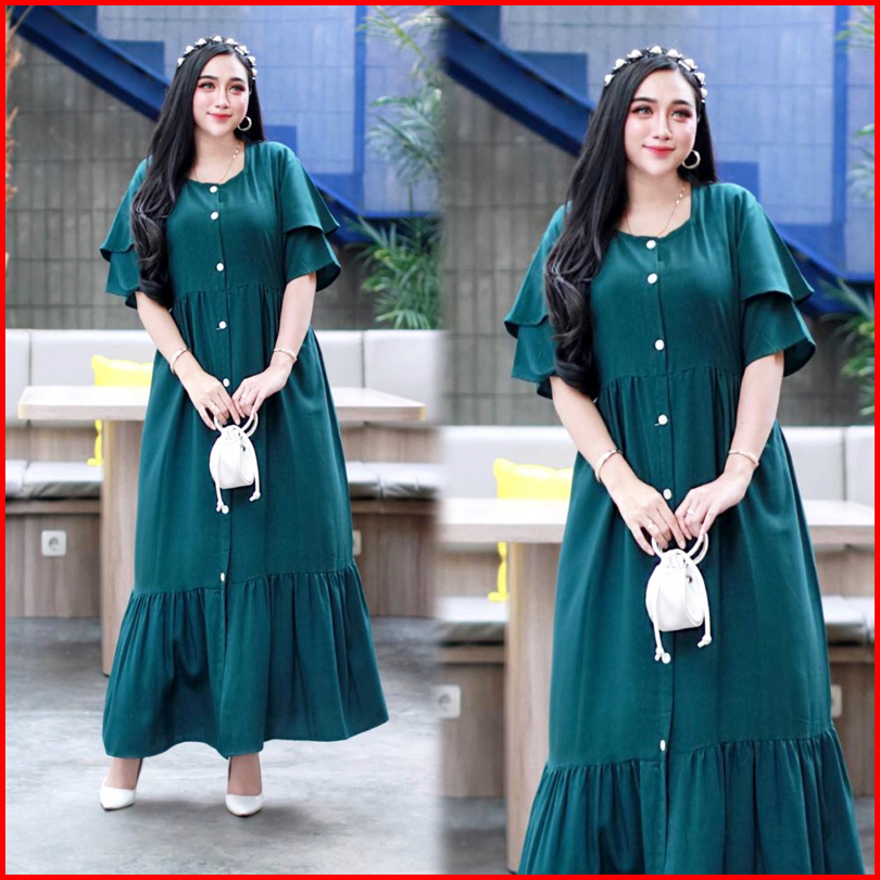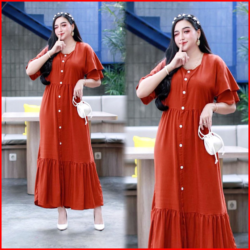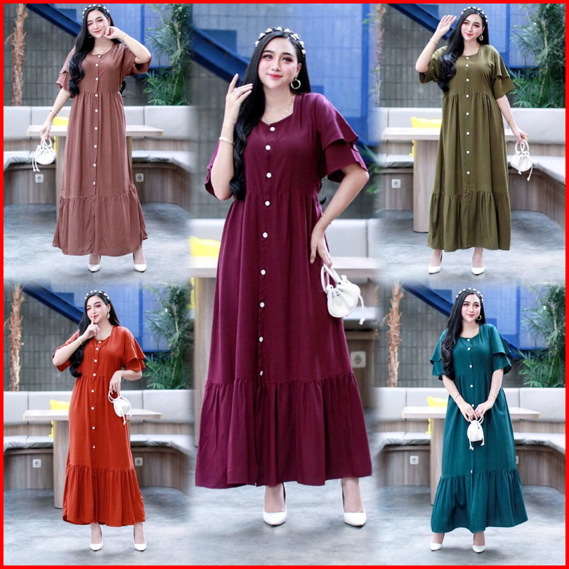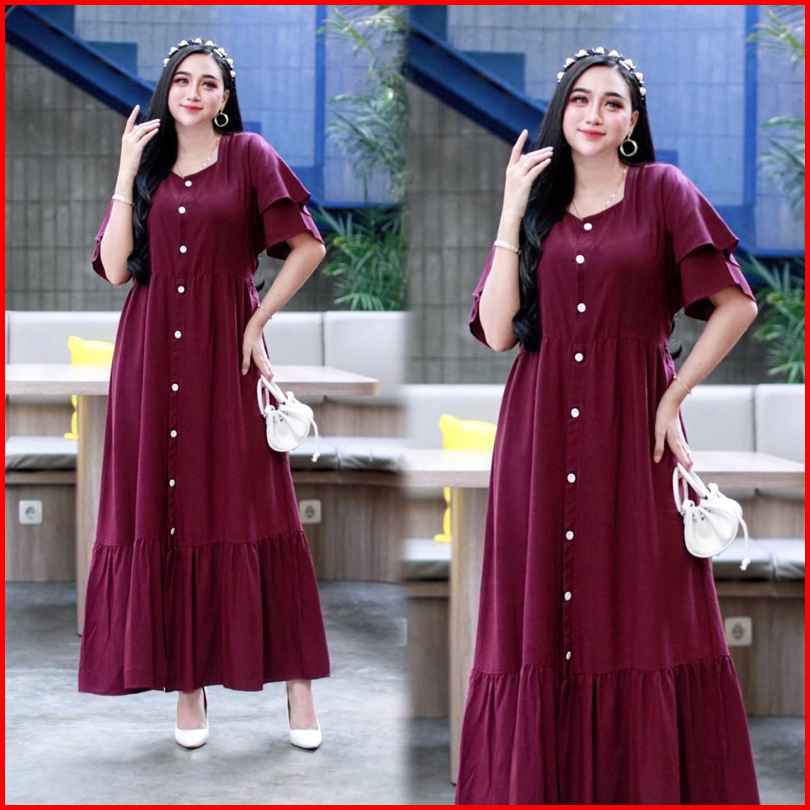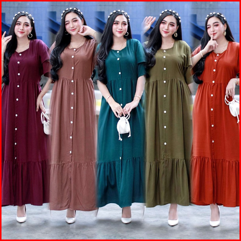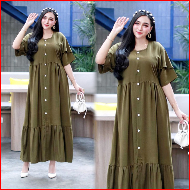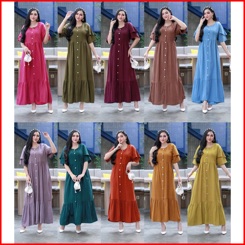Daster Azalea Polos Ruffle Susun Kancing Depan Busui Bumil