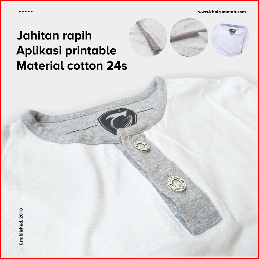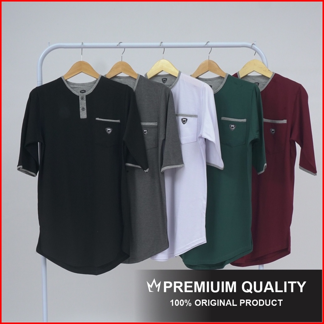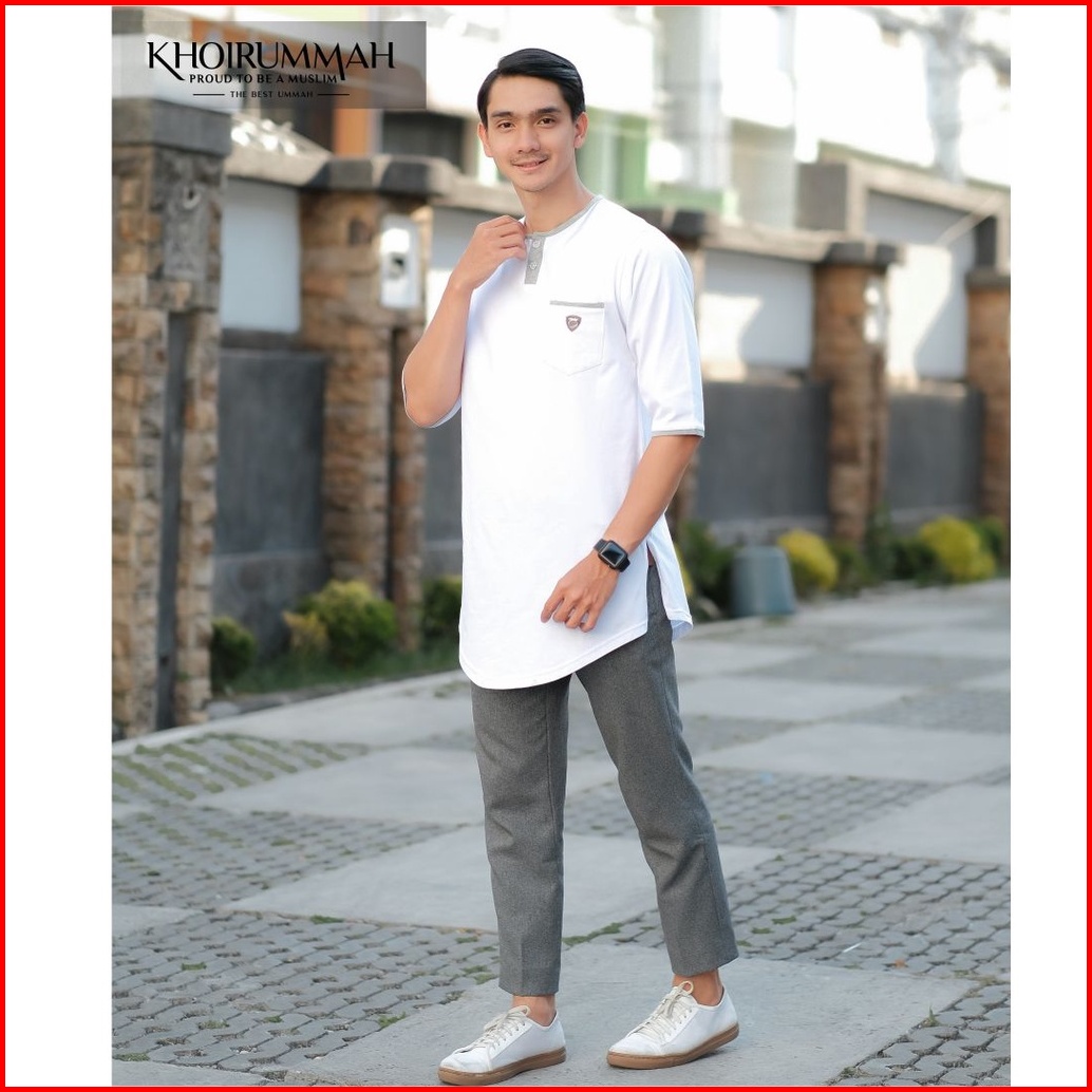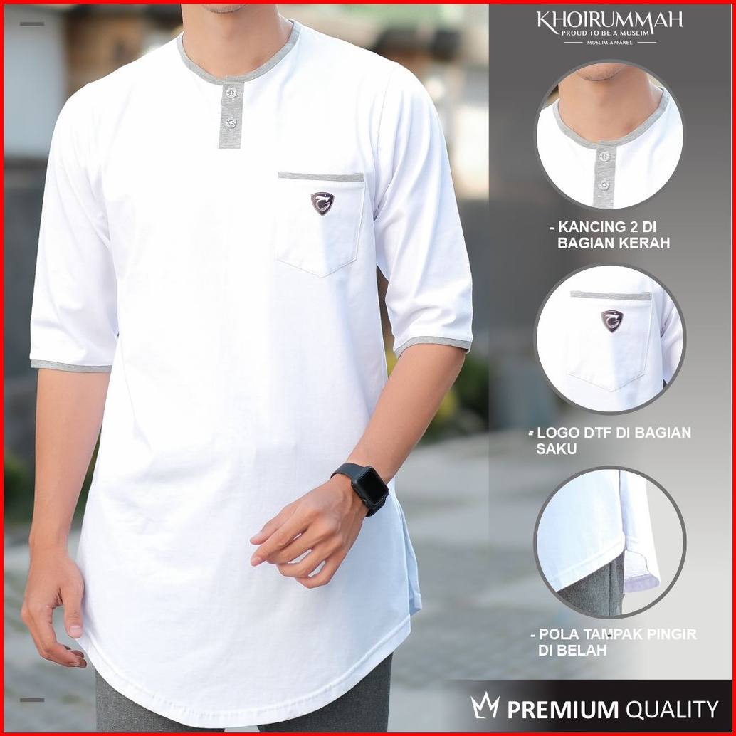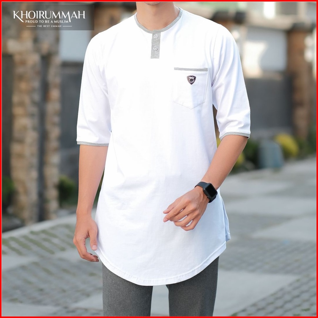 Khoirummah Koko Kurta Badar Kaos Kurta Polos Koko Pria Dewasa Lengan 3 4 White