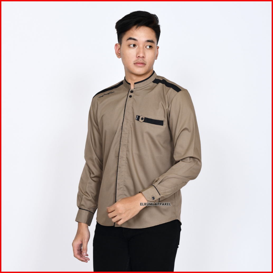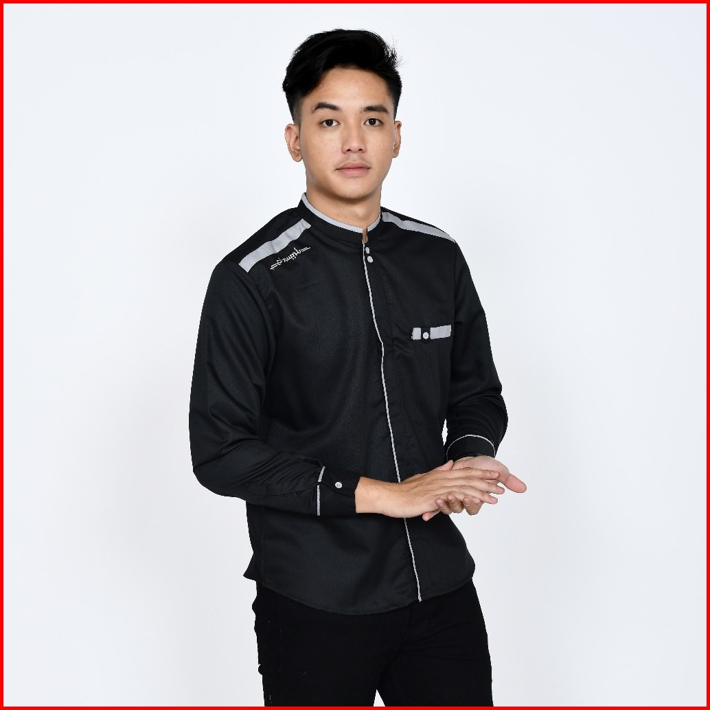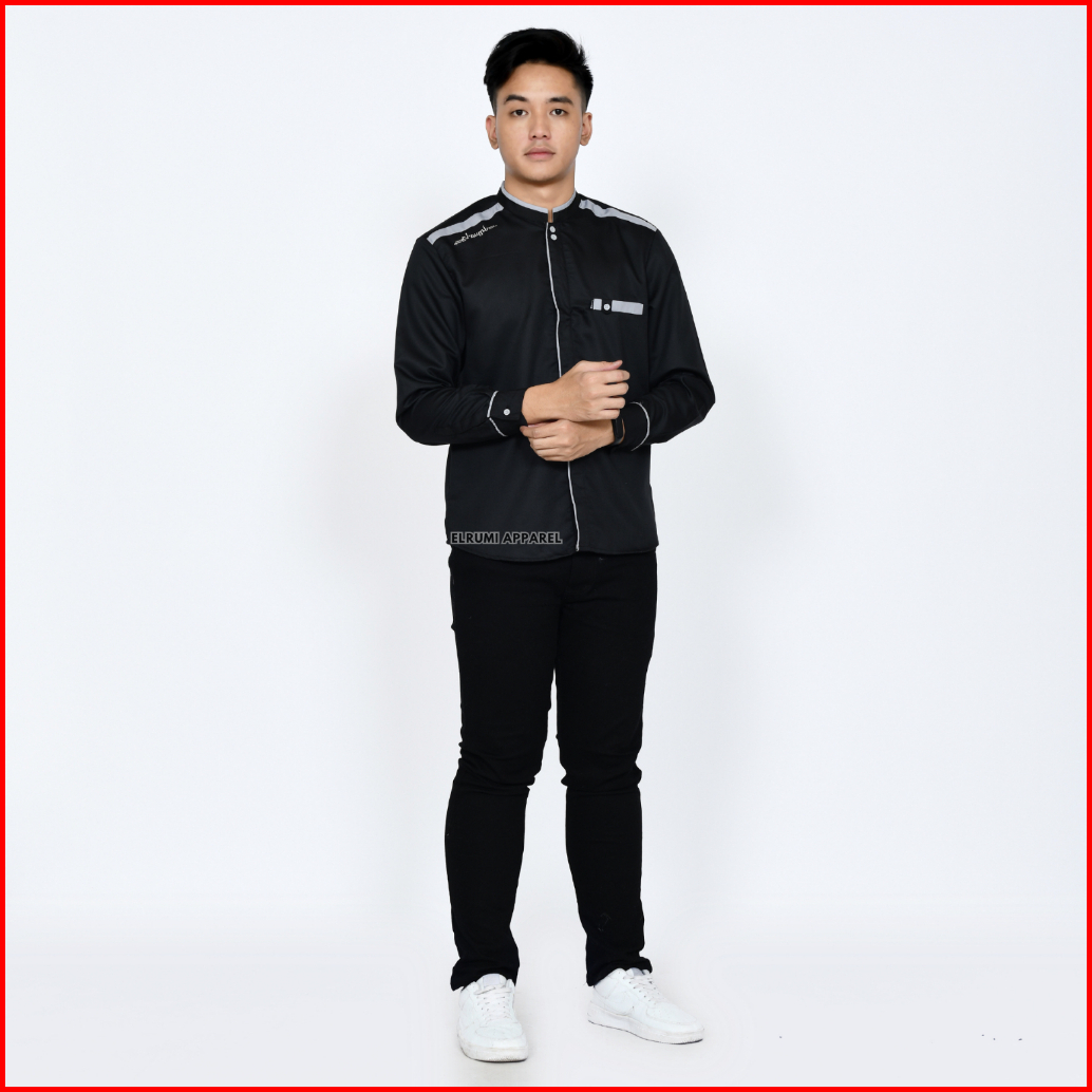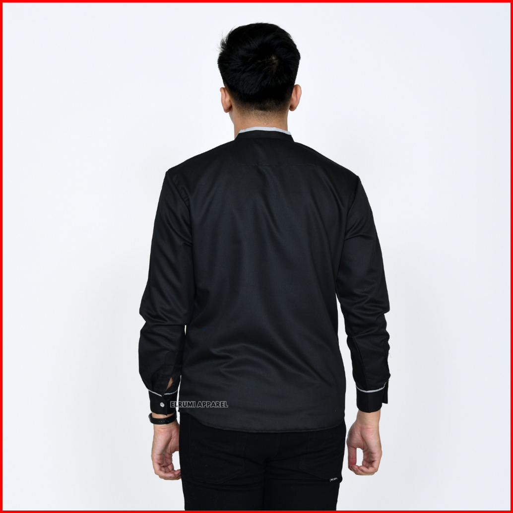 Baju Koko Pria Lengan Panjang Warna Hitam Polos Original Elrumi Motif Yisunsin