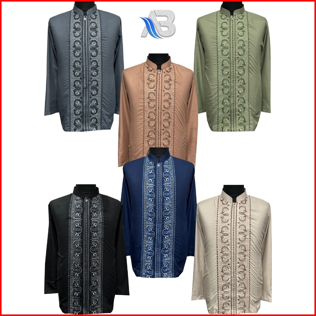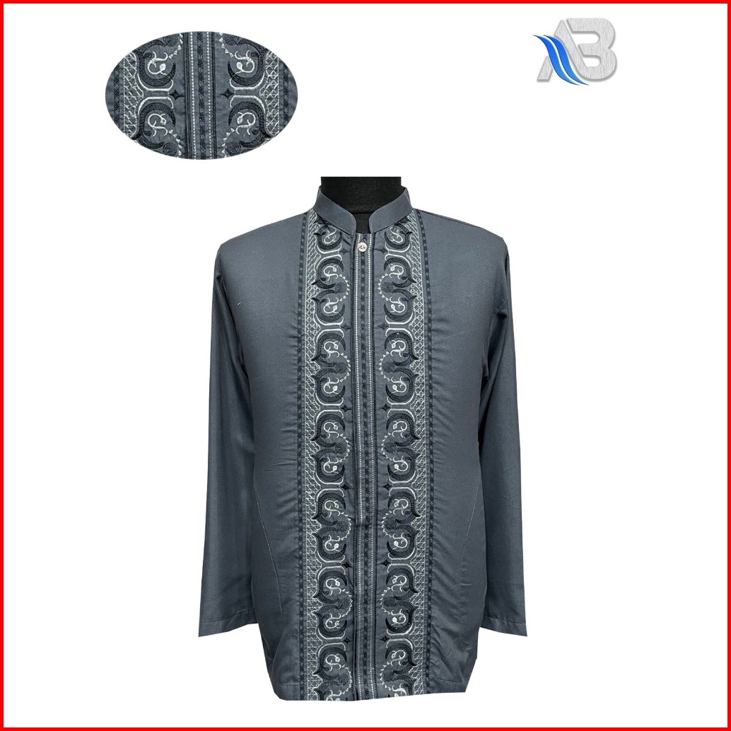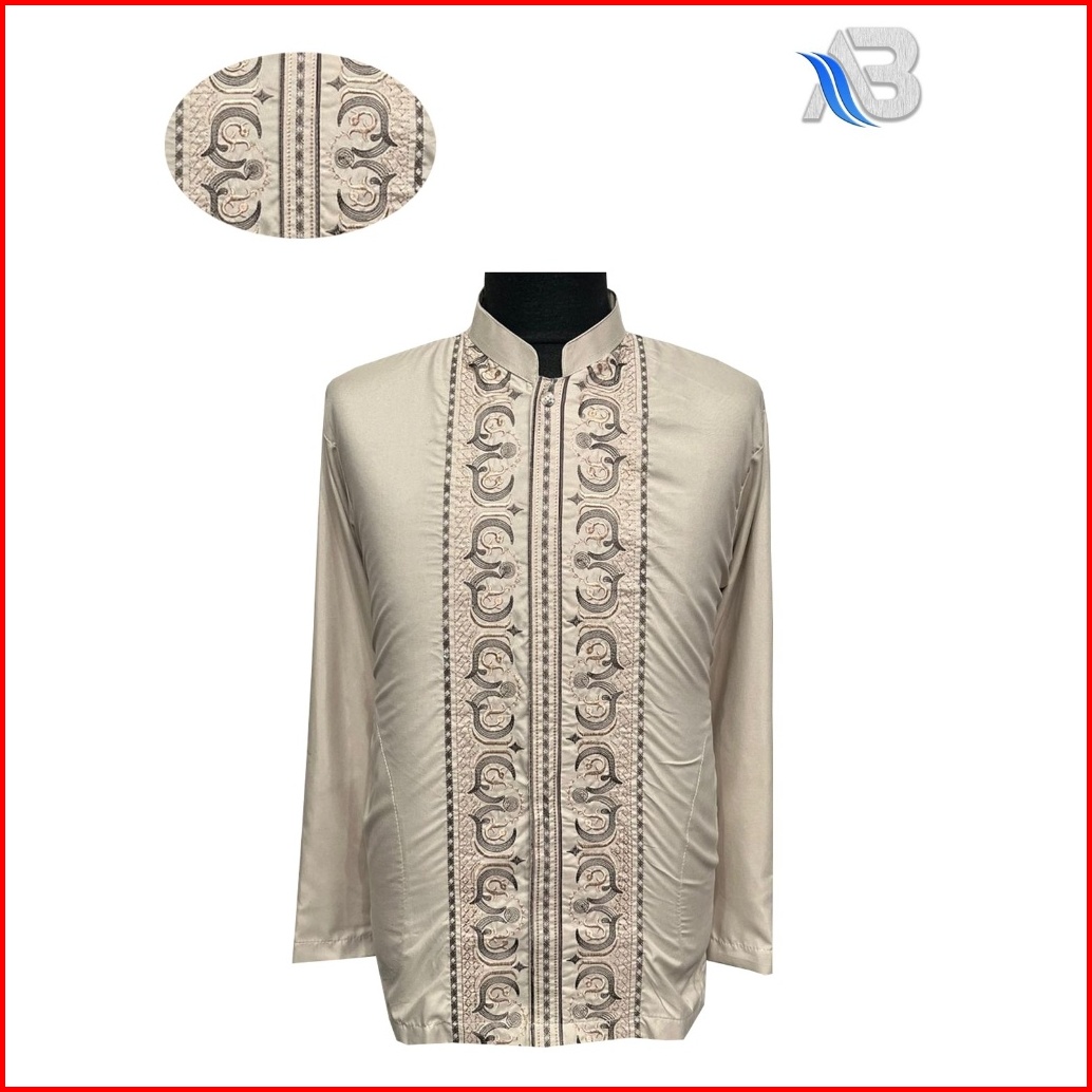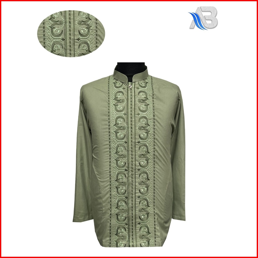 Baju Koko Pria Dewasa Terbaru Bordir Lengan Panjang Katun