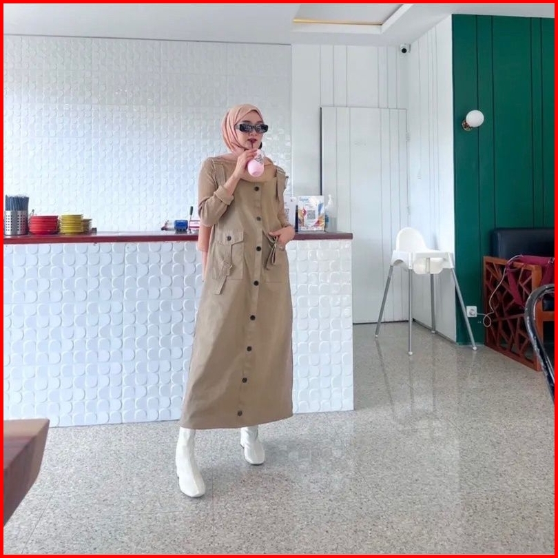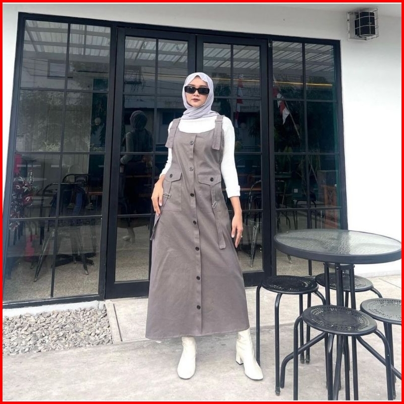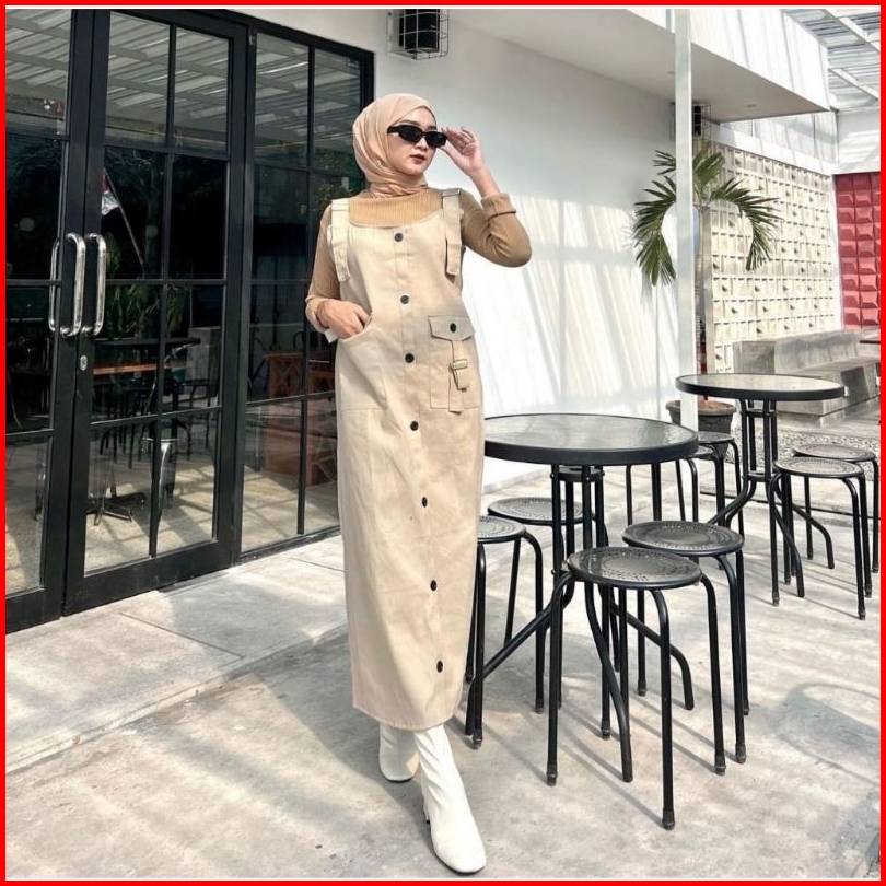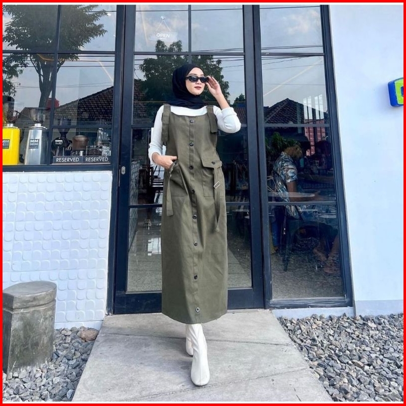 Overall Jumpsuit Overall Inara Cargo Katun Twill Stretch Dress Jumpsuit Rok Kodok Wanita