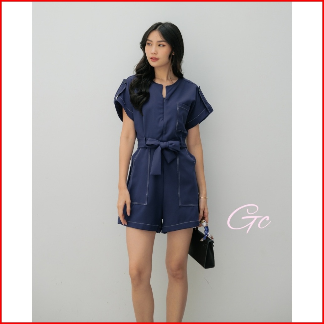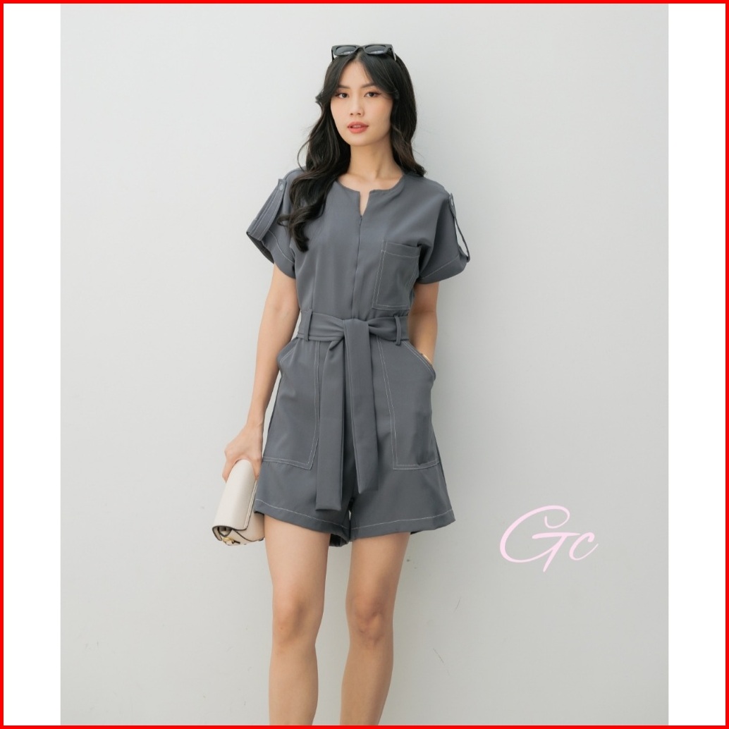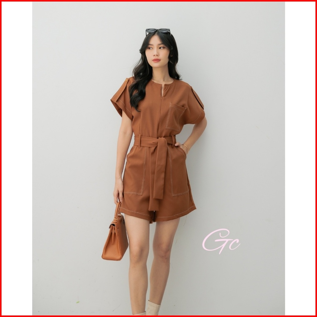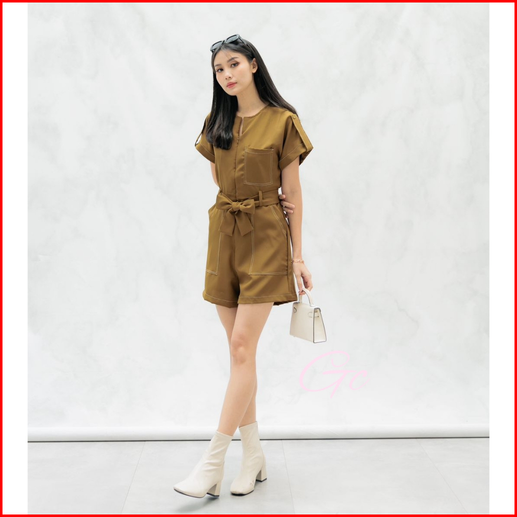 Korean Jumpsuit Cargo Belt Jumpsuit Wanita Model Kantong Resleting