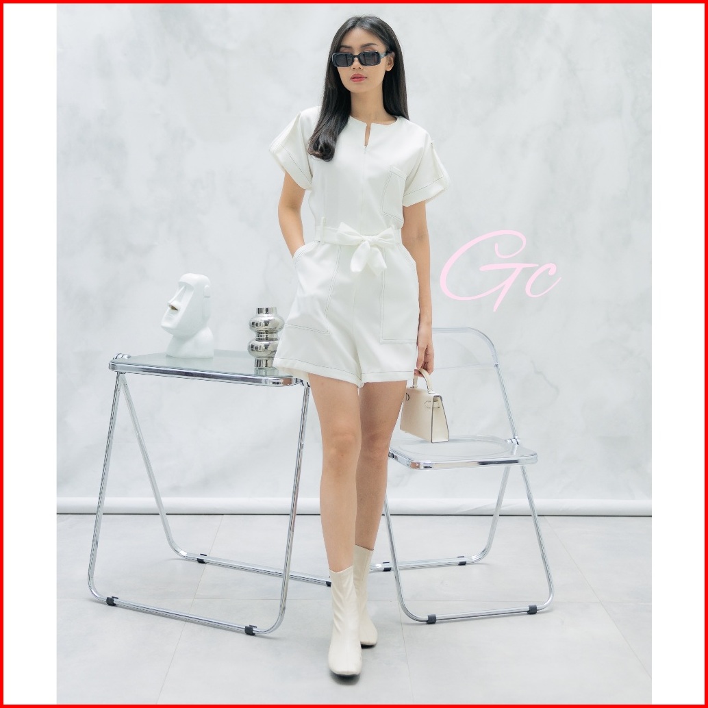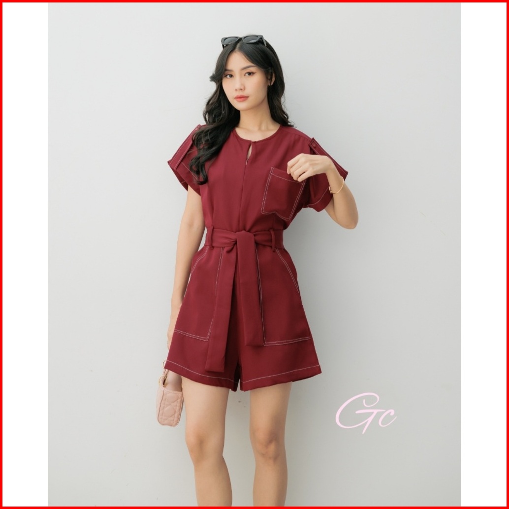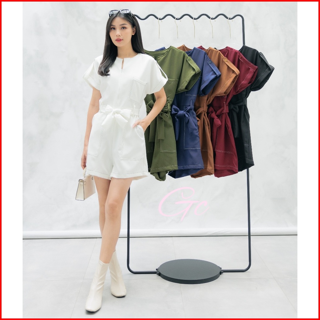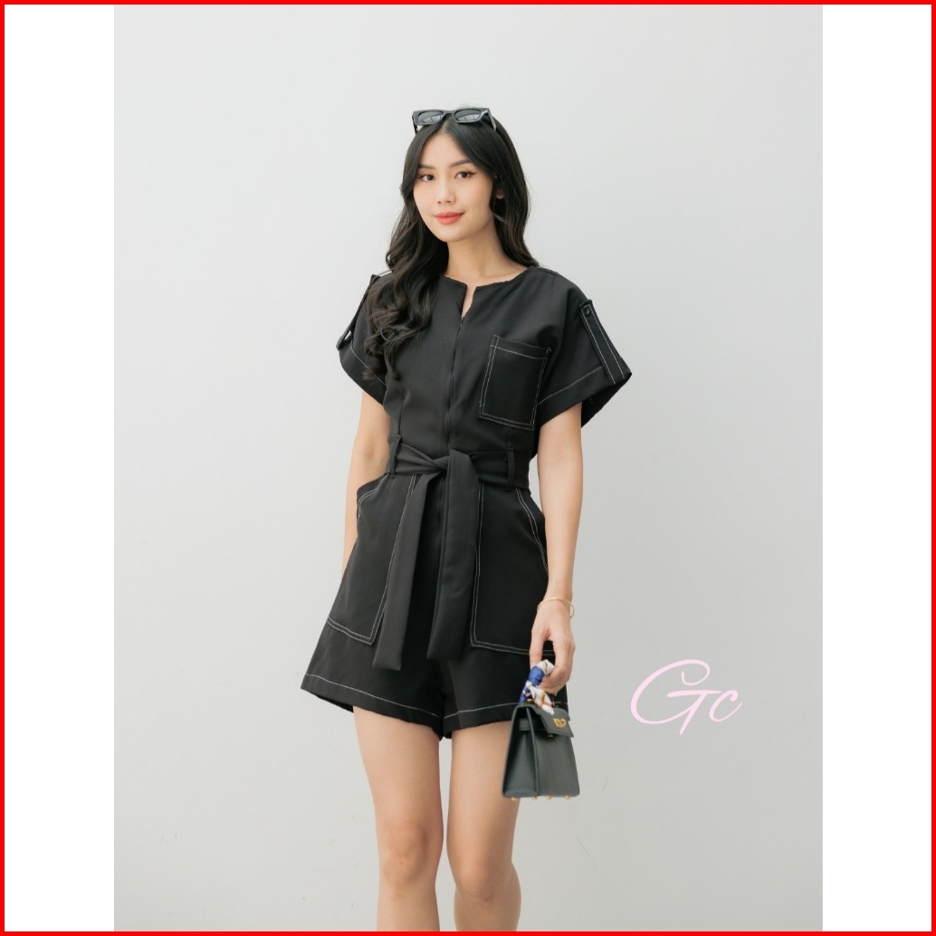 Korean Jumpsuit Cargo Belt Jumpsuit Wanita Model Kantong Resleting