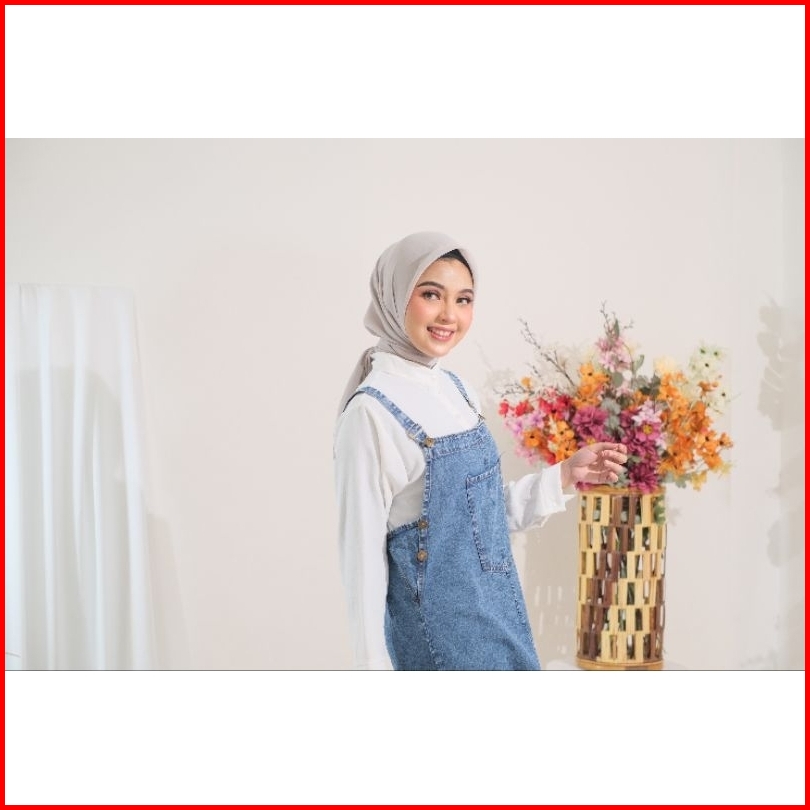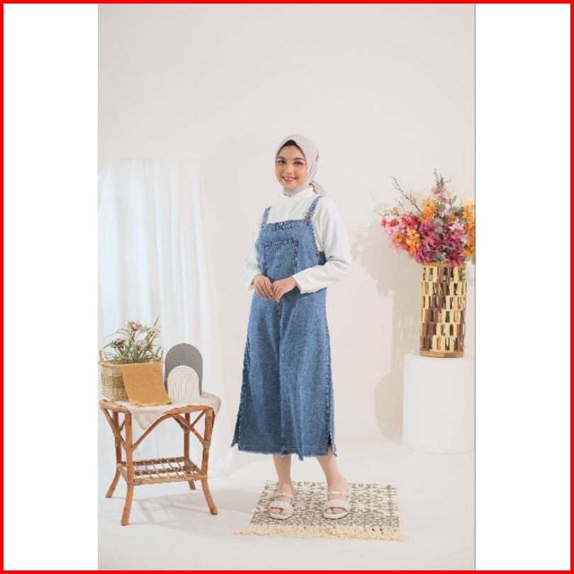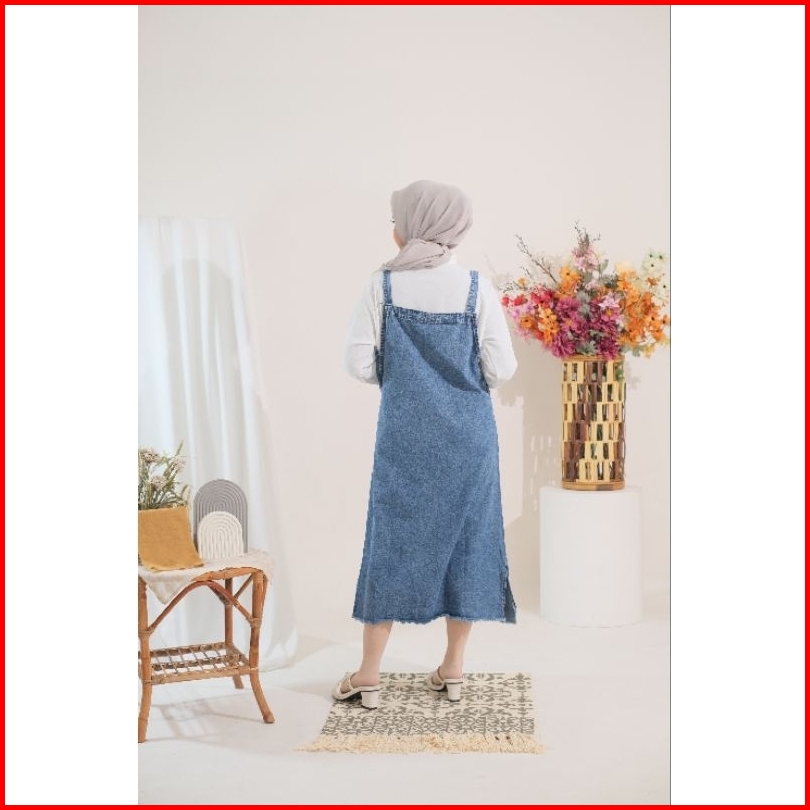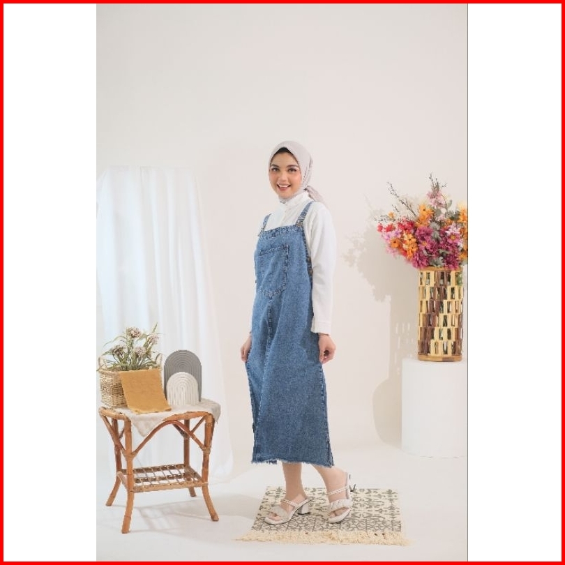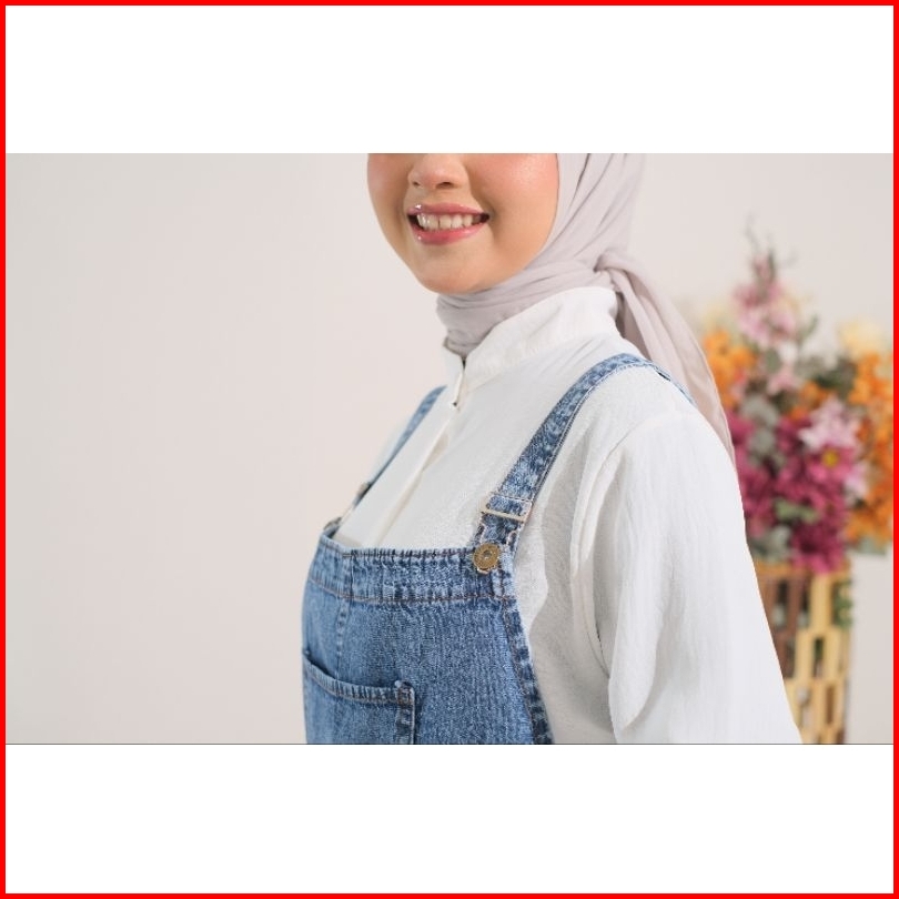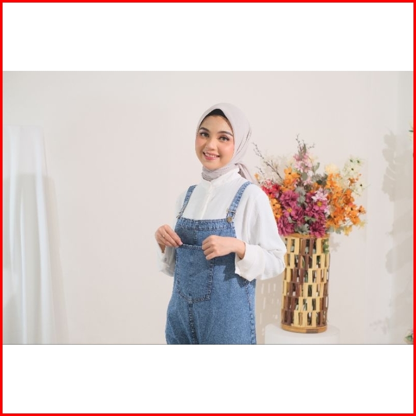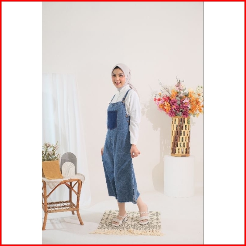 Overall Jumpsuit Jeans Denim Wanita Rok Kodok Big Pocket Korean Style