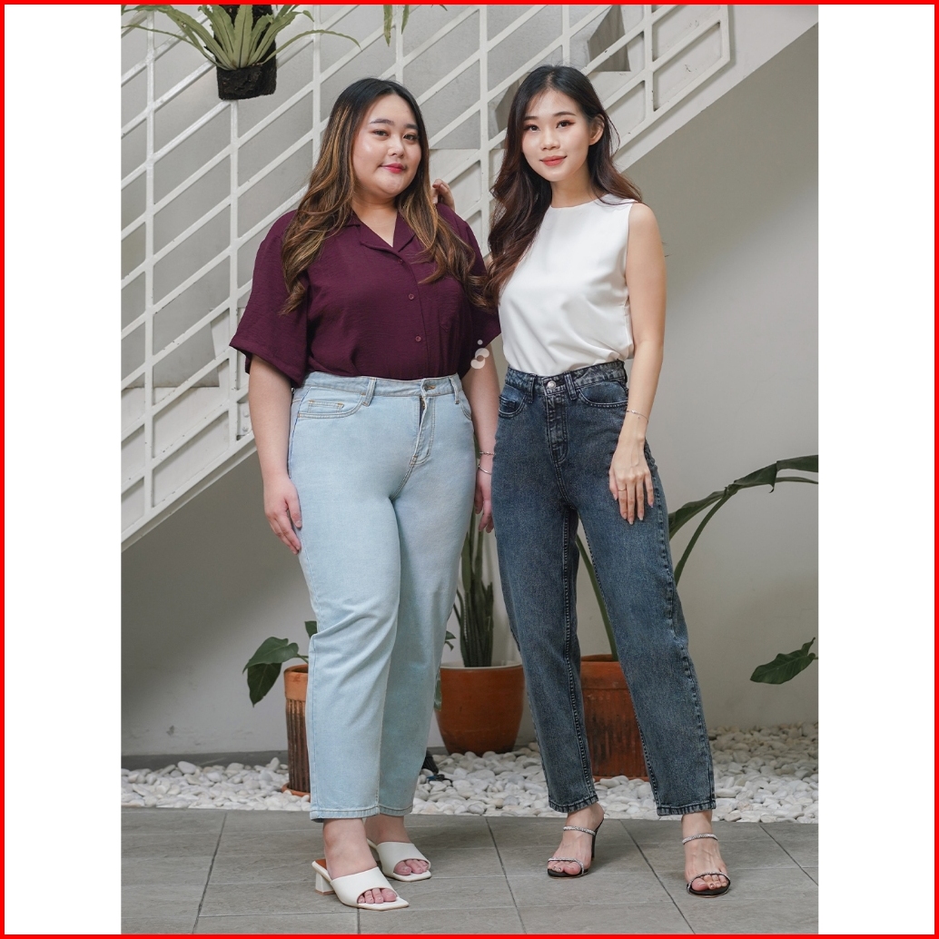 Shenelin Highwaist Jeans Wanita Mom Jeans