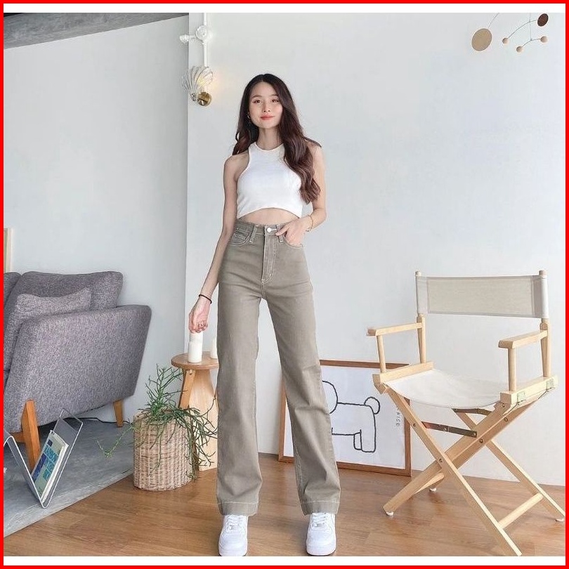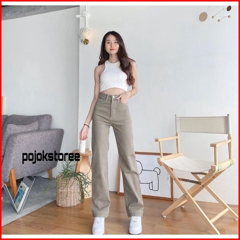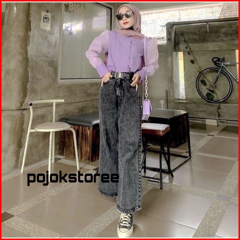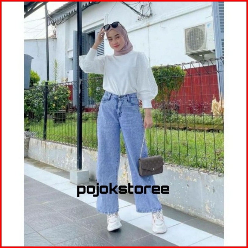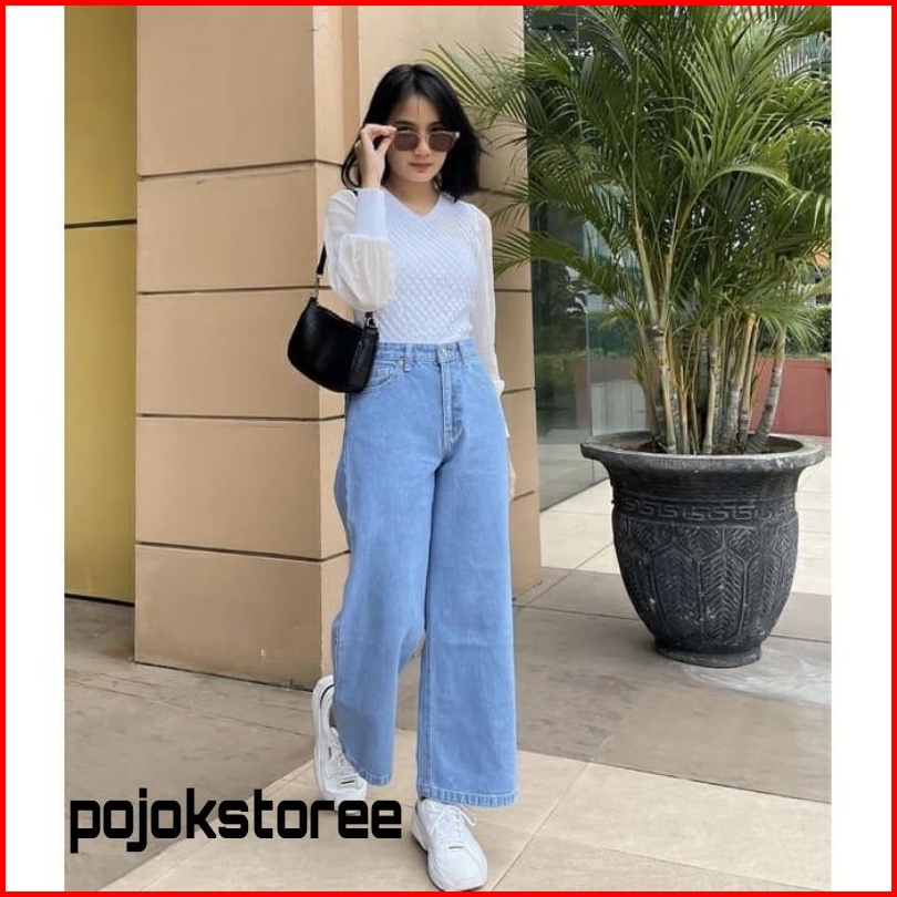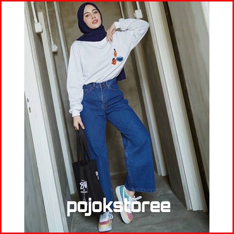 Celana Wanita Highwaist Kulot Jeans Wanita Loose Celana Bawahan Highwaist Wanita Celana Boyfriend Kekinian