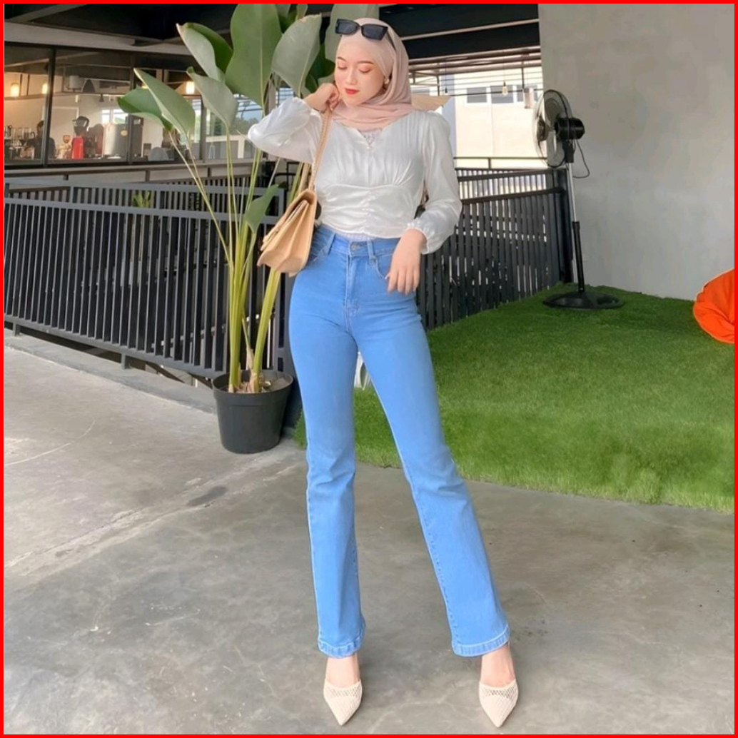 Cutbray Jeans Celana Panjang Highwaist Strecht Melar Korean Style Premium - Bawahan Wanita Highwaist Kekinian