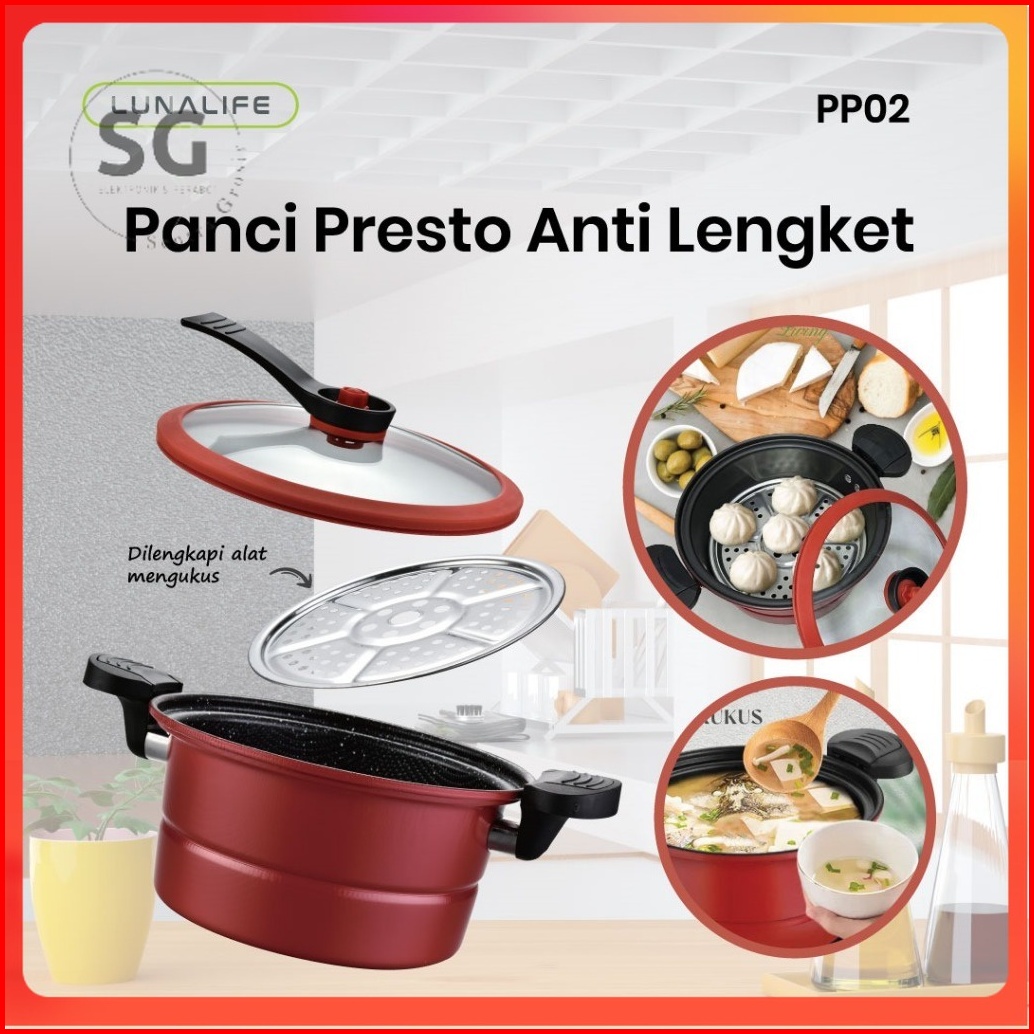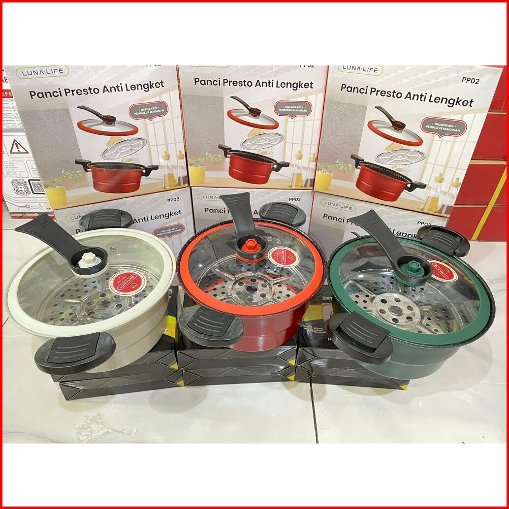 Panci Presto Anti Lengket 3.5 Liter Plus Kukusan Pp02 Luna Life