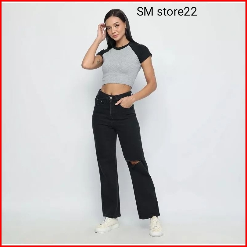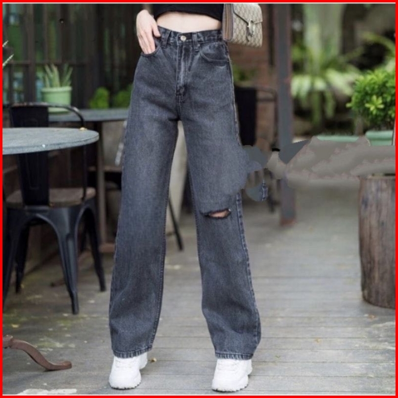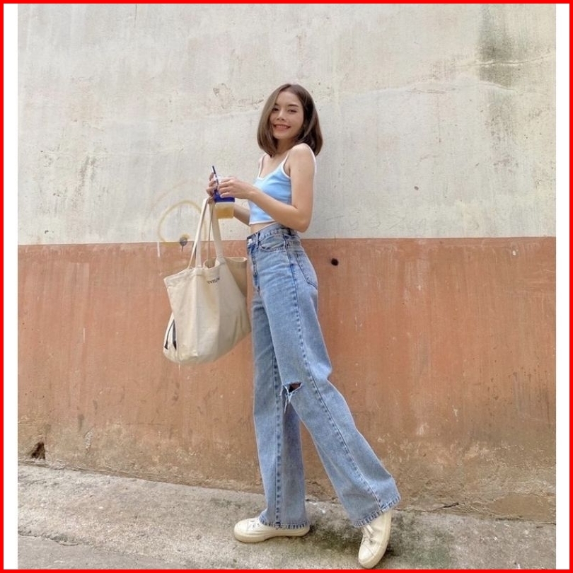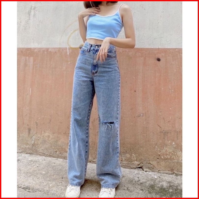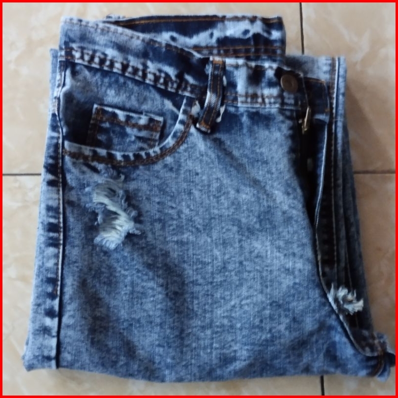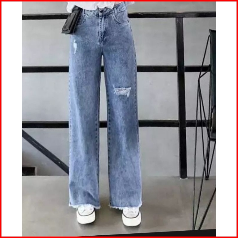 Celana Kulot Jeans Rawis Snow Blue High Waist Jeans Sobek