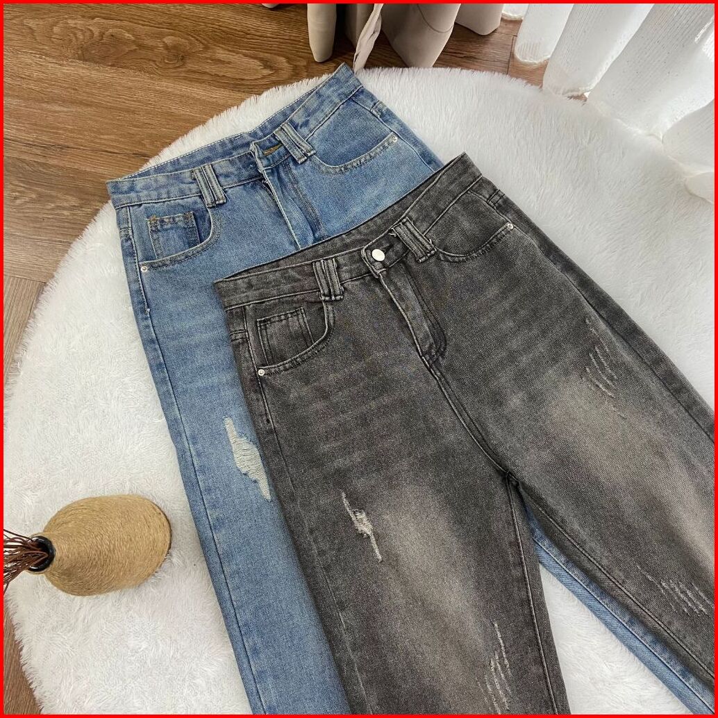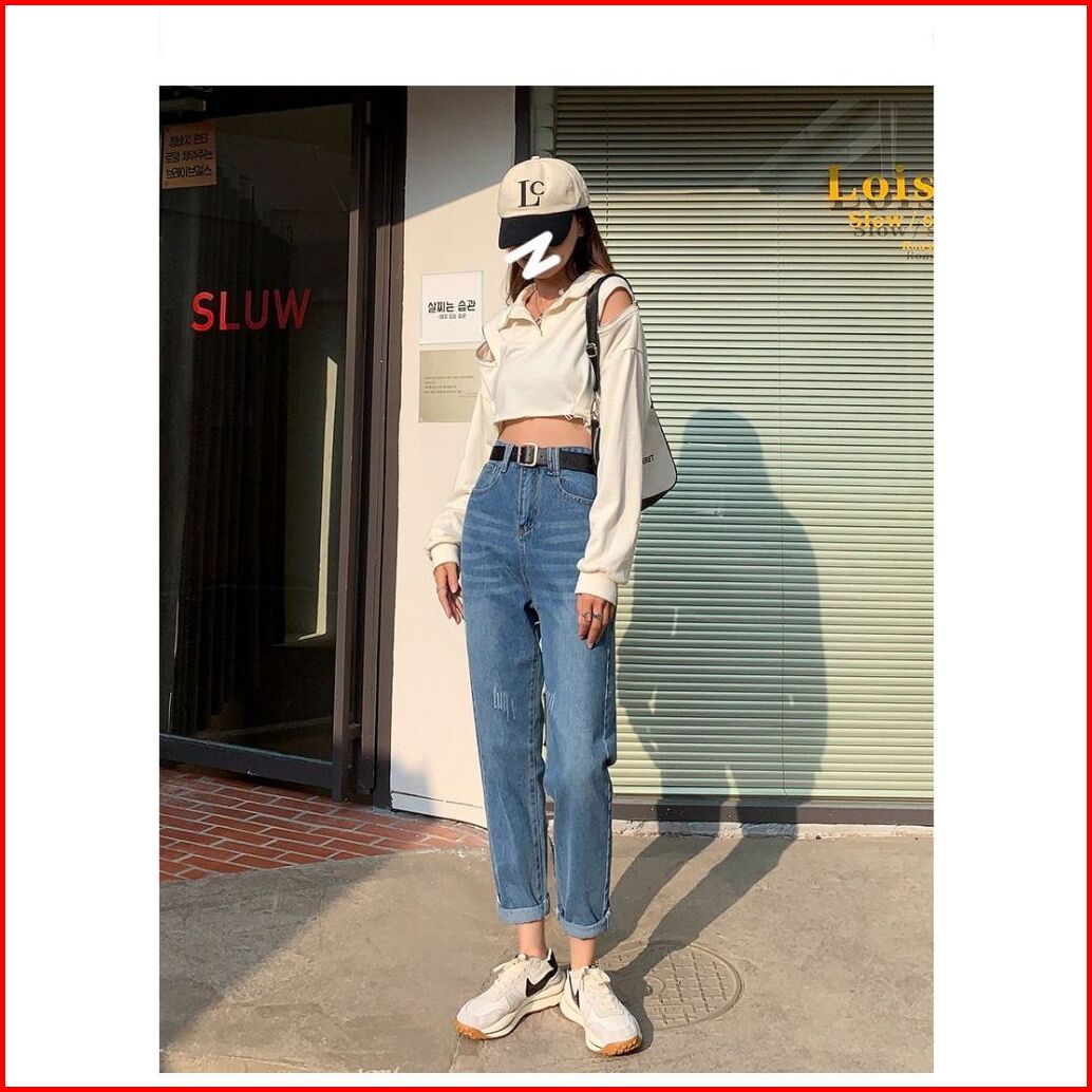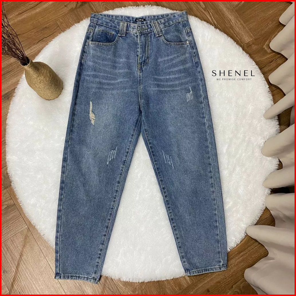 Shenel Jeans 1808 High Waist Wanita Jeans Retro Boyfriend Highwaist Ripped Jeans Shelin Jeans Sobek