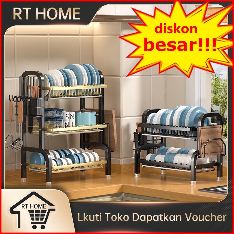 Rt Home Rak Dapur Rak Piring Stainless Rak Penyimpanan Dapur Muat Mangkuk Dan Piring Rak Bumbu