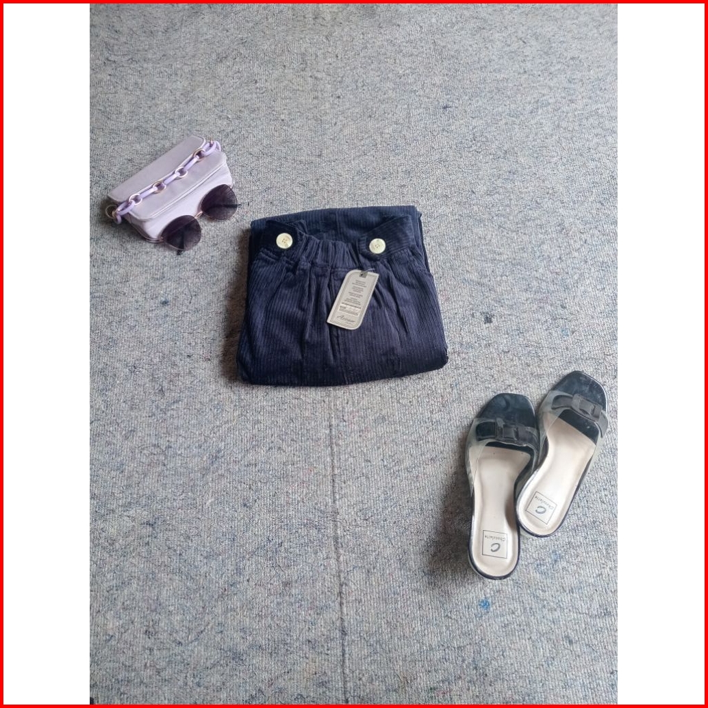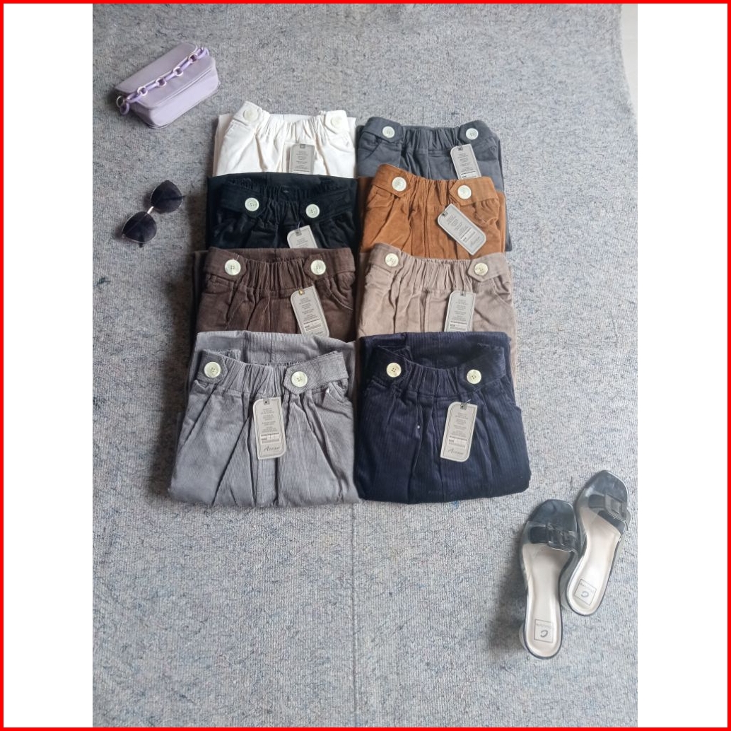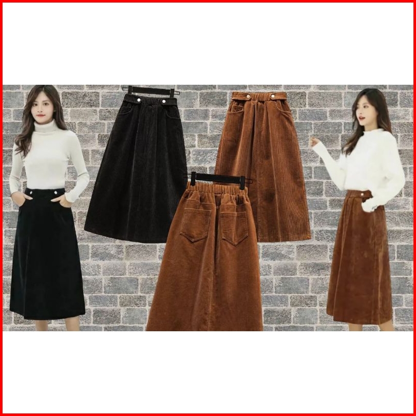 Rok Corduroy Vintage Korean Style Pinggang Karet