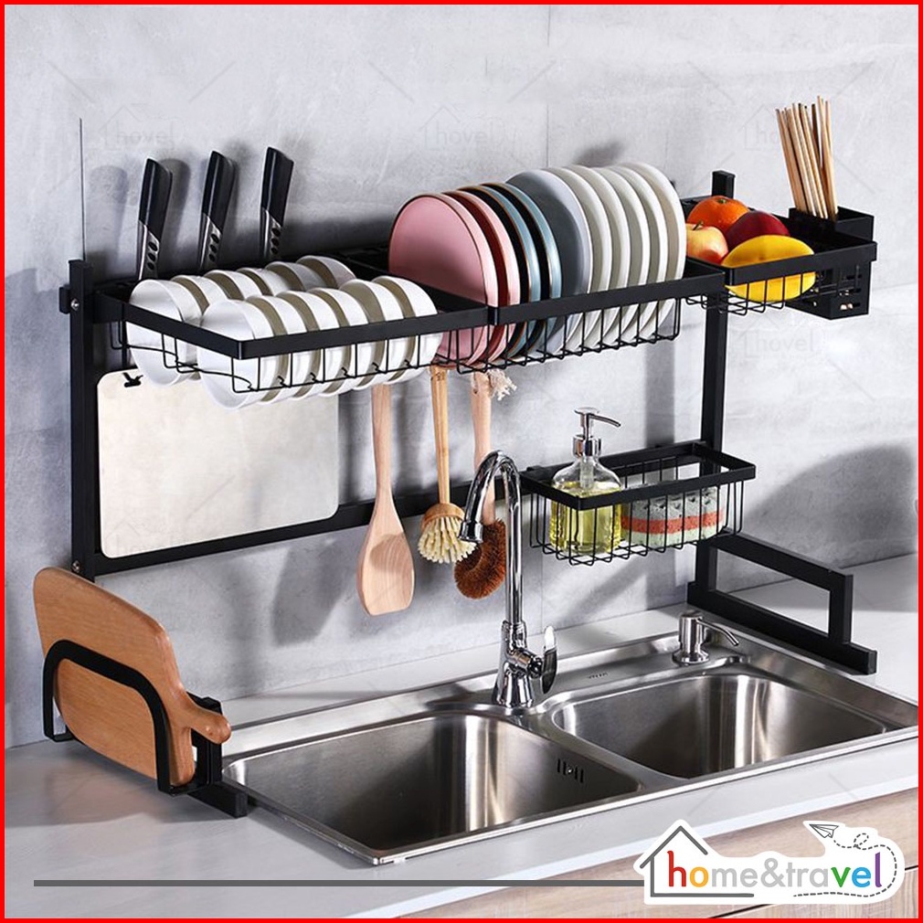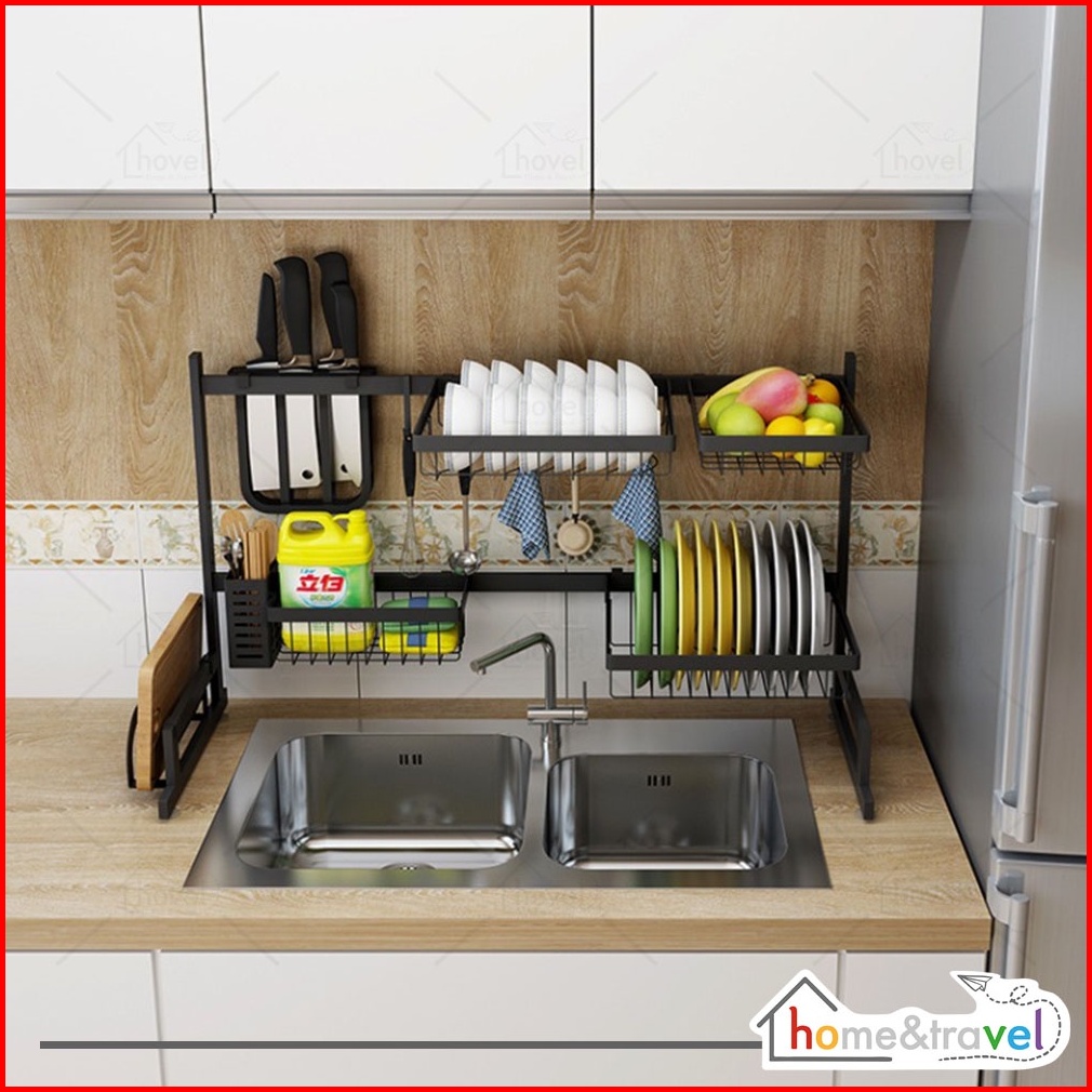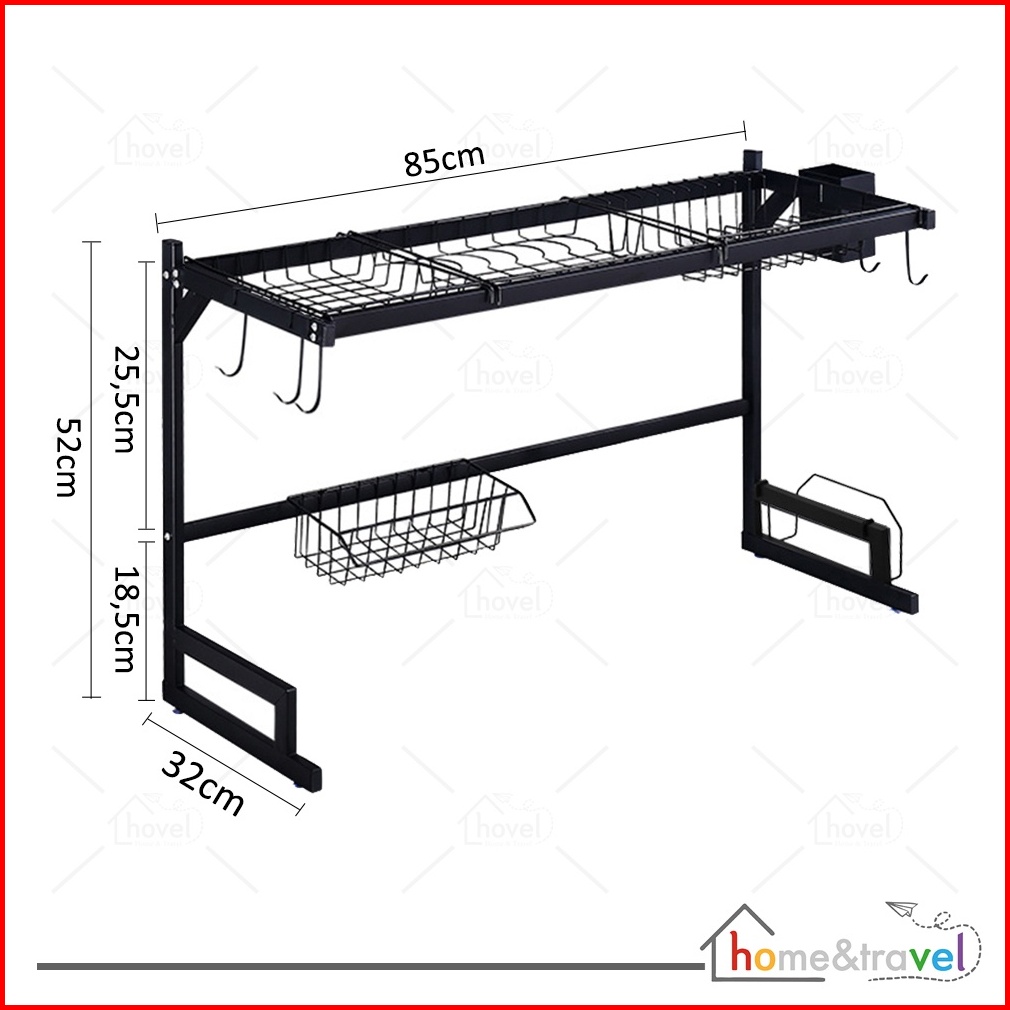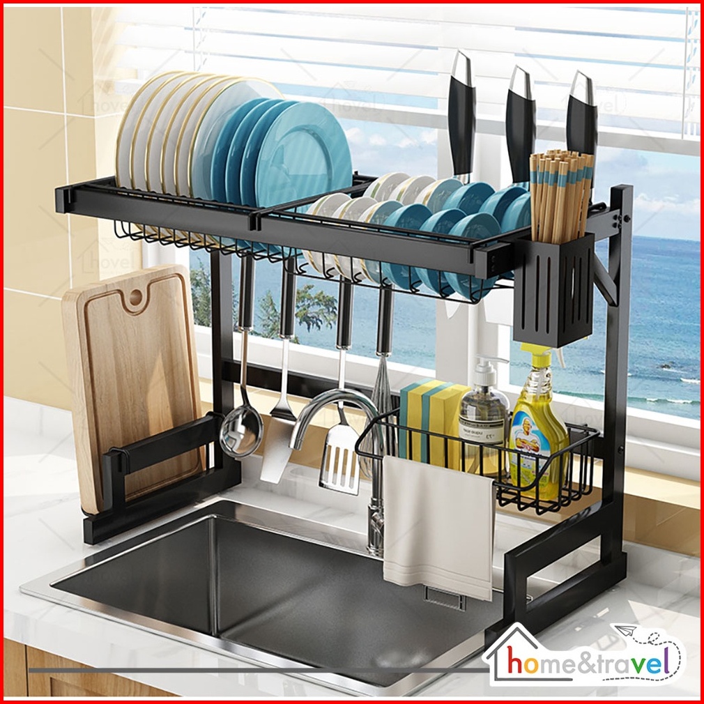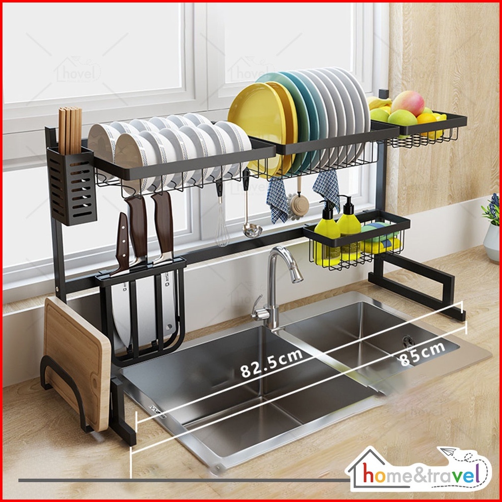 Hovelshop Rak Piring Dapur Wastafel Stainless Hitam Anti Karat Kuat 2 Susun 85 Cm
