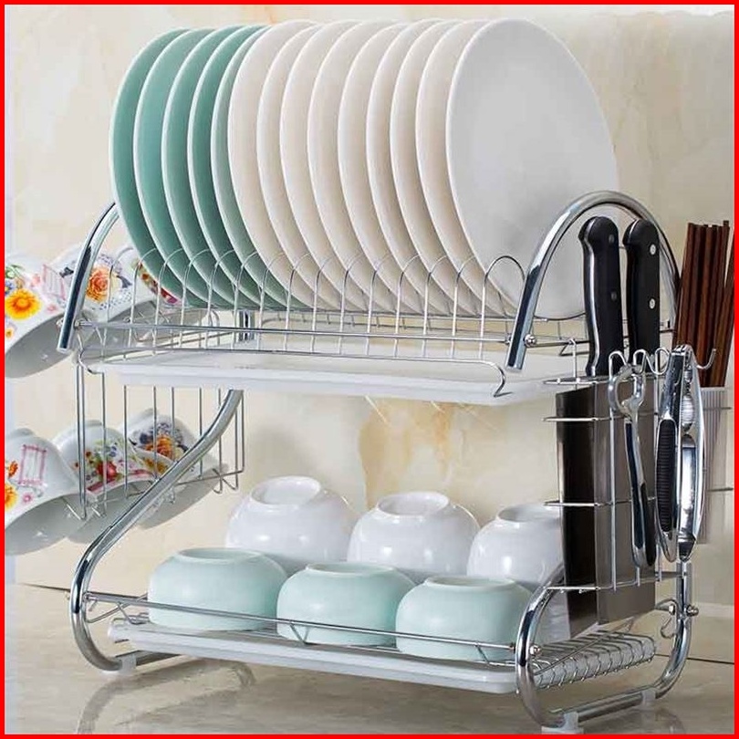 Rak Piring Stainless 2 Susun Anti Karat Talenan Lentur Peralatan Dapur Besar Murah Anti Karat