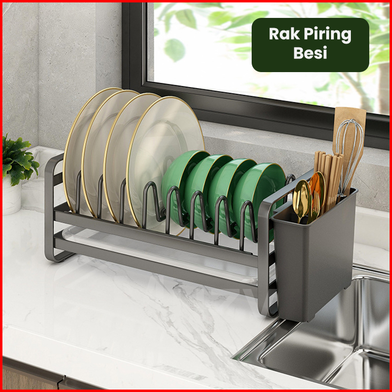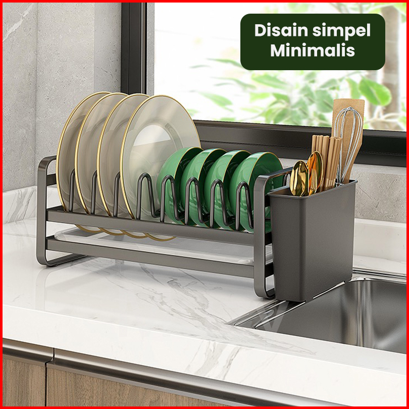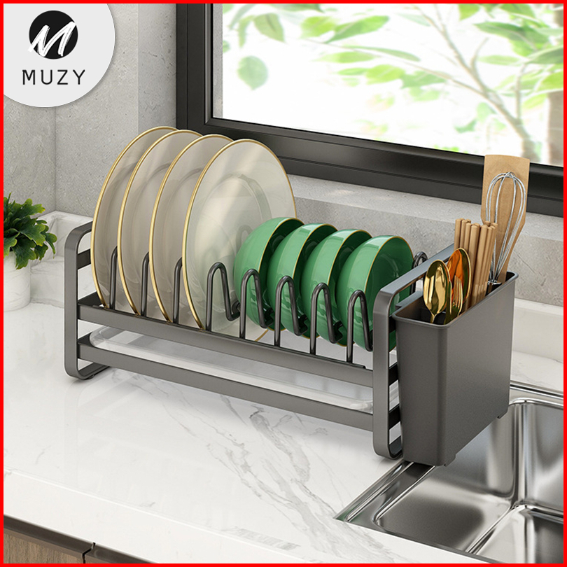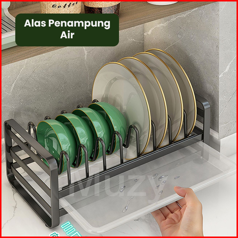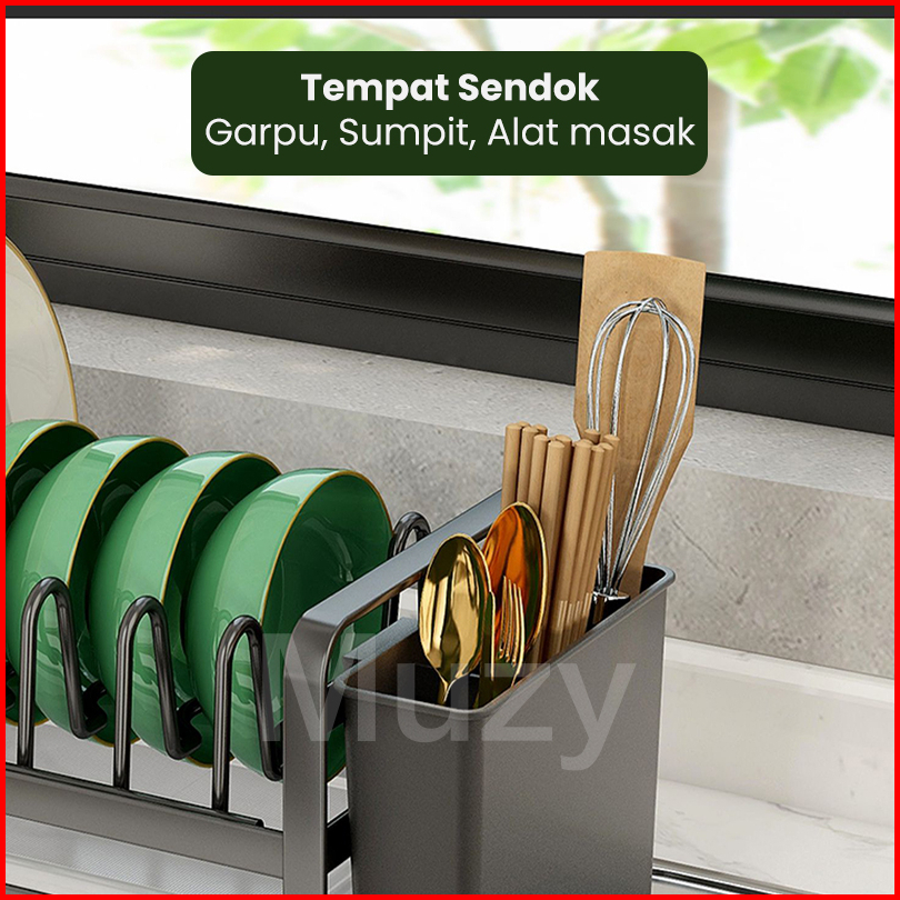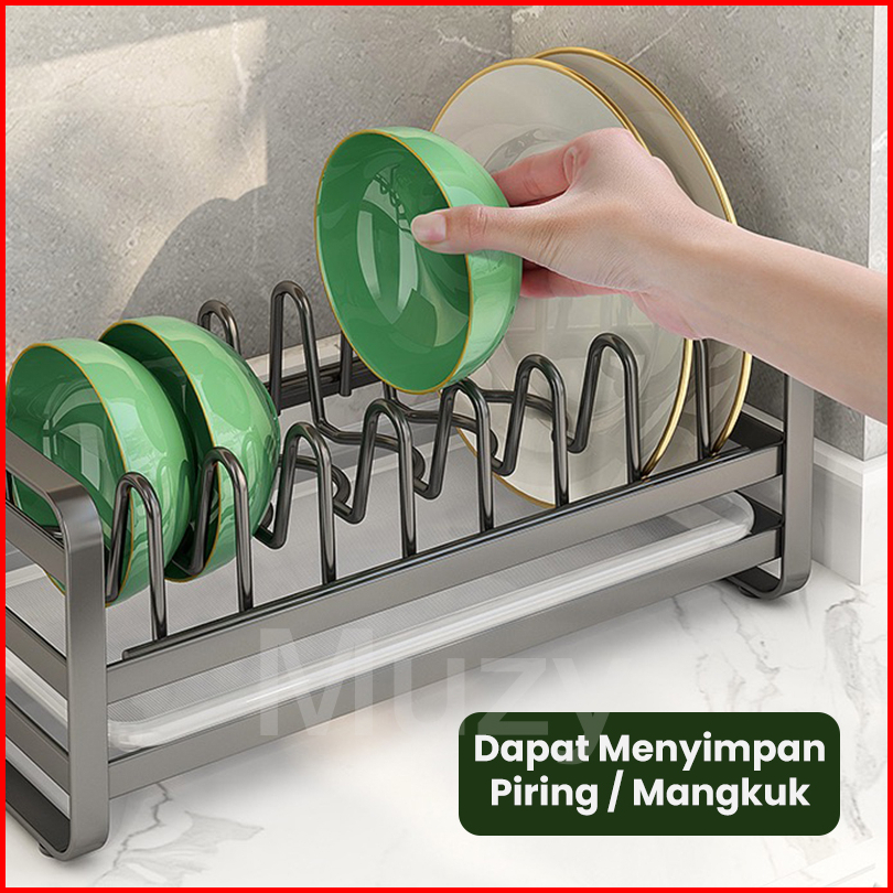 Muzy Rak Piring Rak Cuci Piring Penyimpanan Dapur Stainless Steel Dish Rack Untuk Mangkuk Dan Piring Hrm157