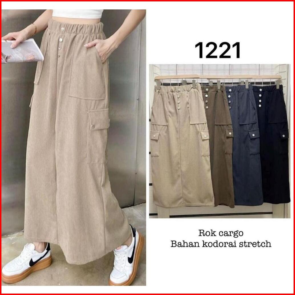 1221 1331 1551 Rok Cargo Rok Reguler Corduroy Import Polos Wanita Casual Outfit Wanita Panjang Polos