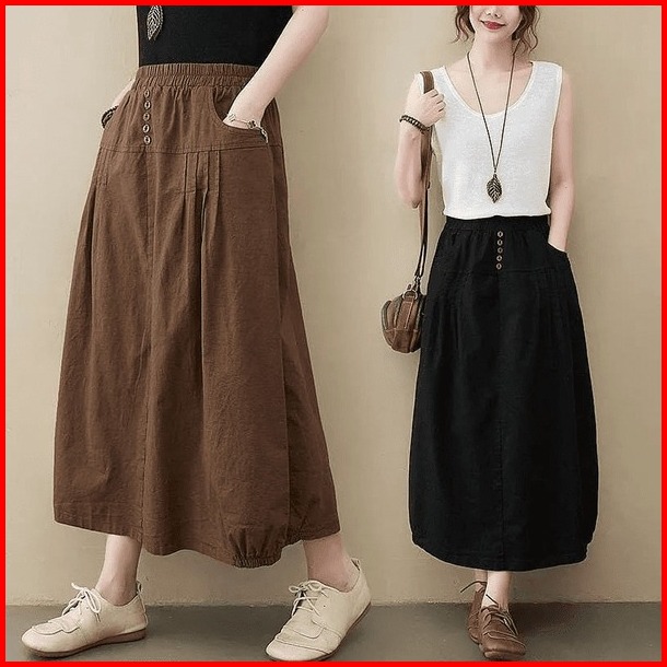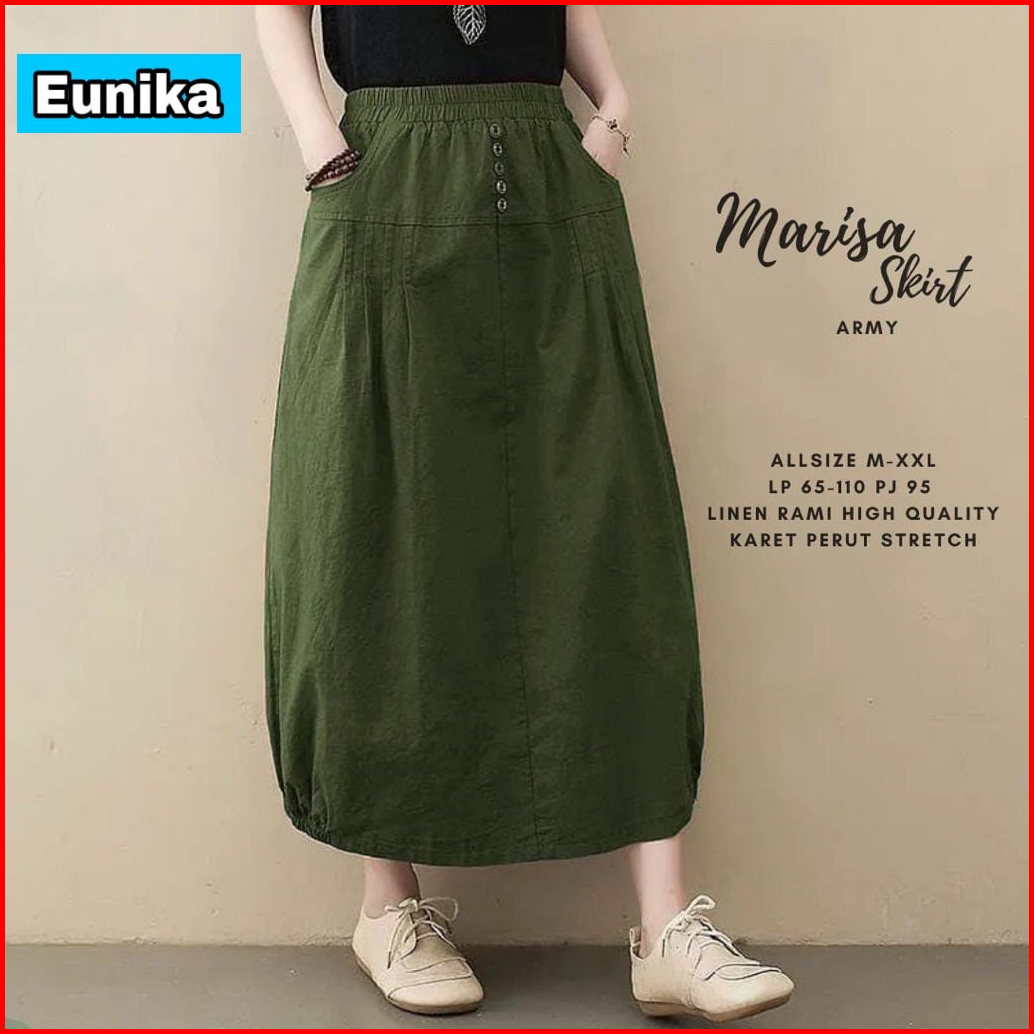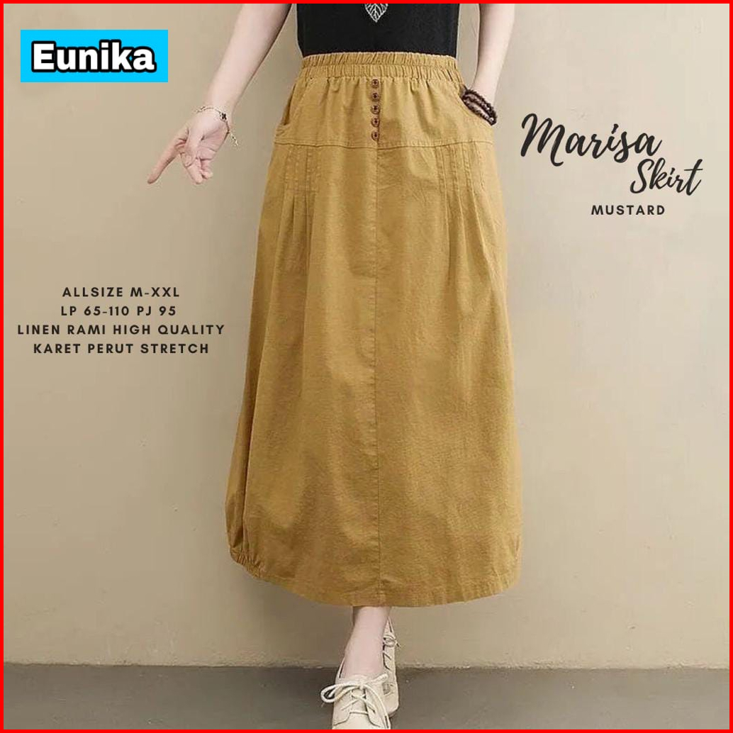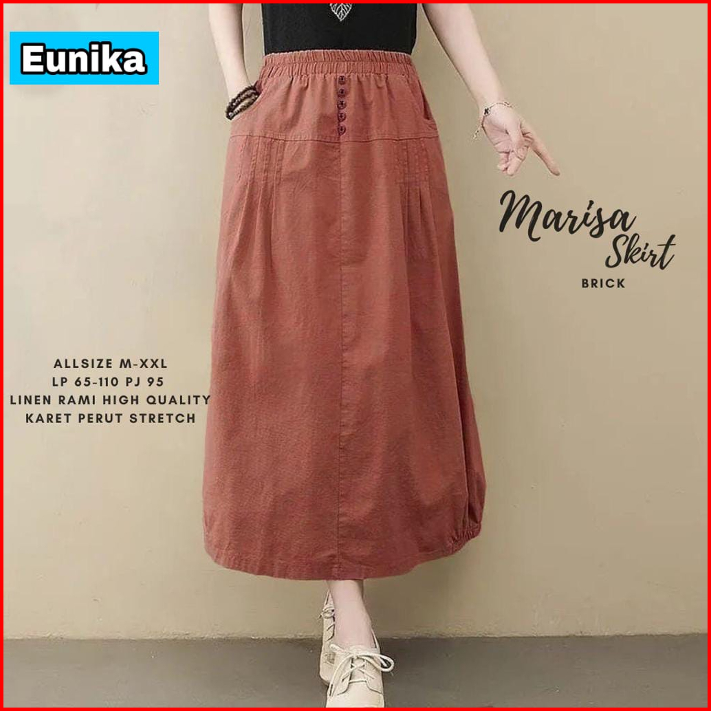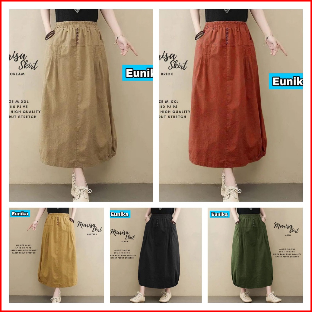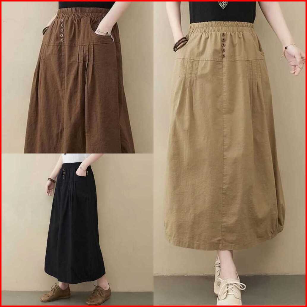 Aish Skirt Rok Wanita Korean Style Rok Linen Karet Pinggang - Button Skirt - Rok Katun Cigaret